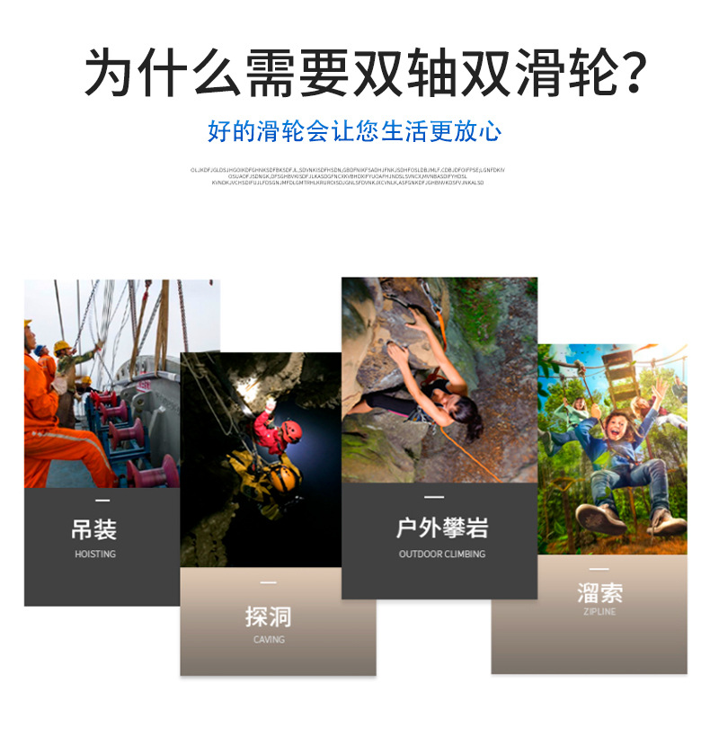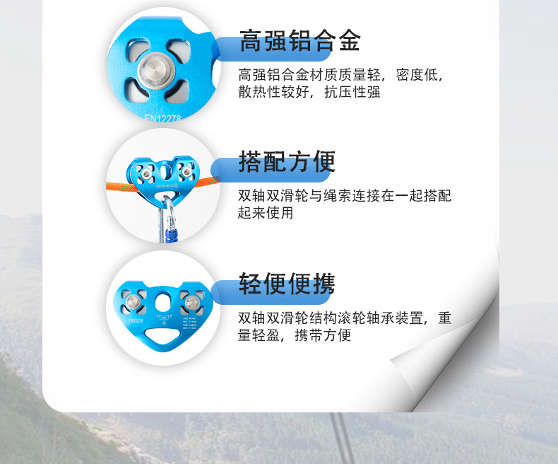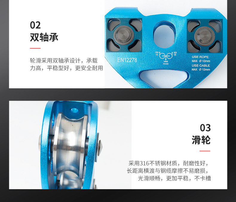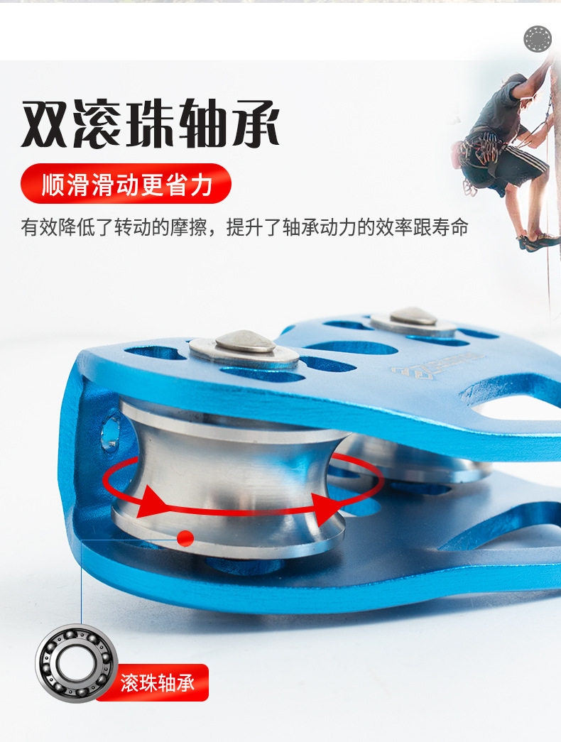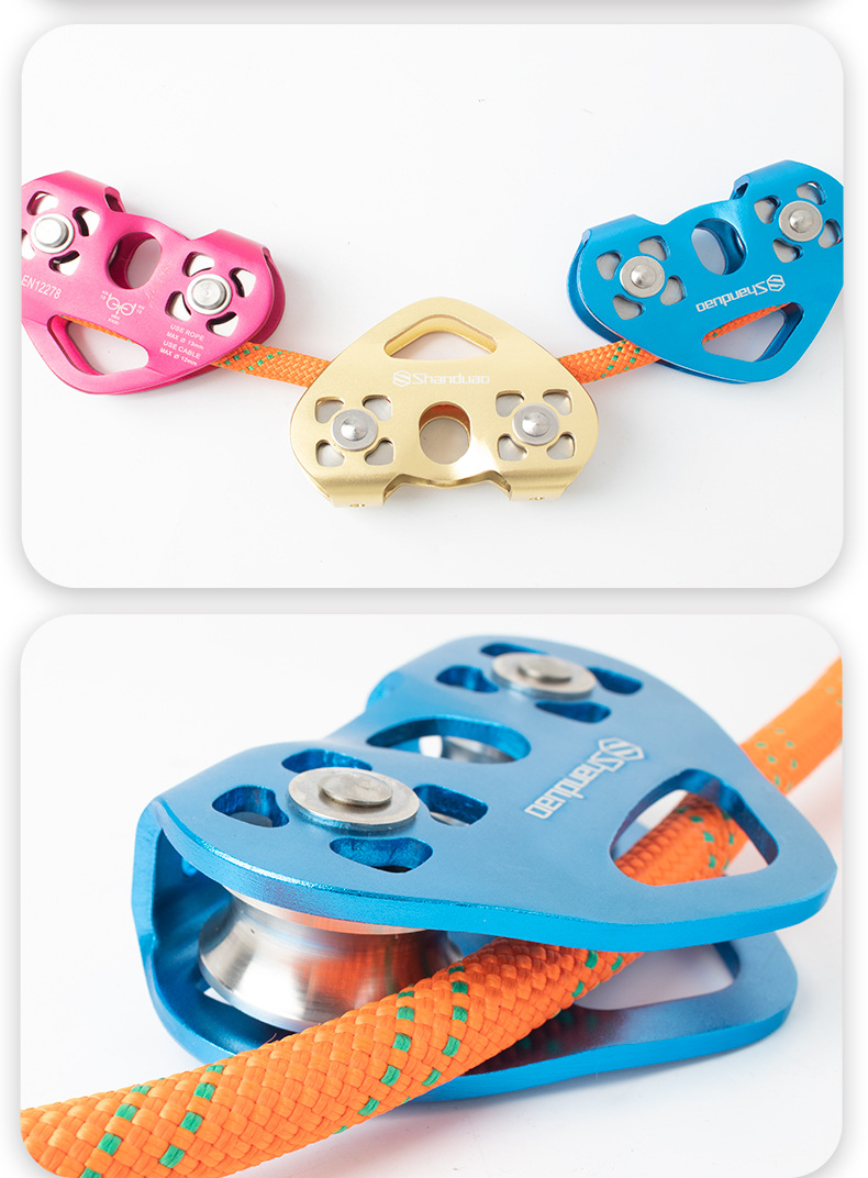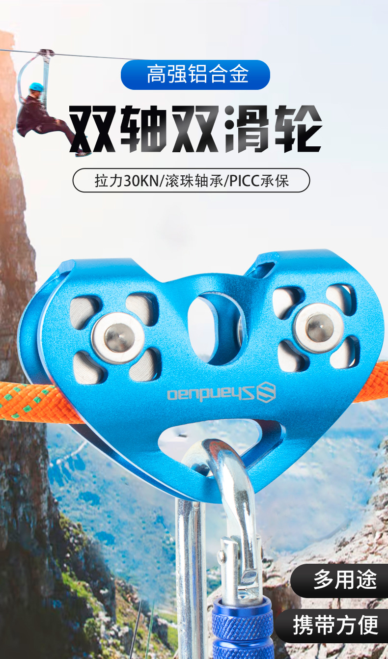 야외 더블 샤프트 더블 풀리 록 클라이밍 횡단 풀리 스틸 케이블 시브 풀리 플랫 풀리 그룹 모험 구조스토어 가기