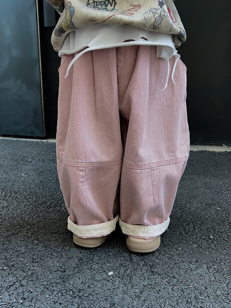 두꺼운 트렌디 아동복 유아 바지 남아 여아 핑크 와이드 팬츠 아동 남아 가을옷 트렌디 핫템스토어 가기