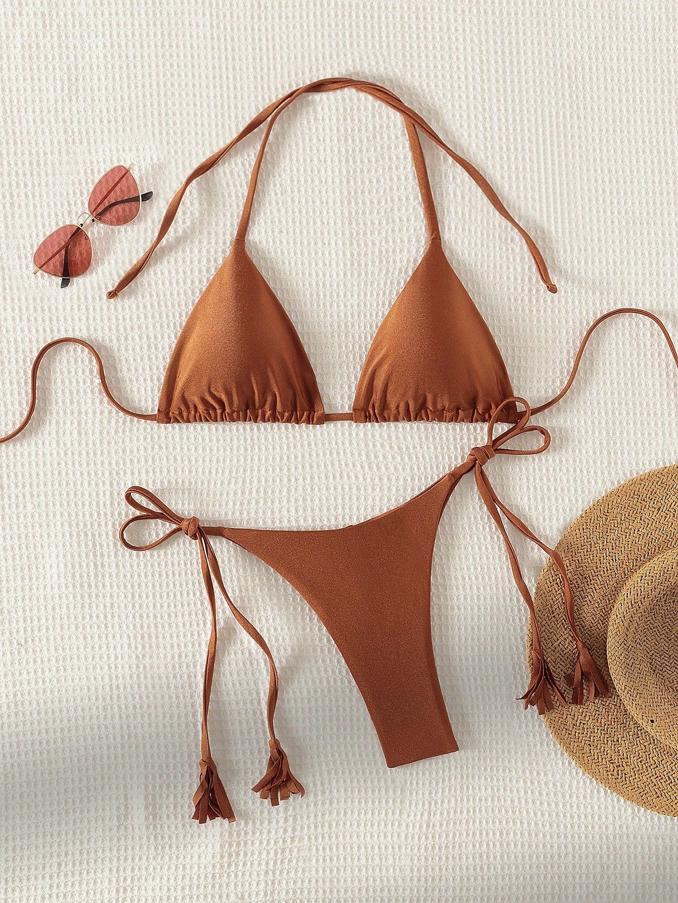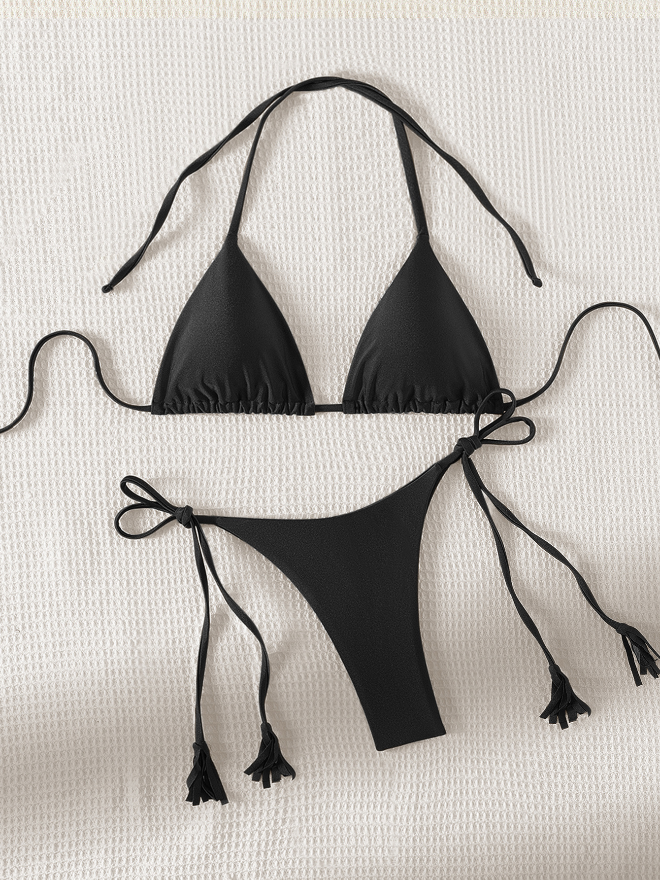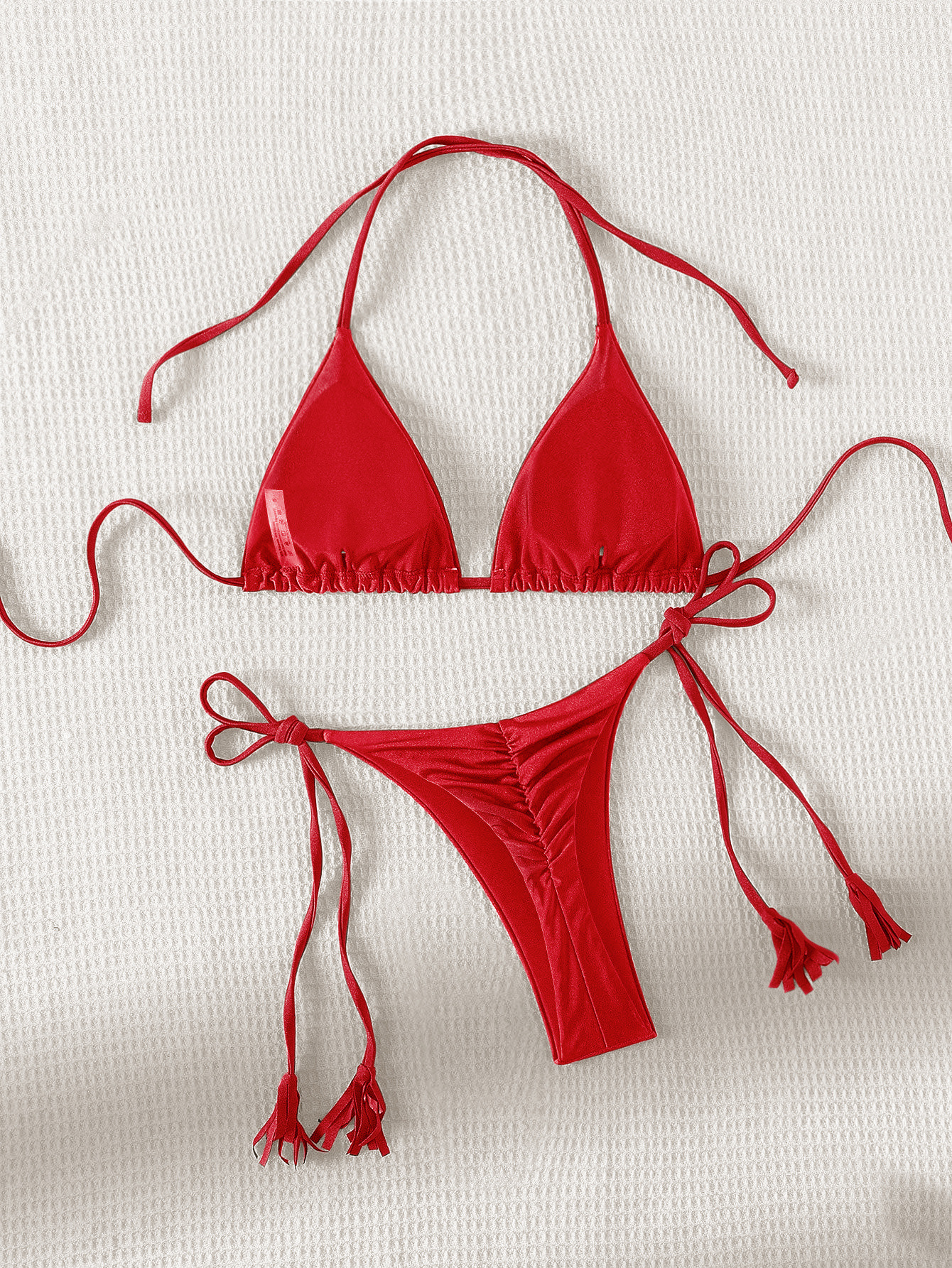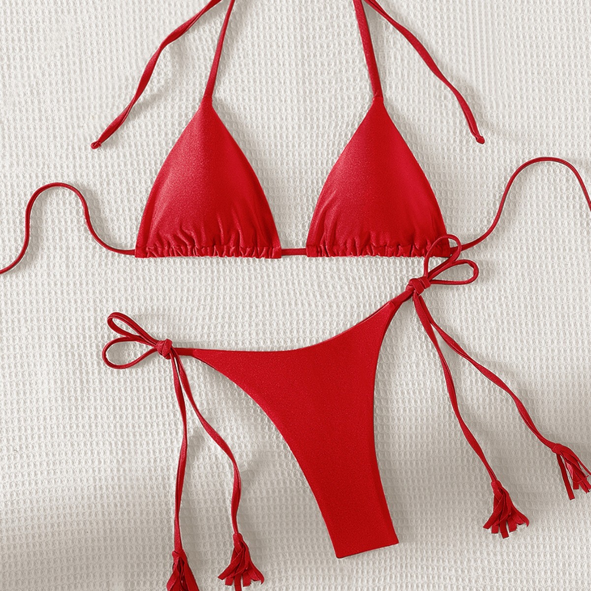 2024 새로운 솔리드 컬러 레이스 업 Tassel Bikini 세트 섹시한 유럽과 미국 수영복 수영복 여성 분할스토어 가기