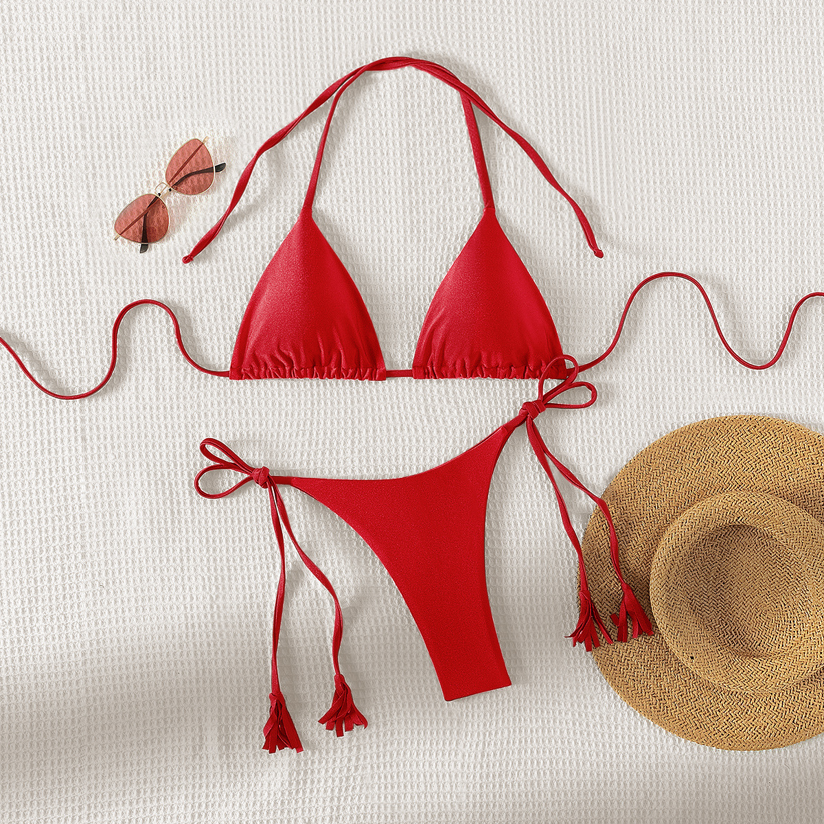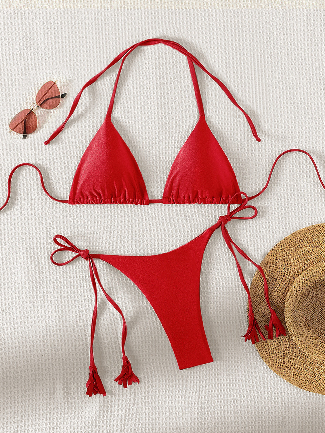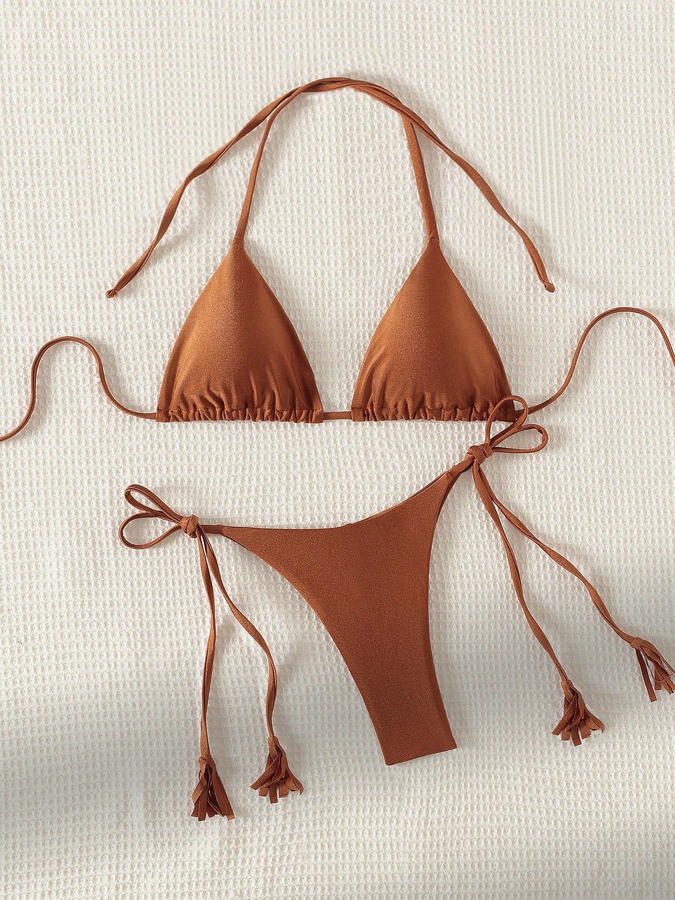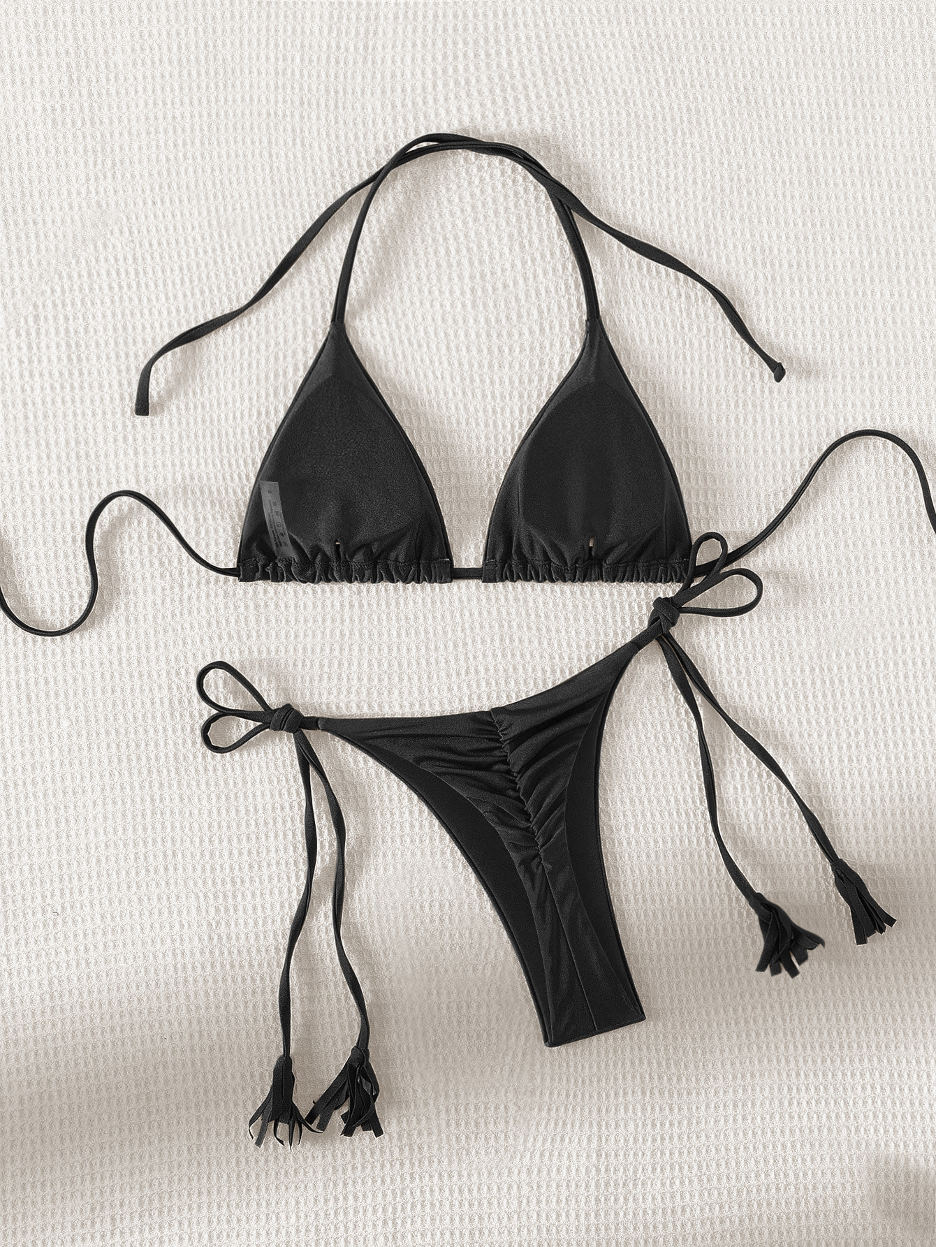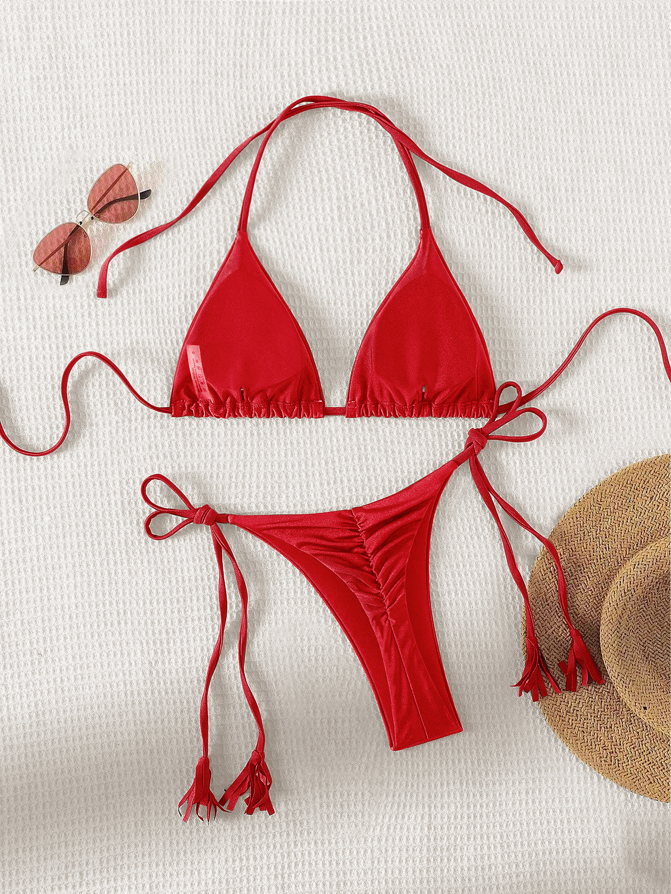 2024 새로운 솔리드 컬러 레이스 업 Tassel Bikini 세트 섹시한 유럽과 미국 수영복 수영복 여성 분할스토어 가기