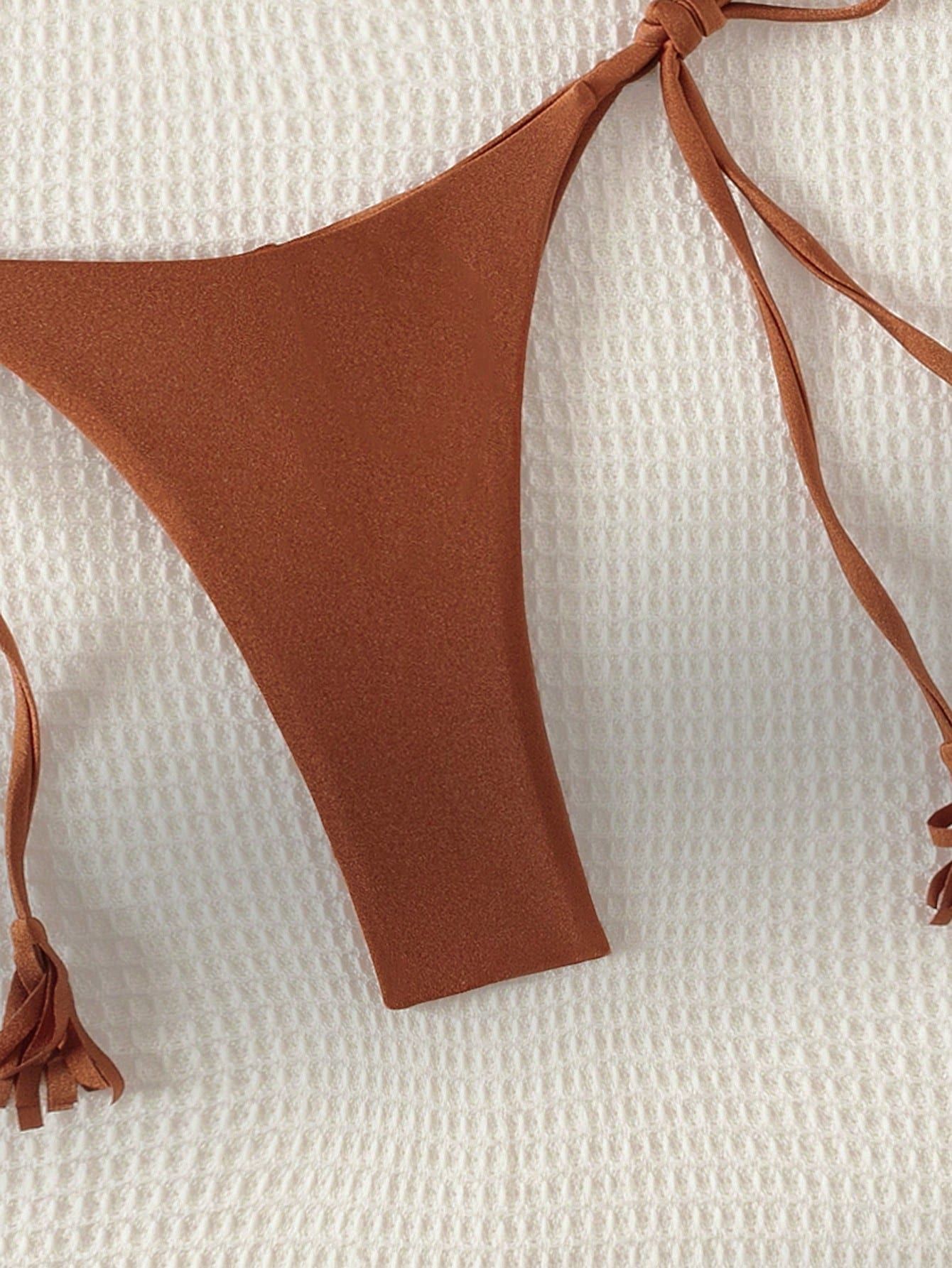 2024 새로운 솔리드 컬러 레이스 업 Tassel Bikini 세트 섹시한 유럽과 미국 수영복 수영복 여성 분할