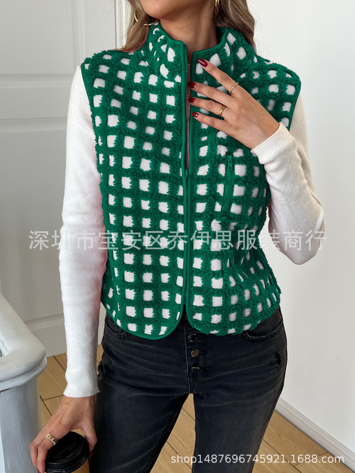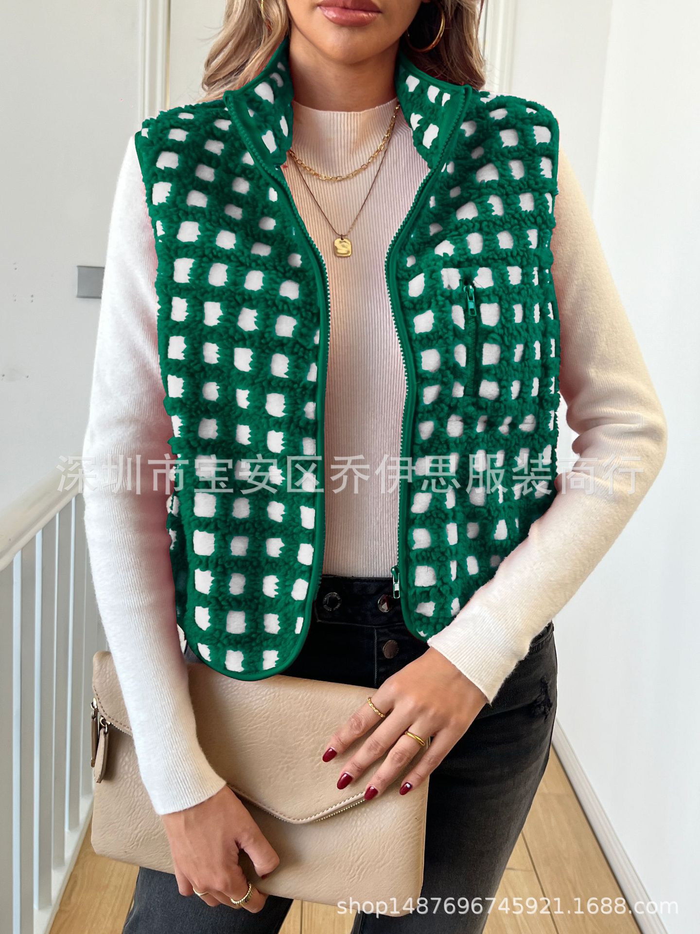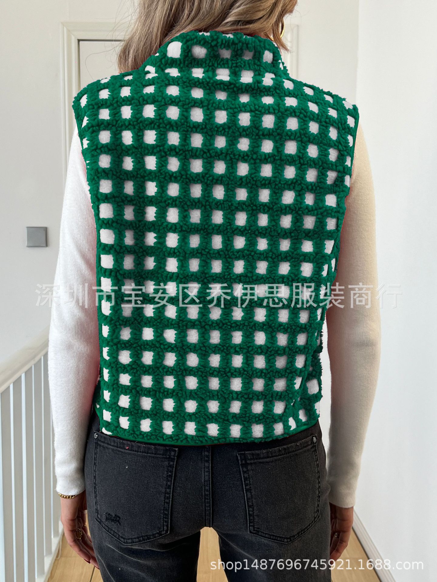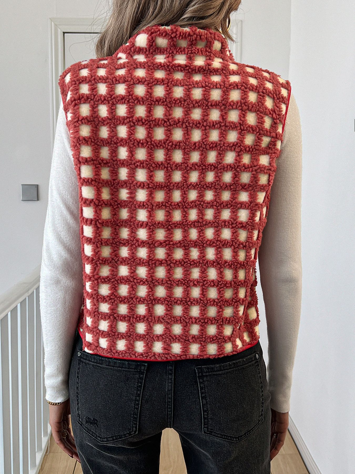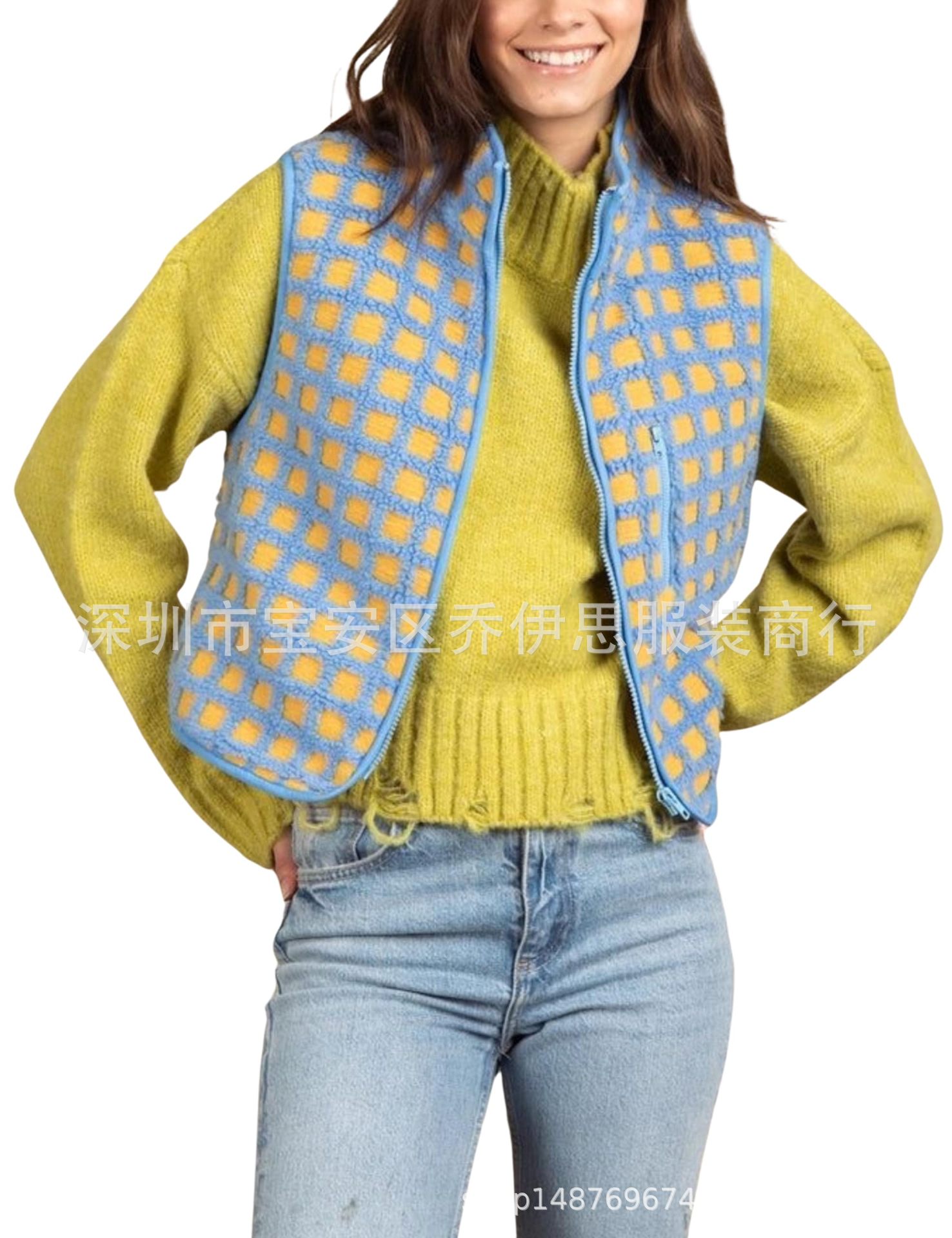 2025 가을 겨울 신상품 체크무늬 플러시 조끼 스탠드 칼라 조끼 민소매 조끼 여성용 재고 있음스토어 가기