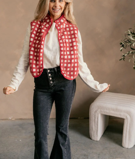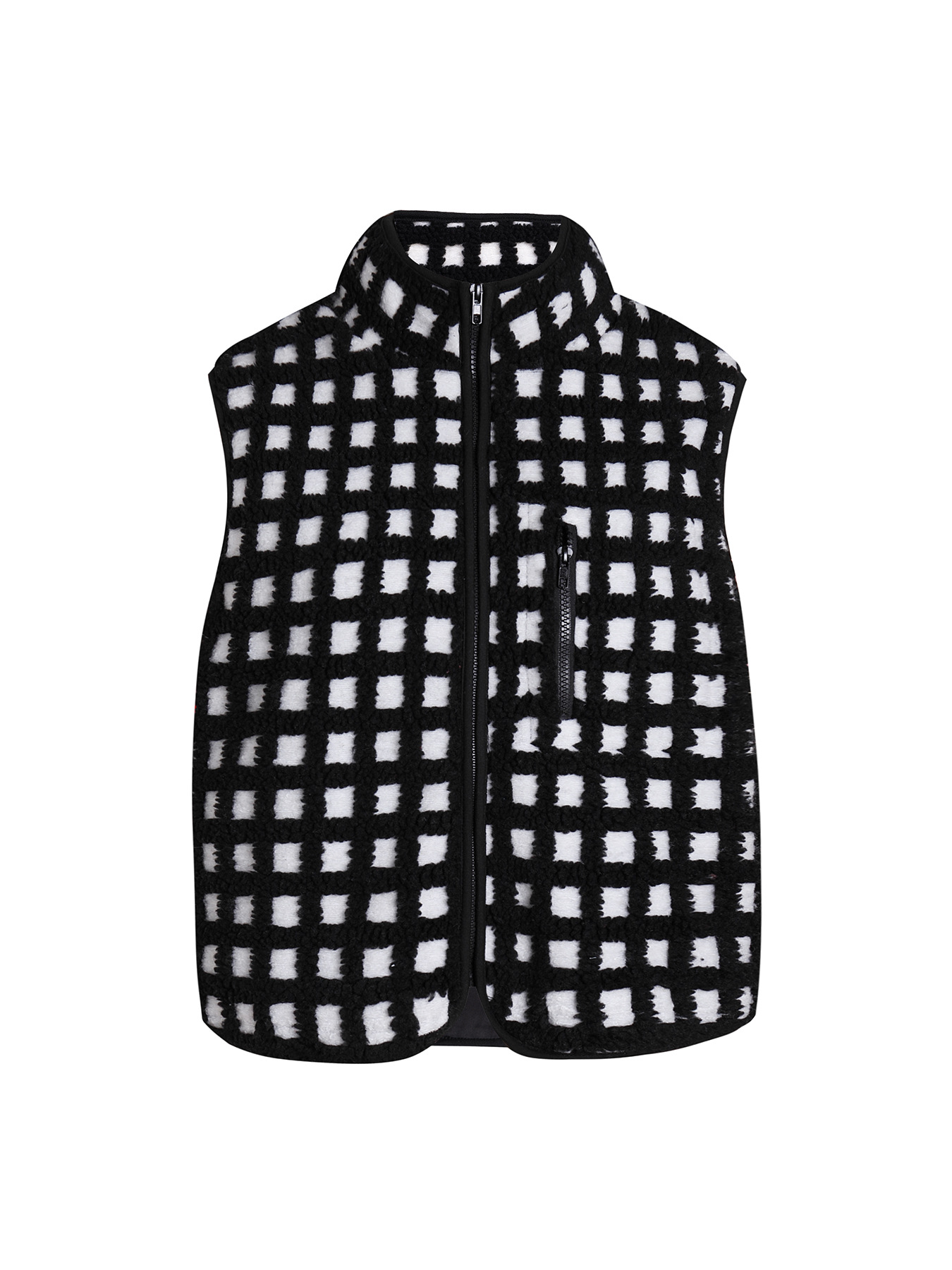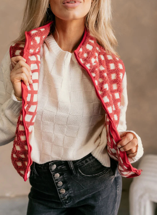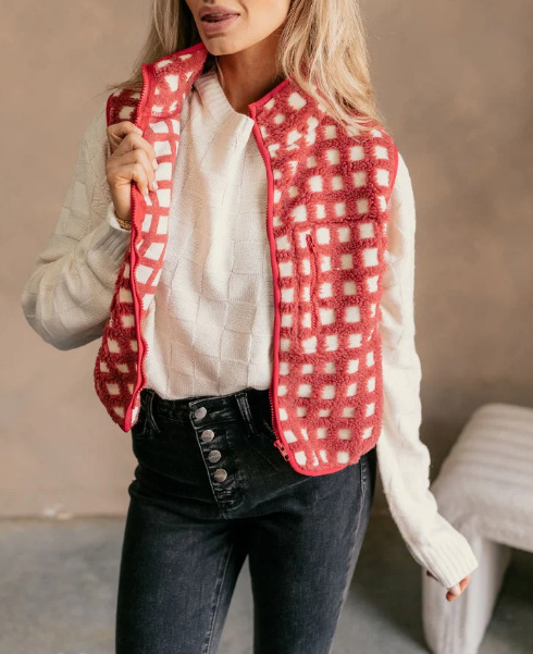 2025 가을 겨울 신상품 체크무늬 플러시 조끼 스탠드 칼라 조끼 민소매 조끼 여성용 재고 있음