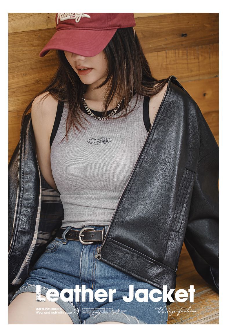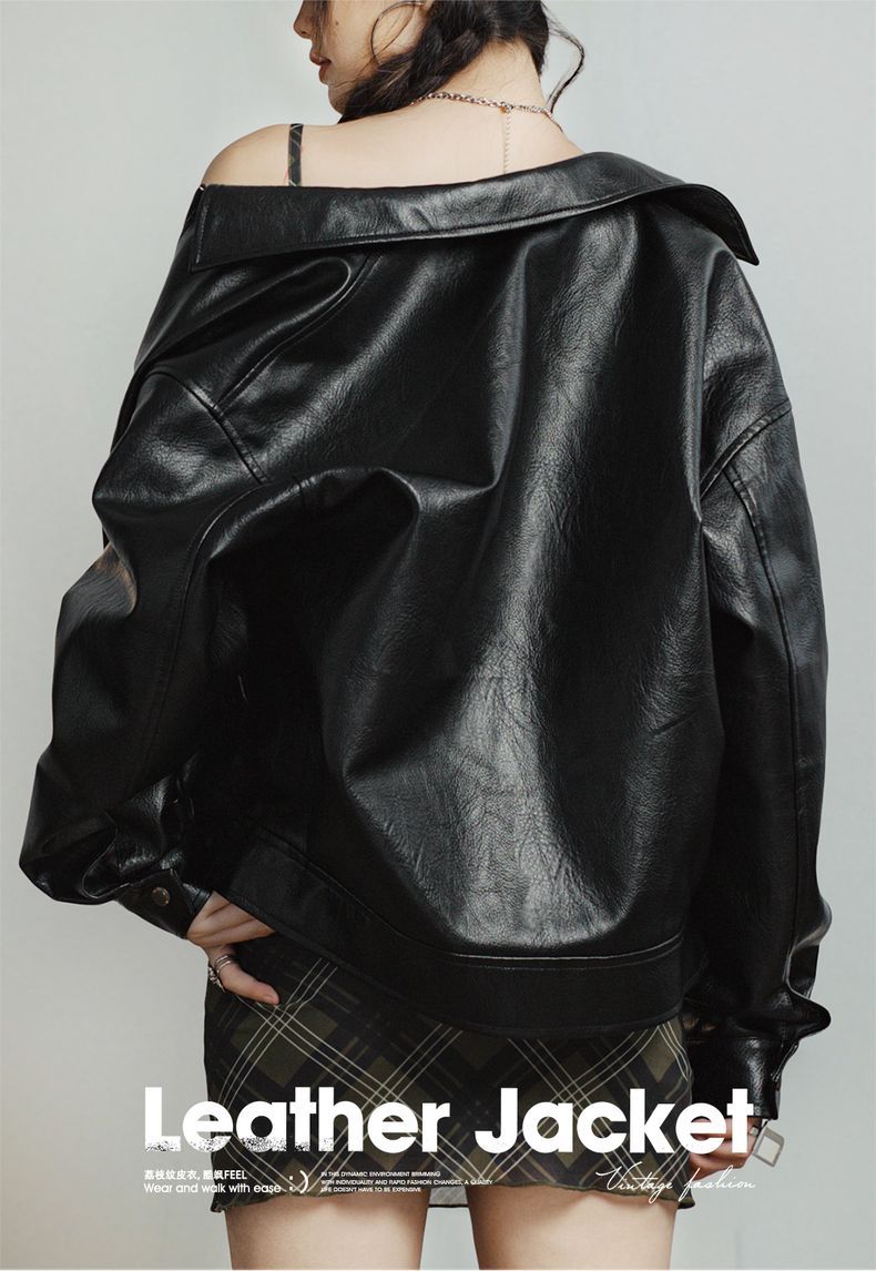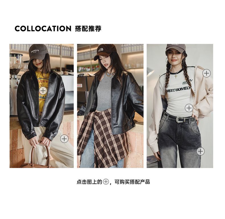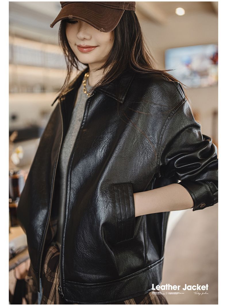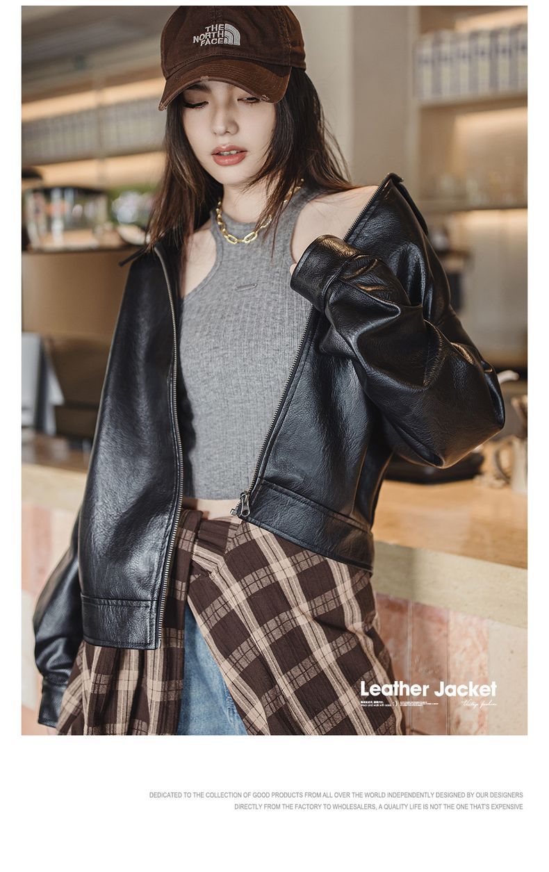 Madden 아메리칸 레트로 블랙 가죽 자켓 쁘띠 쇼트 오토바이 스타일 자켓 통근 탑 봄, 가을 여성스토어 가기