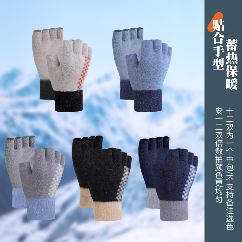 겨울철 남성용 반손가락 장갑, 따뜻하고 벨벳으로 두꺼워진 니트 울 핑거리스 학생용, 쓰기 및 사이클링, 가을 겨울 남성용스토어 가기