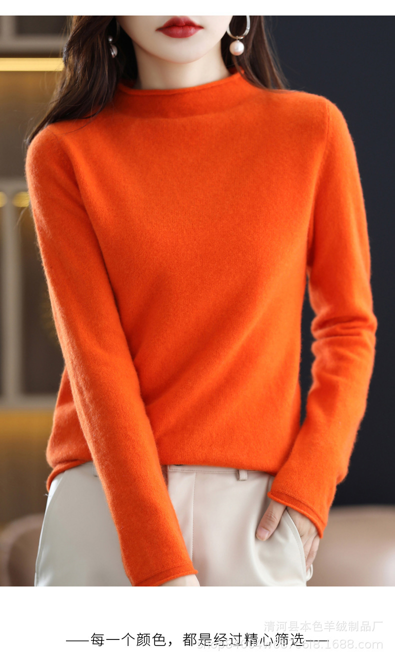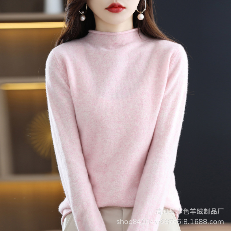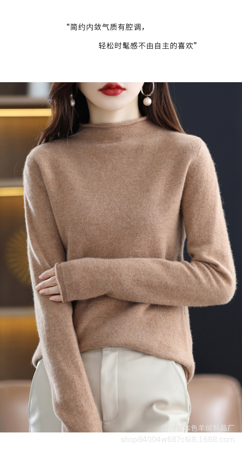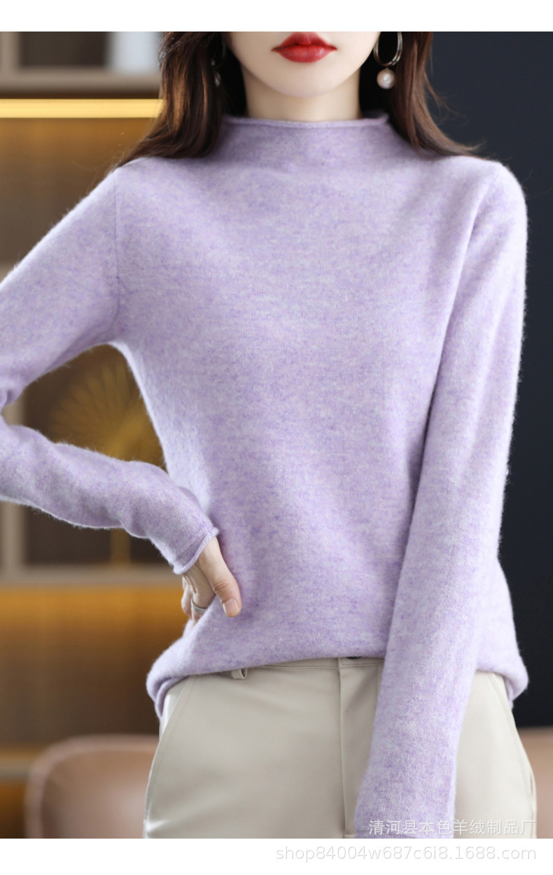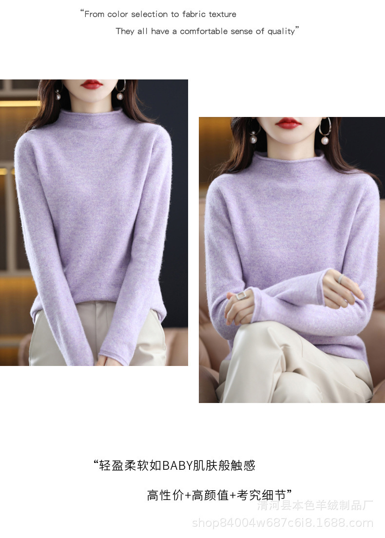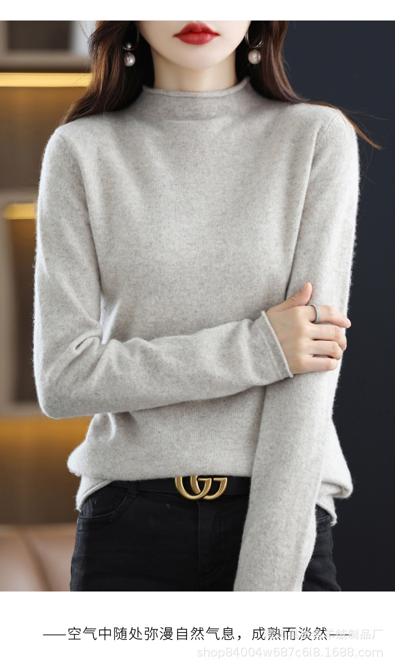 23 가을과 겨울 새로운 세미 하이 칼라 느슨한 캐시미어 스웨터 단색 스웨터 단색 긴 소매 캐시미어베이스 헤밍 세미 하이스토어 가기