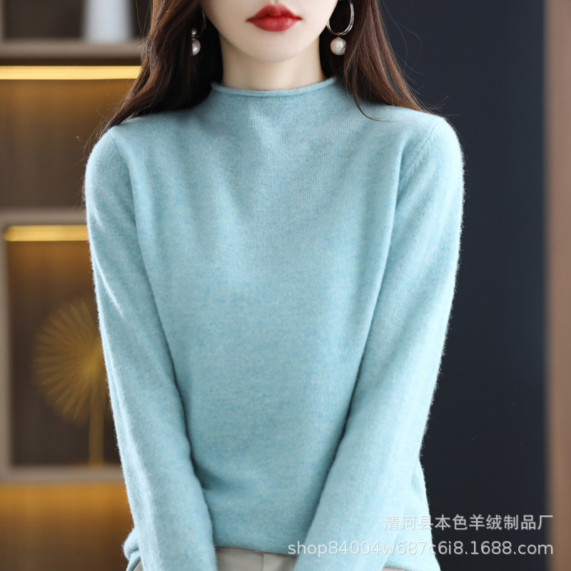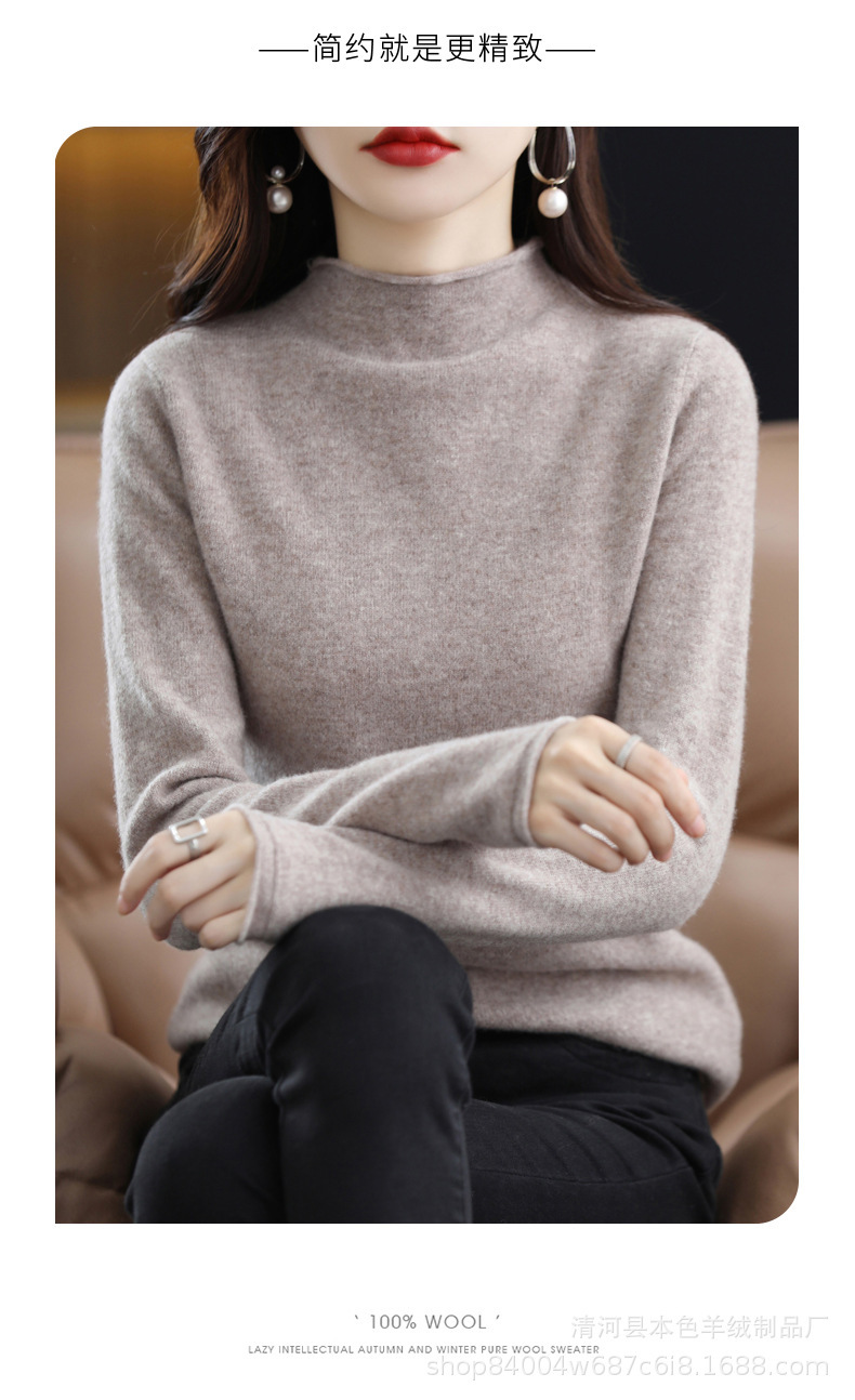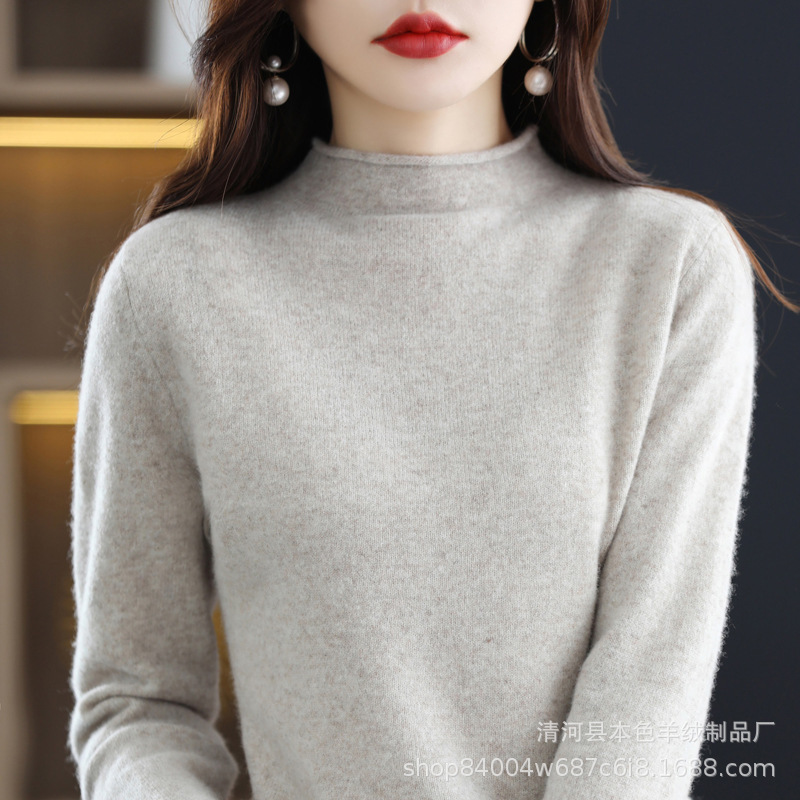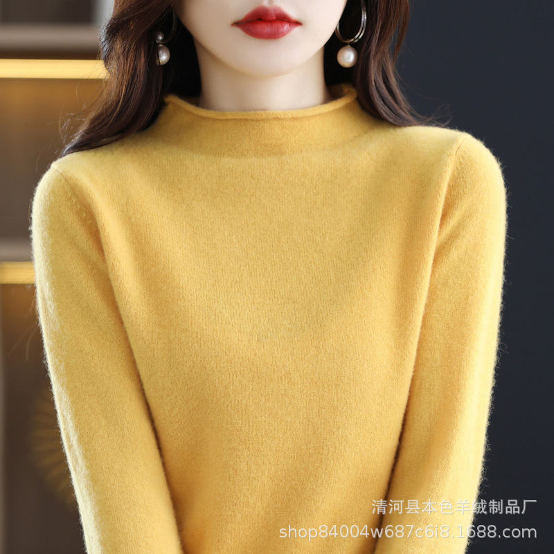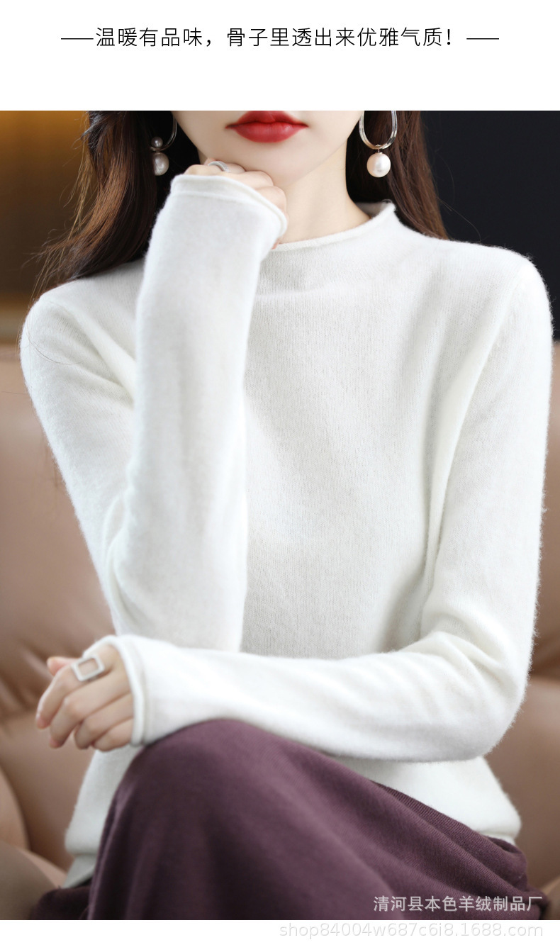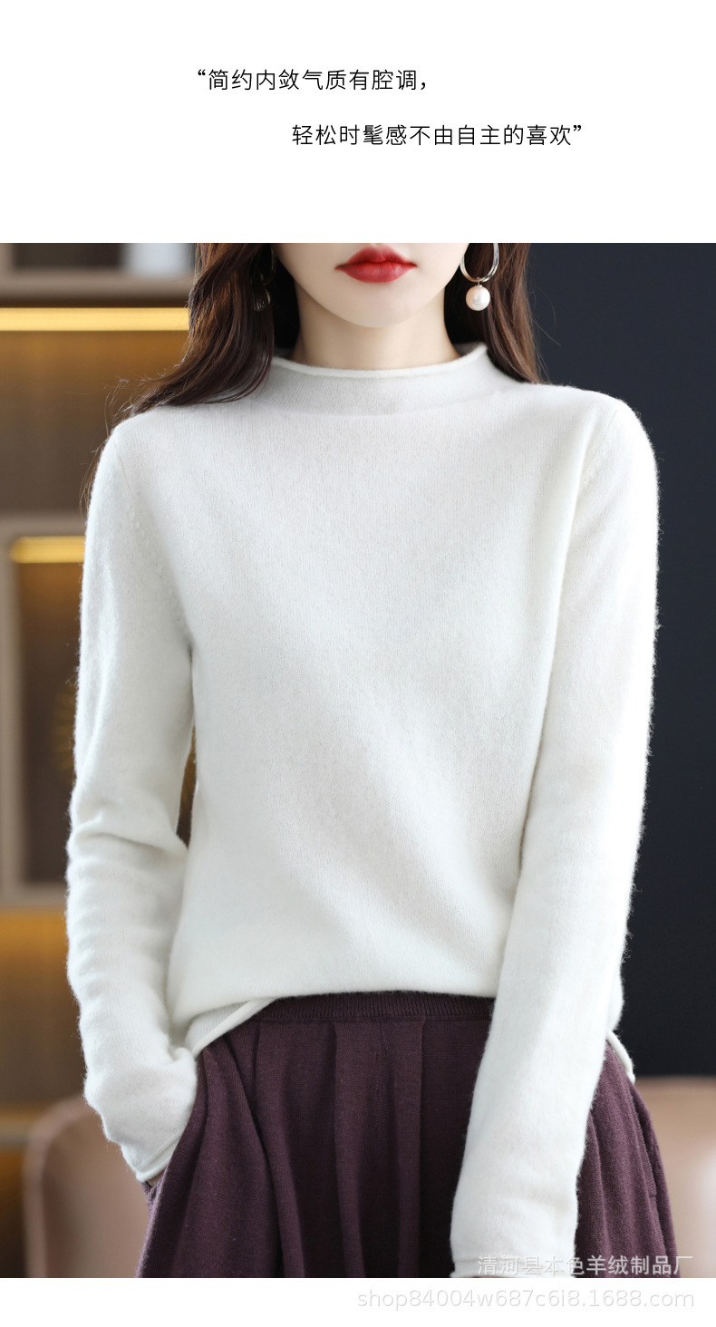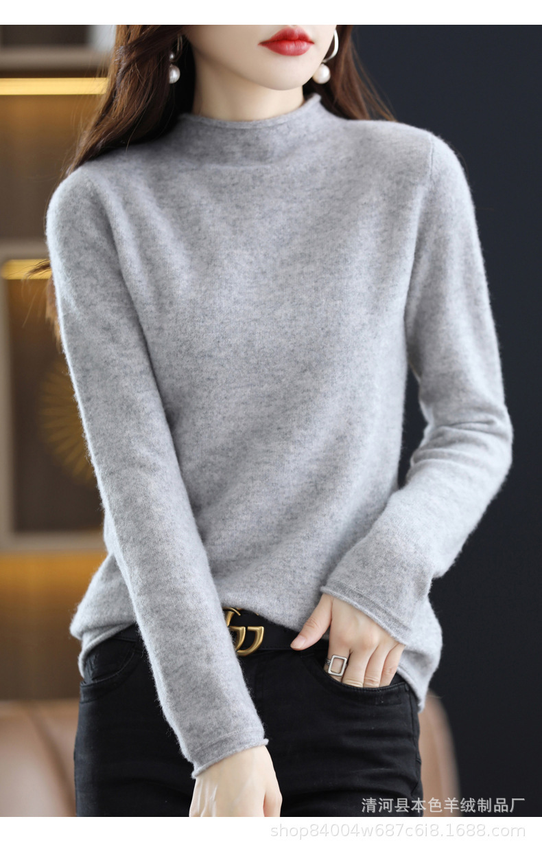 23 가을과 겨울 새로운 세미 하이 칼라 느슨한 캐시미어 스웨터 단색 스웨터 단색 긴 소매 캐시미어베이스 헤밍 세미 하이스토어 가기
