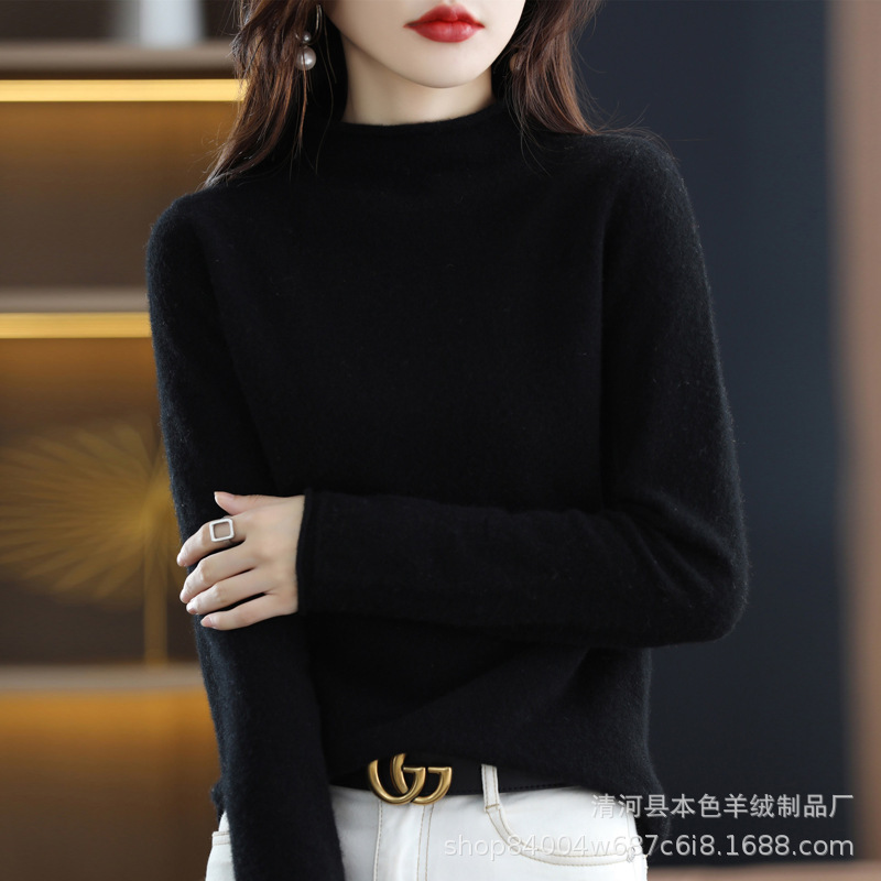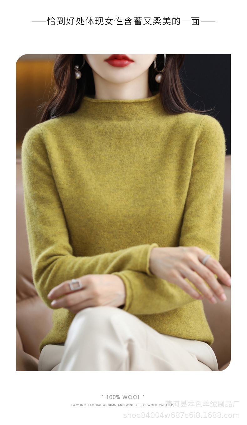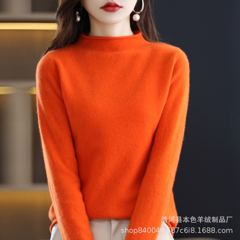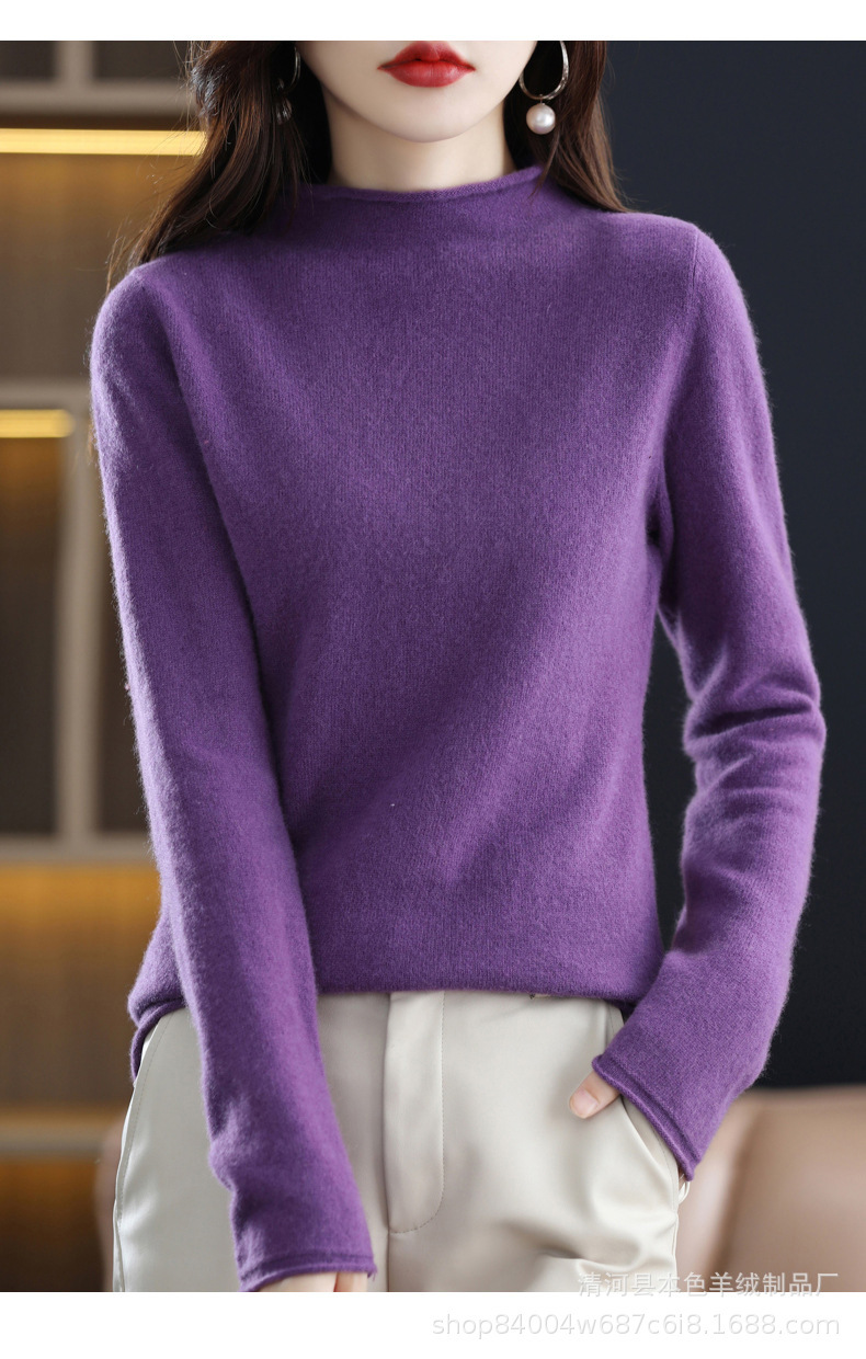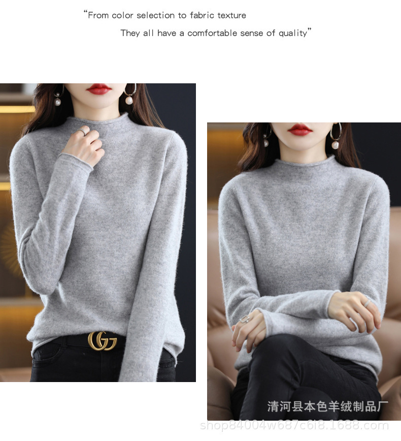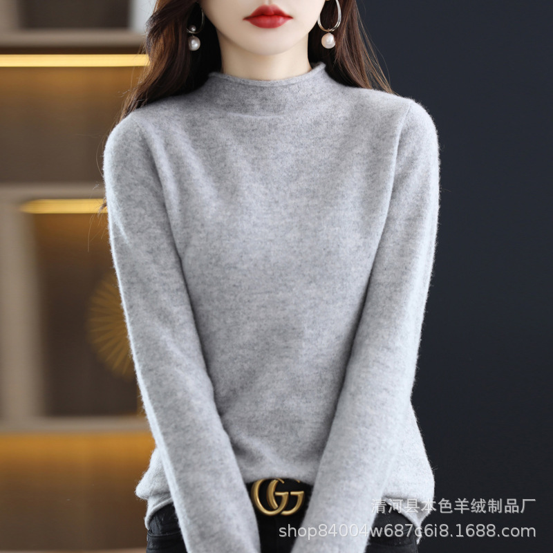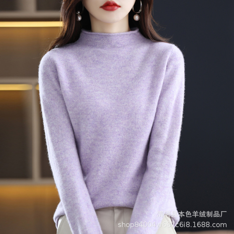 23 가을과 겨울 새로운 세미 하이 칼라 느슨한 캐시미어 스웨터 단색 스웨터 단색 긴 소매 캐시미어베이스 헤밍 세미 하이스토어 가기
