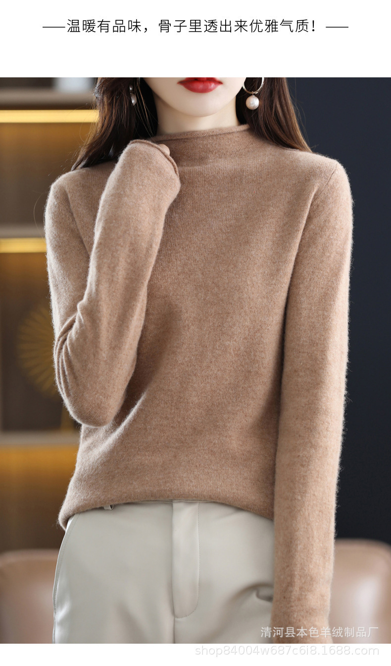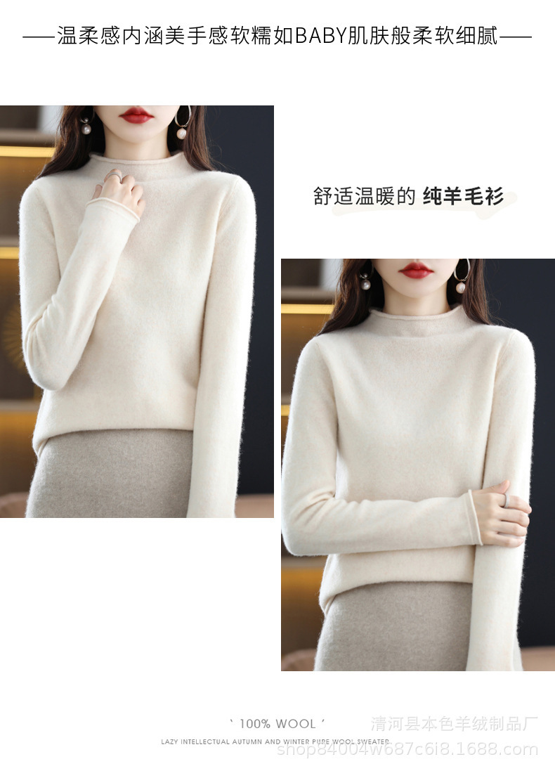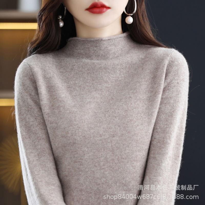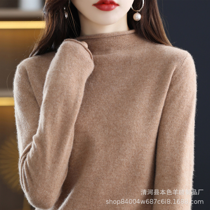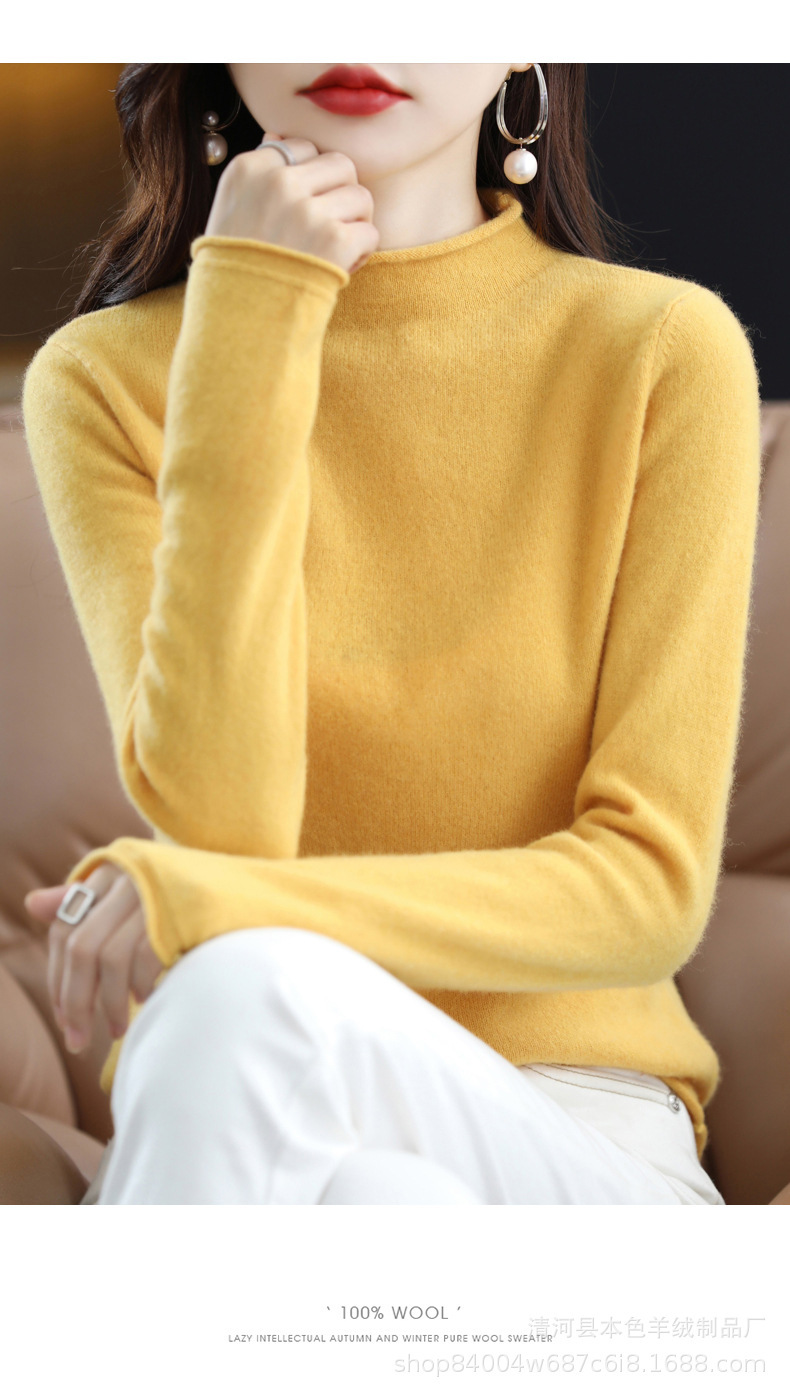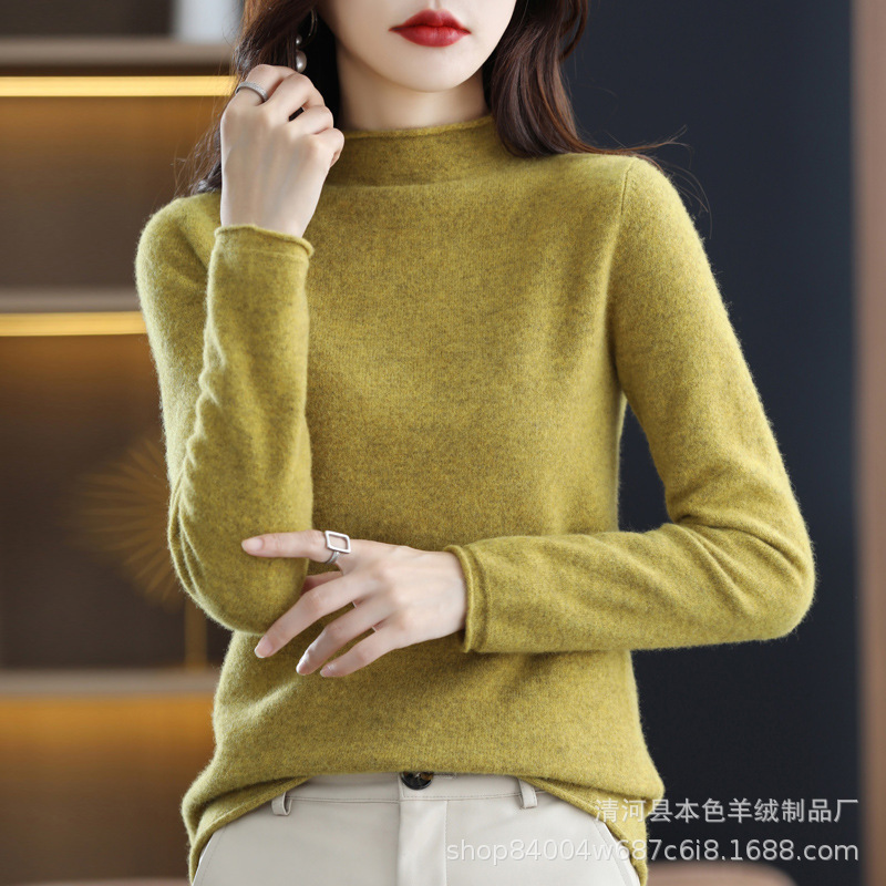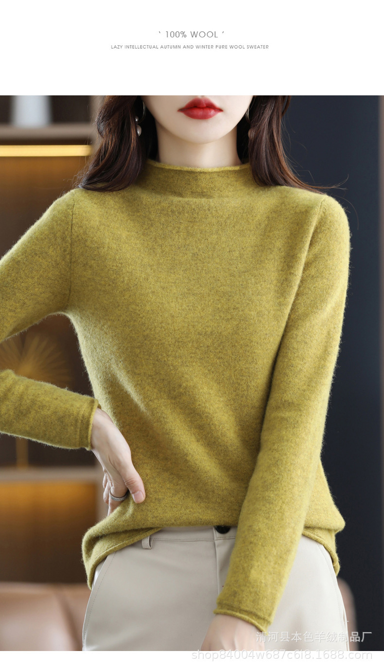 23 가을과 겨울 새로운 세미 하이 칼라 느슨한 캐시미어 스웨터 단색 스웨터 단색 긴 소매 캐시미어베이스 헤밍 세미 하이스토어 가기