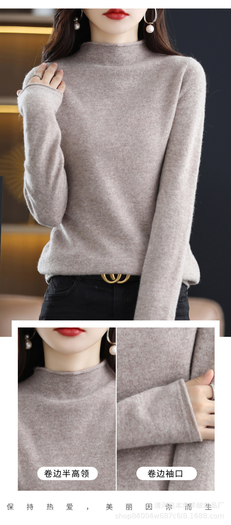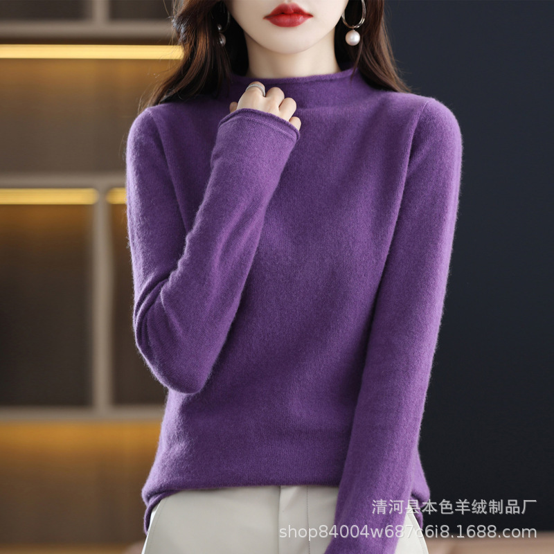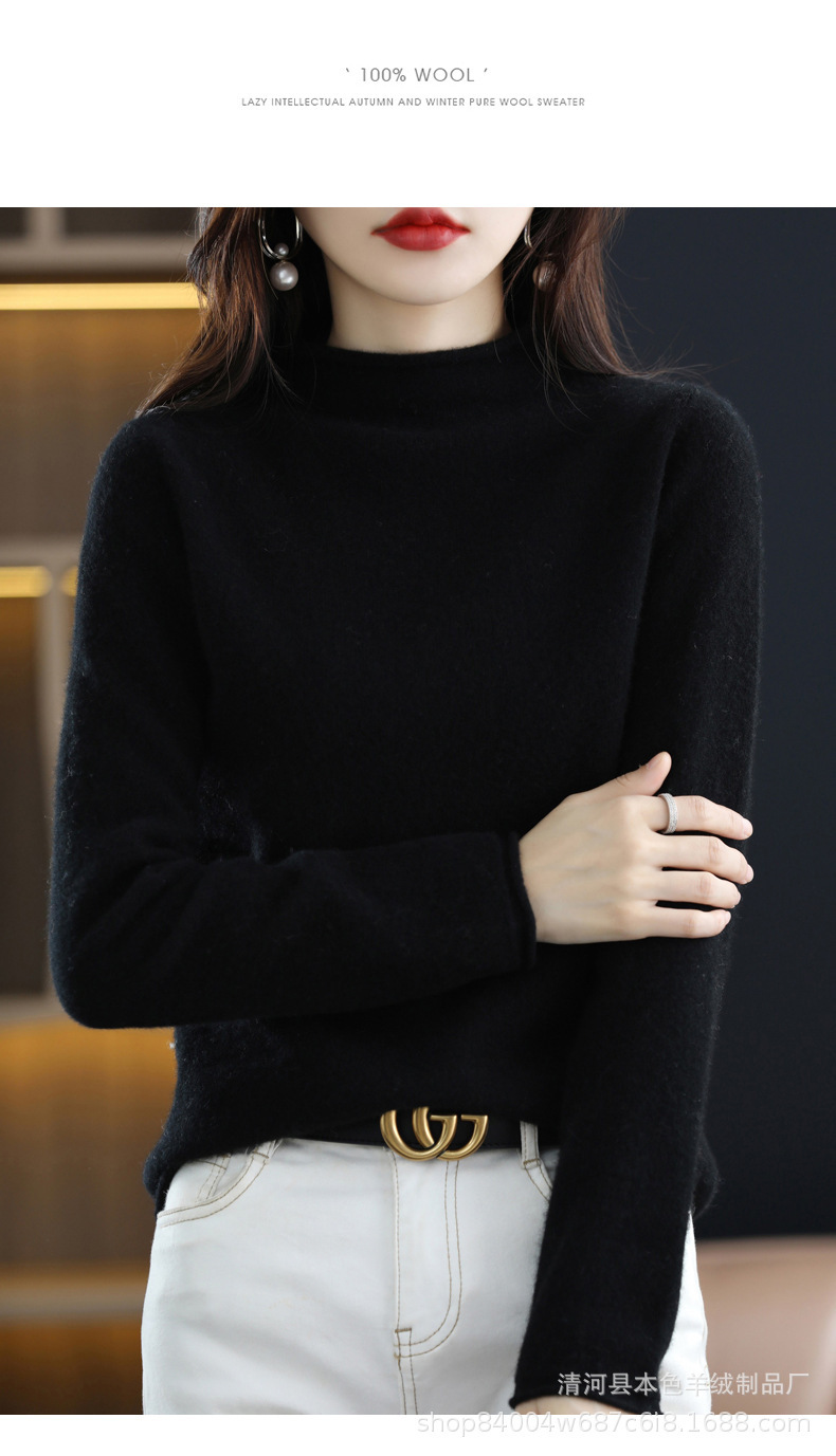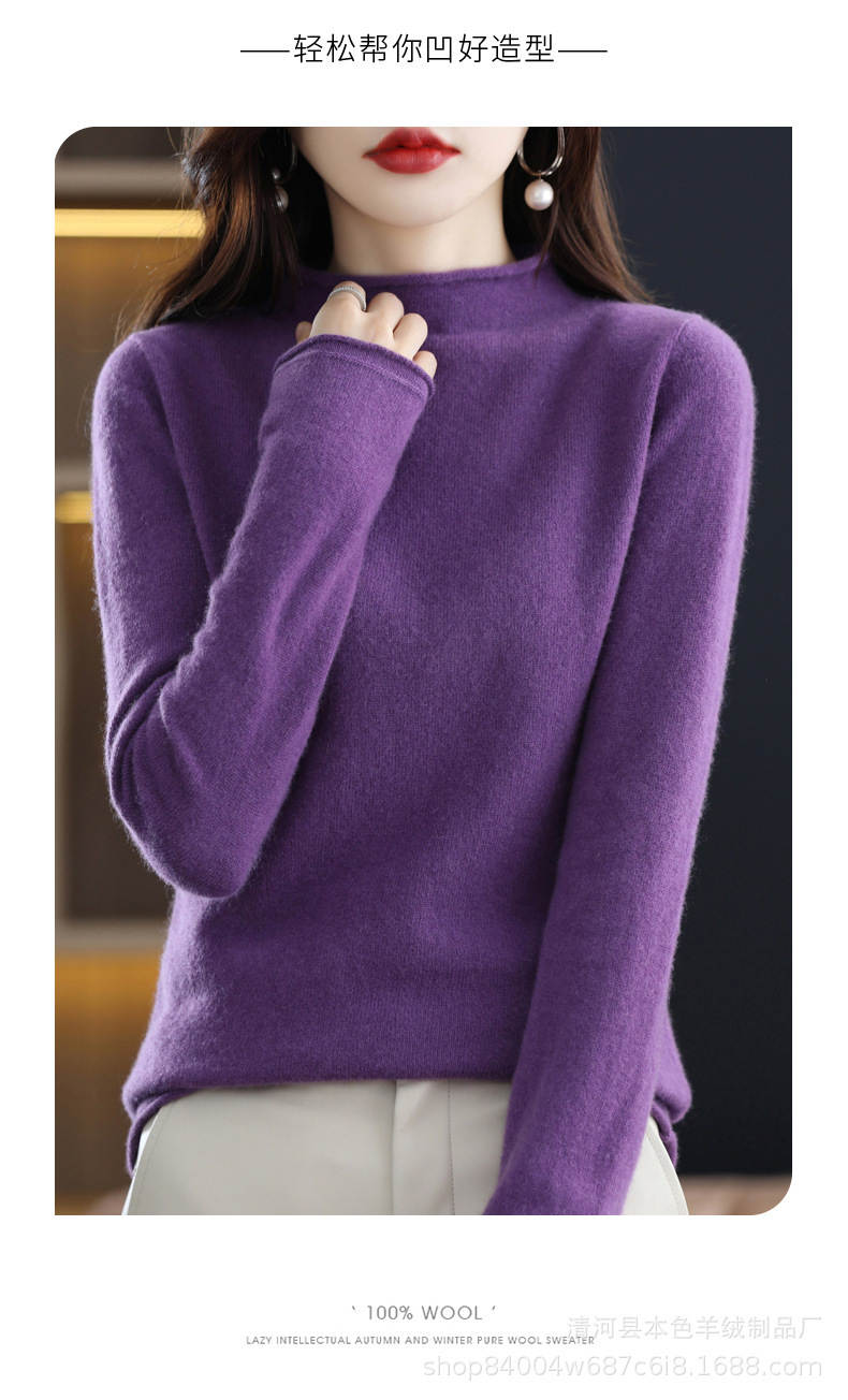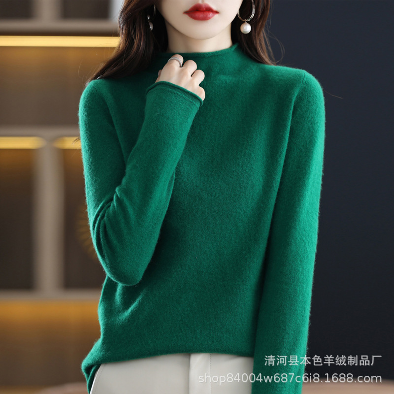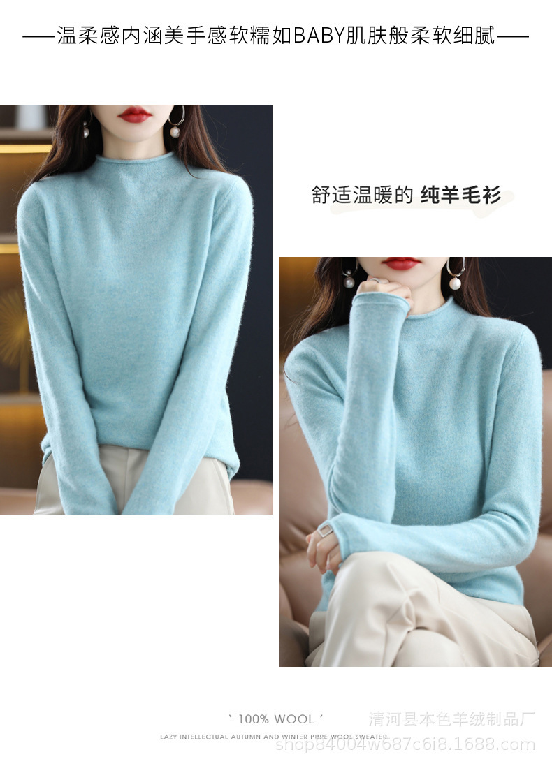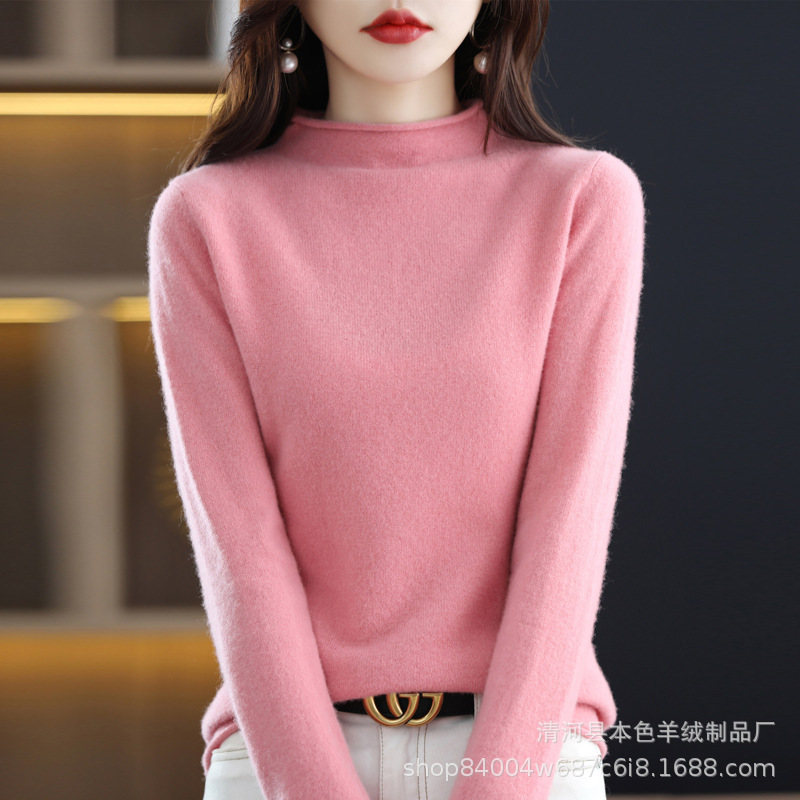 23 가을과 겨울 새로운 세미 하이 칼라 느슨한 캐시미어 스웨터 단색 스웨터 단색 긴 소매 캐시미어베이스 헤밍 세미 하이스토어 가기