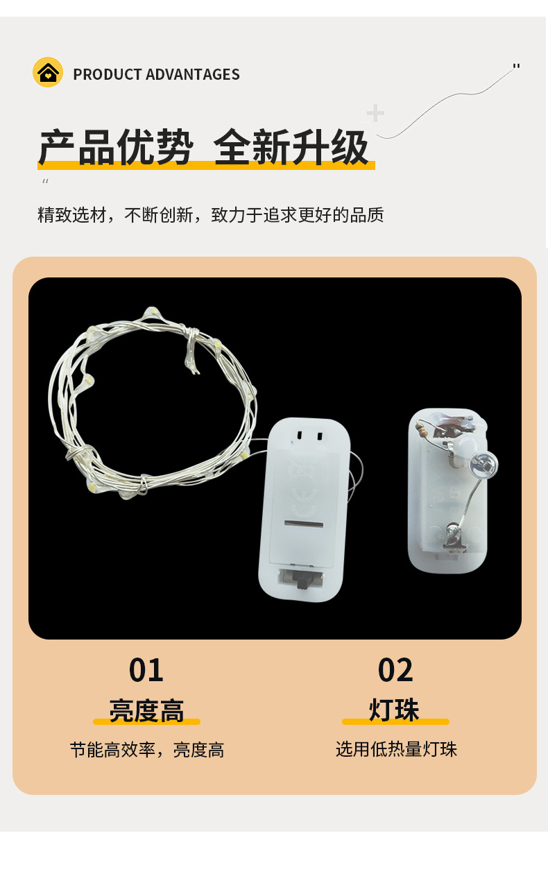 • 10개의 조명과 10개의 피치 - 구리선 조명 - 따뜻한 백색광