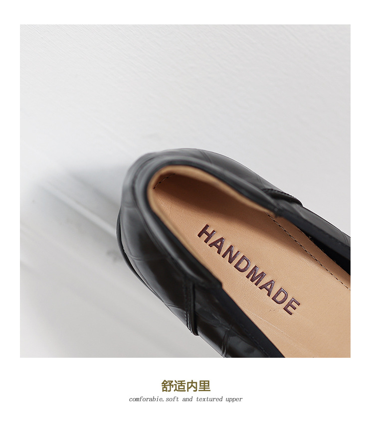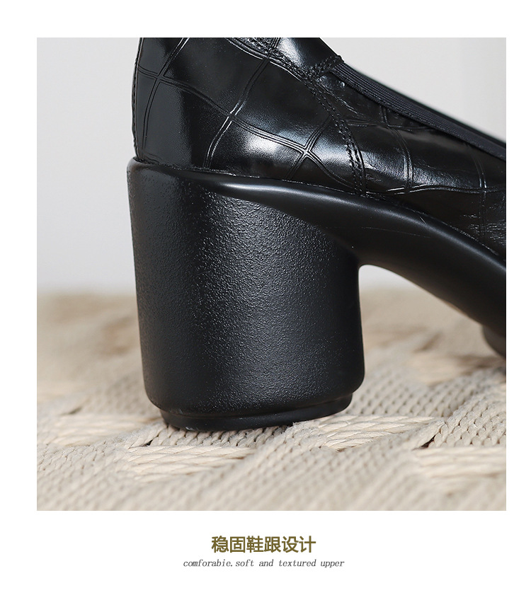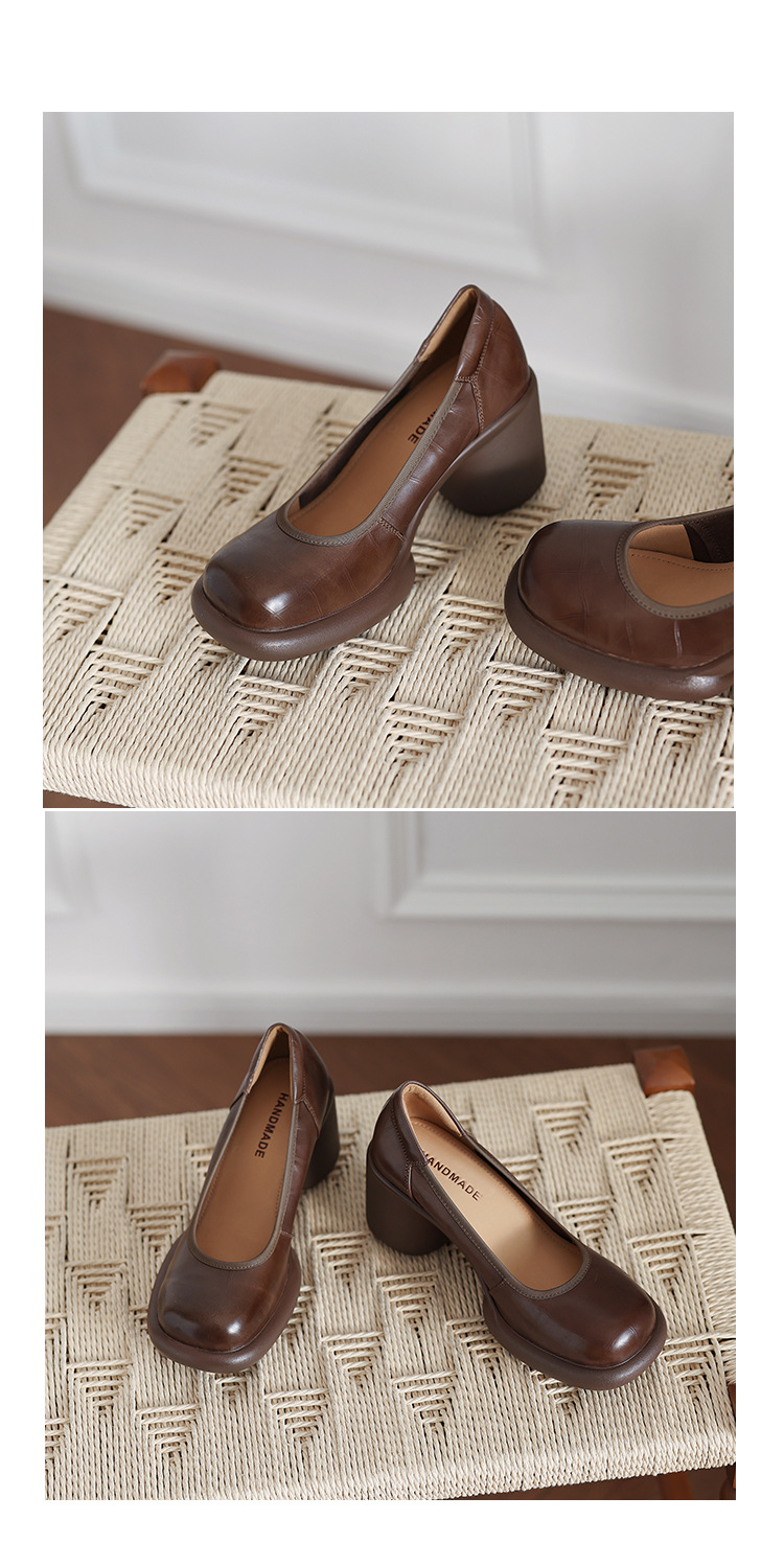 2024 새로운 빈티지 두꺼운 뒤꿈치 신발 여성 돌 패턴 Cowhide 라운드 발가락 얕은 프랑스 통근 빈티지 하이힐 신발스토어 가기