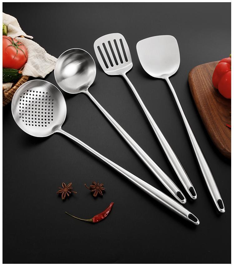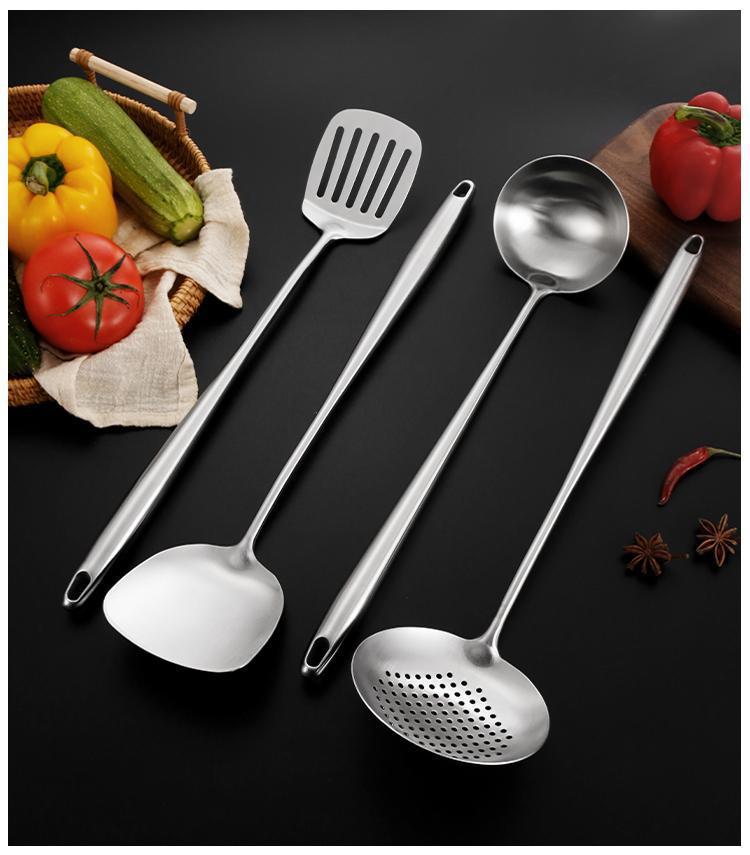 슬리퍼 316 스테인레스 스틸 볶음 스푼 가정용 볶음 삽 두꺼운 긴 손잡이 수프 스푼 원피스 두꺼운 선물 주방 세트