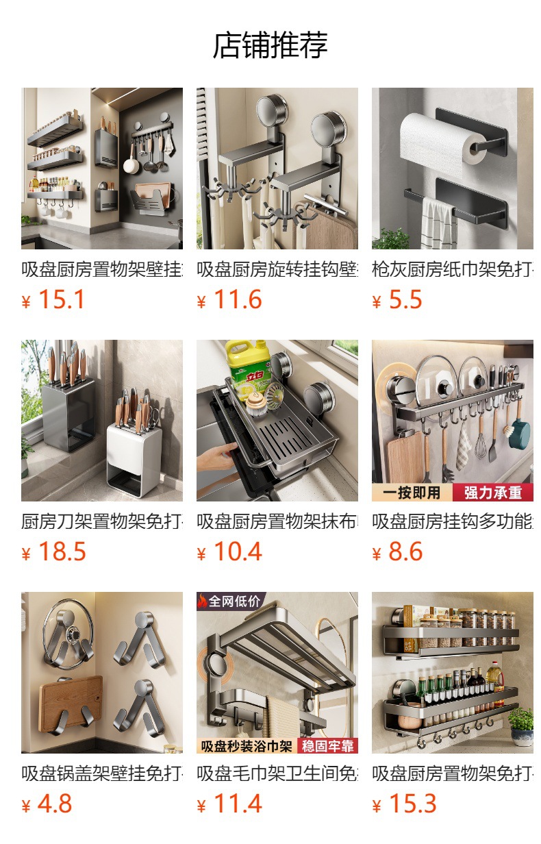 석션 형 주방 보관 랙 벽걸이 형 구멍이없는 다기능 젓가락 홀더 나이프 홀더 조미료 보관 랙스토어 가기