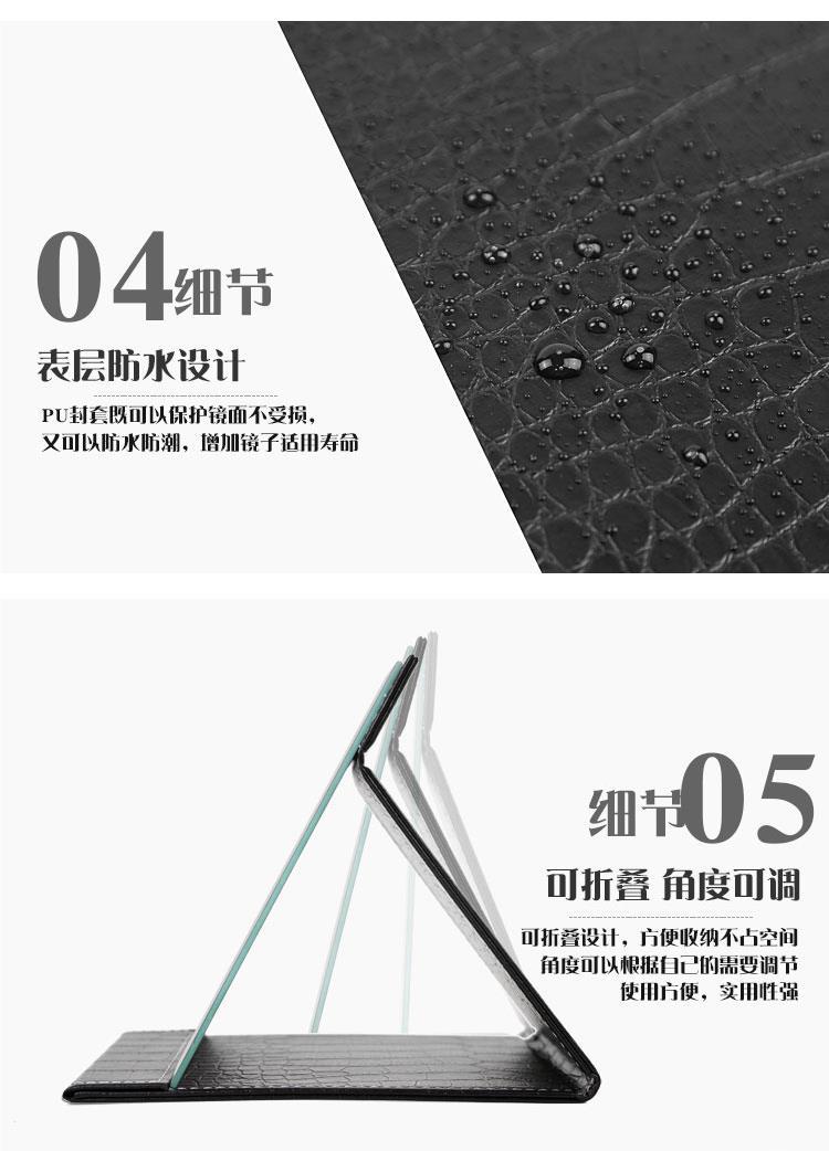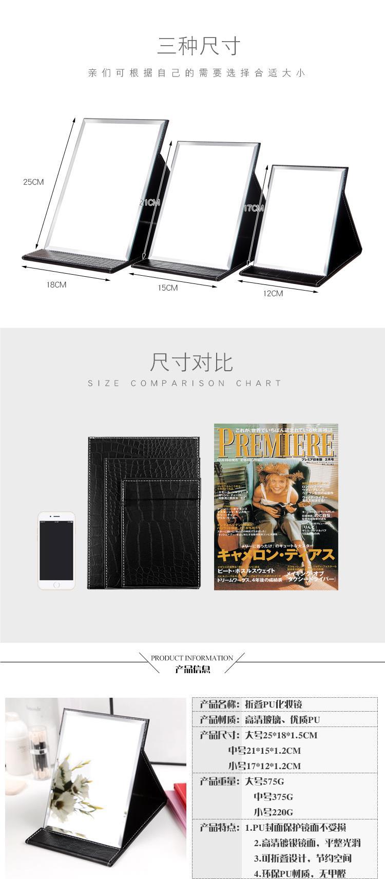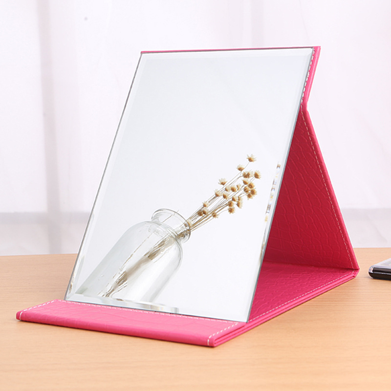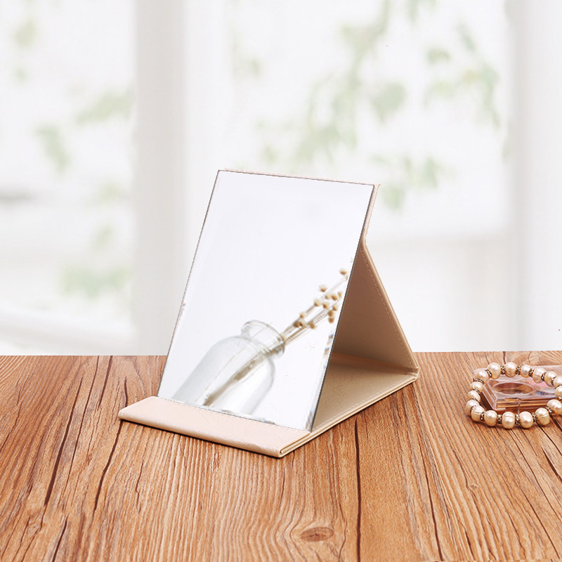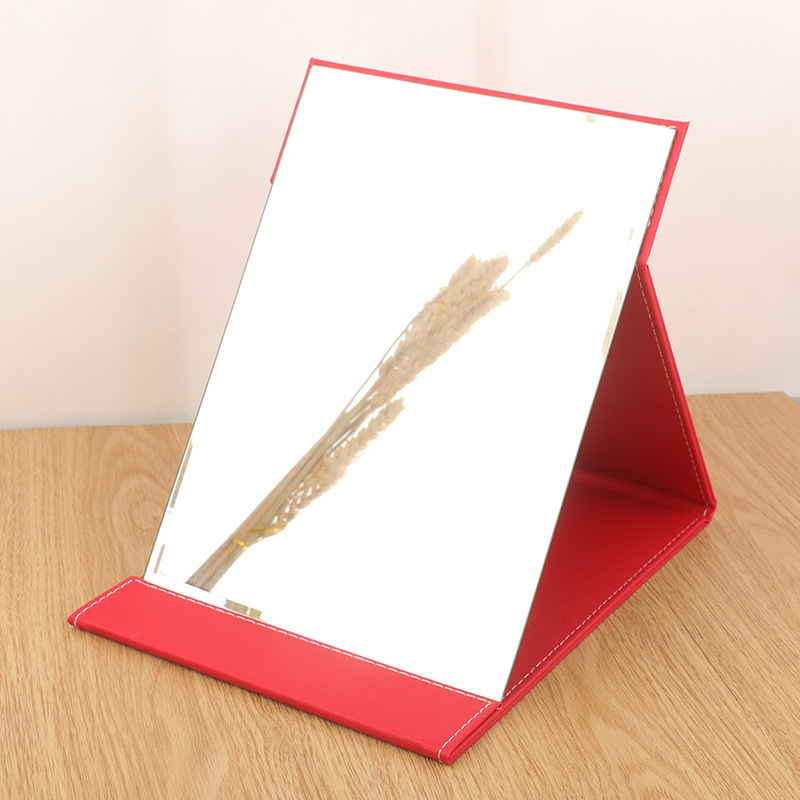 HD 접이식 거울 메이크업 거울 데스크탑 휴대용 학생 기숙사 공주 대형 PU 가죽 탁상용 드레싱 거울