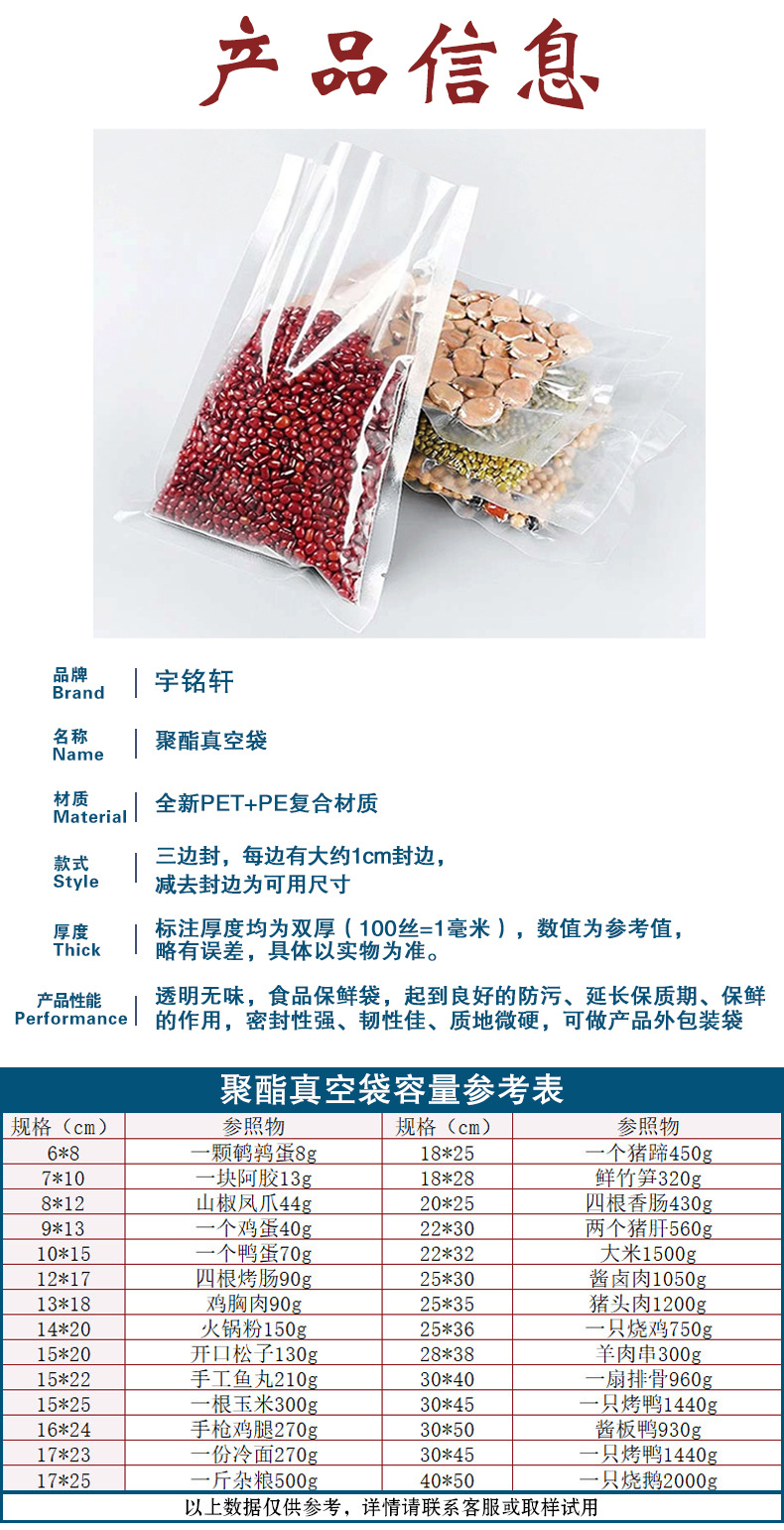 도매 식품 진공 가방 공기 추출 밀봉 가방 폴리에스테르 투명 신선 유지 포장 사용자 정의 인쇄 폴리에스테르 진공 가방