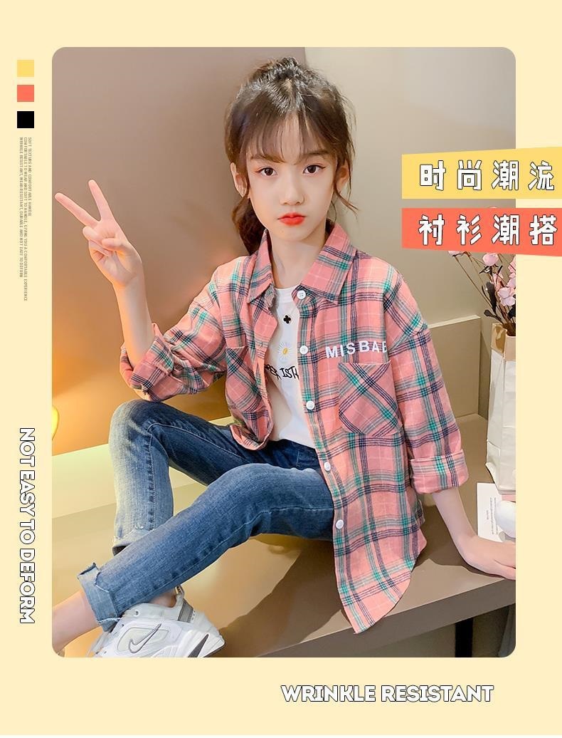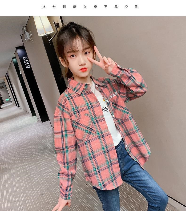 여자 옷깃 프린트 셔츠 긴팔 가을 의류 2025 새로운 중대형 아동 의류 아동 셔츠 클래식 격자 무늬 트렌드스토어 가기