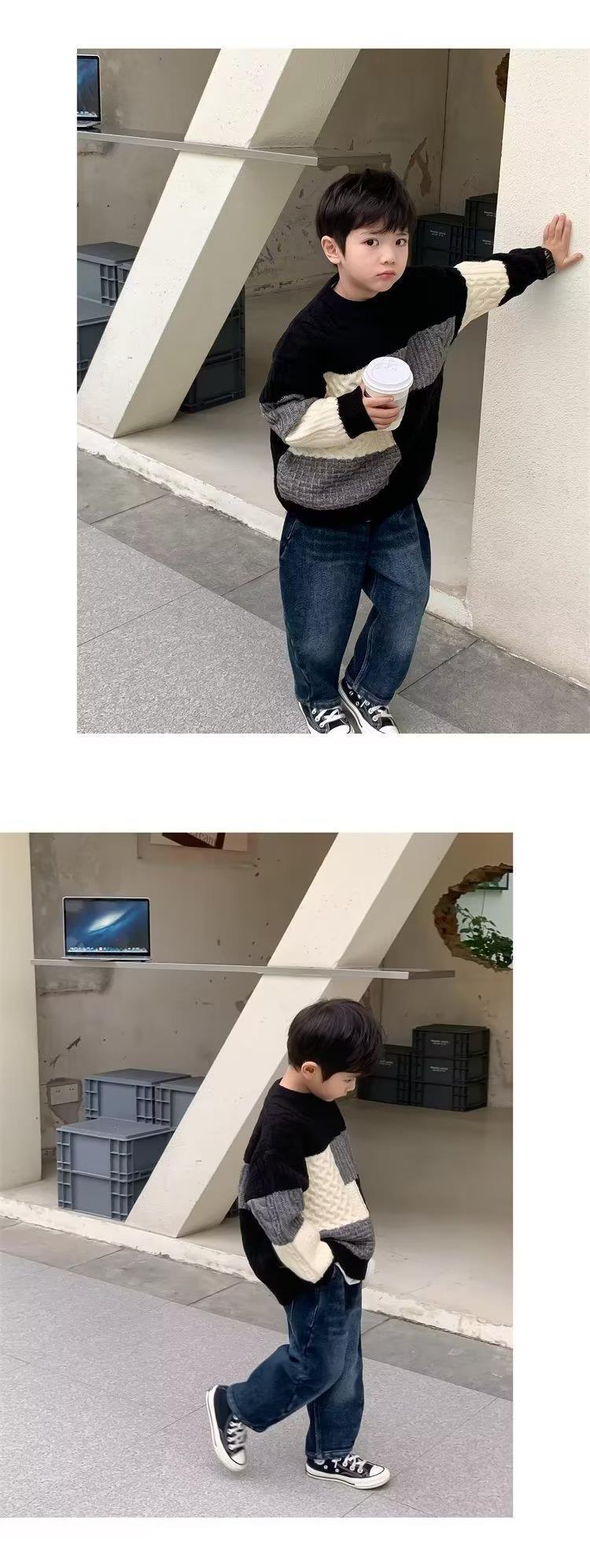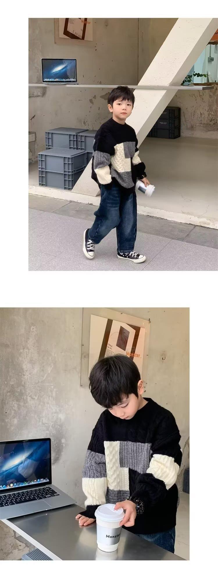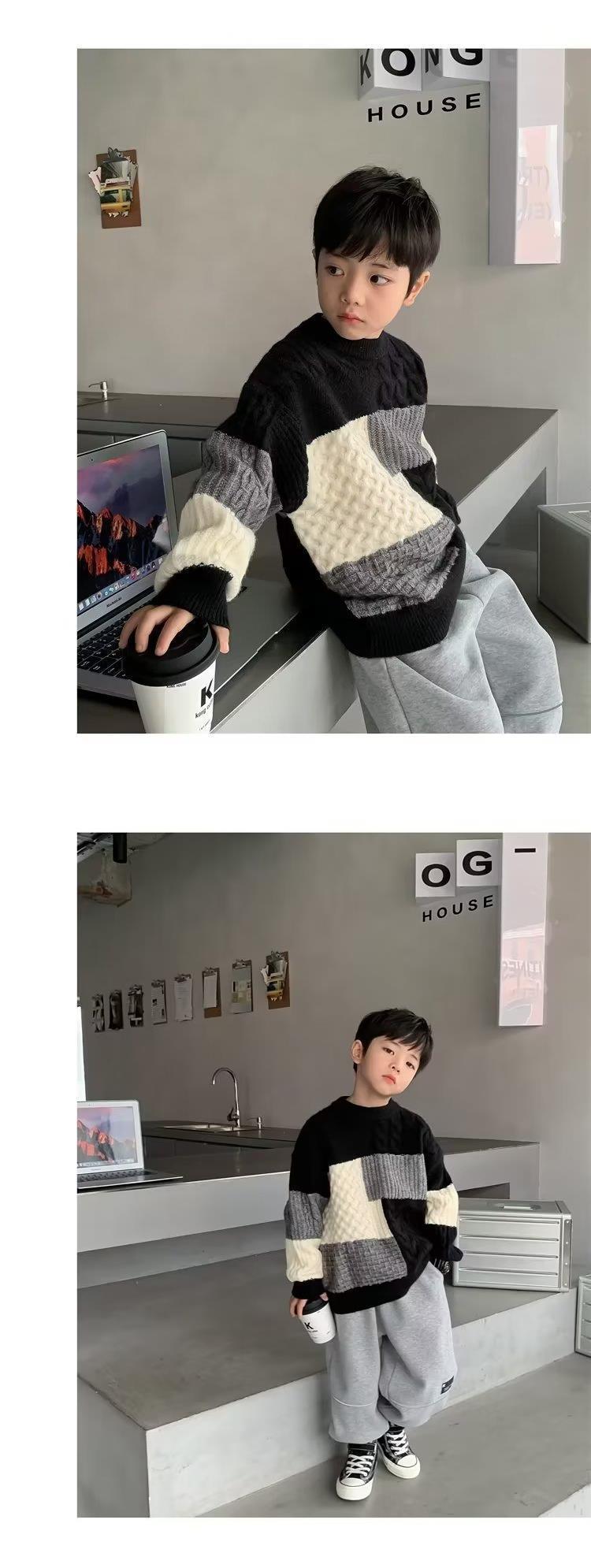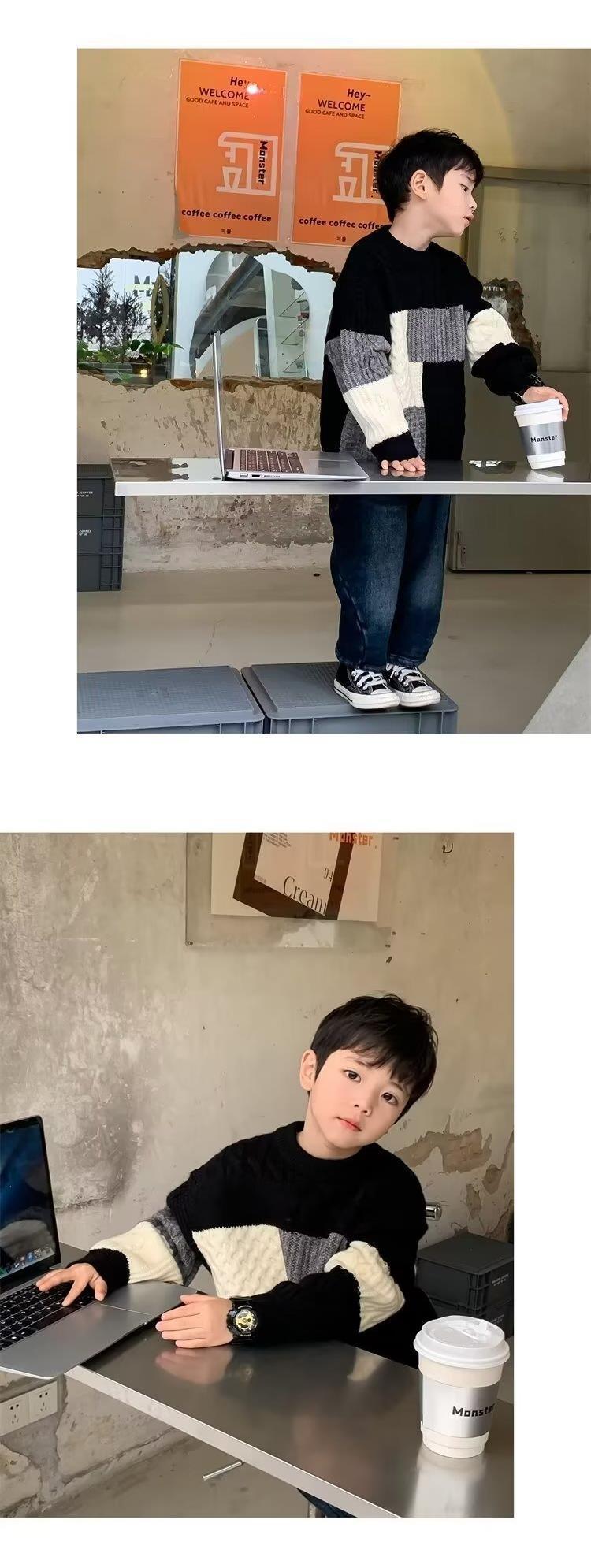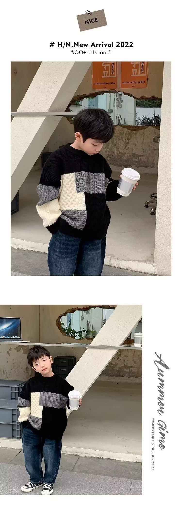 가을과 겨울 소년 스웨터 외국식 큰 어린이 니트 셔츠 풀오버 크루 넥 컬러 매칭 쿨 핸섬 스트리트 패션 탑스토어 가기
