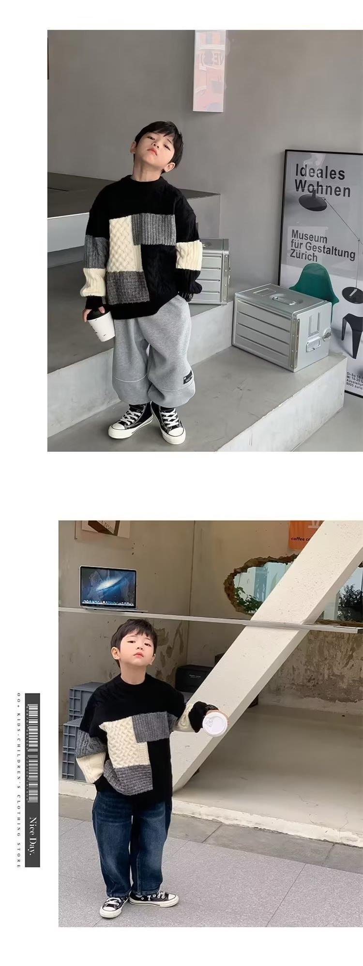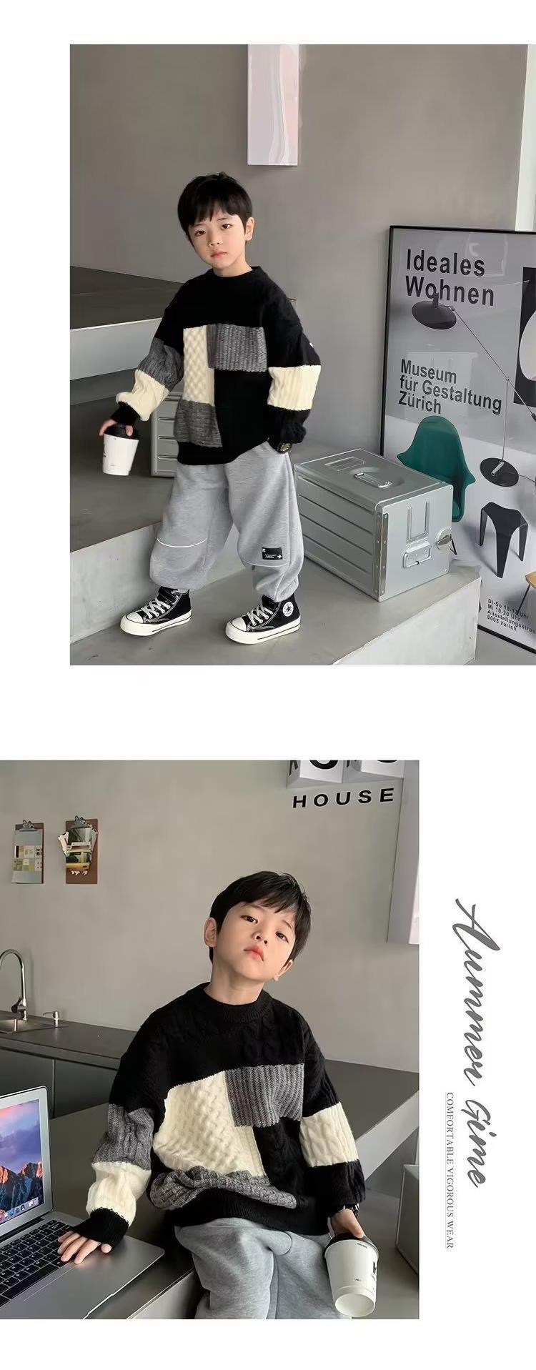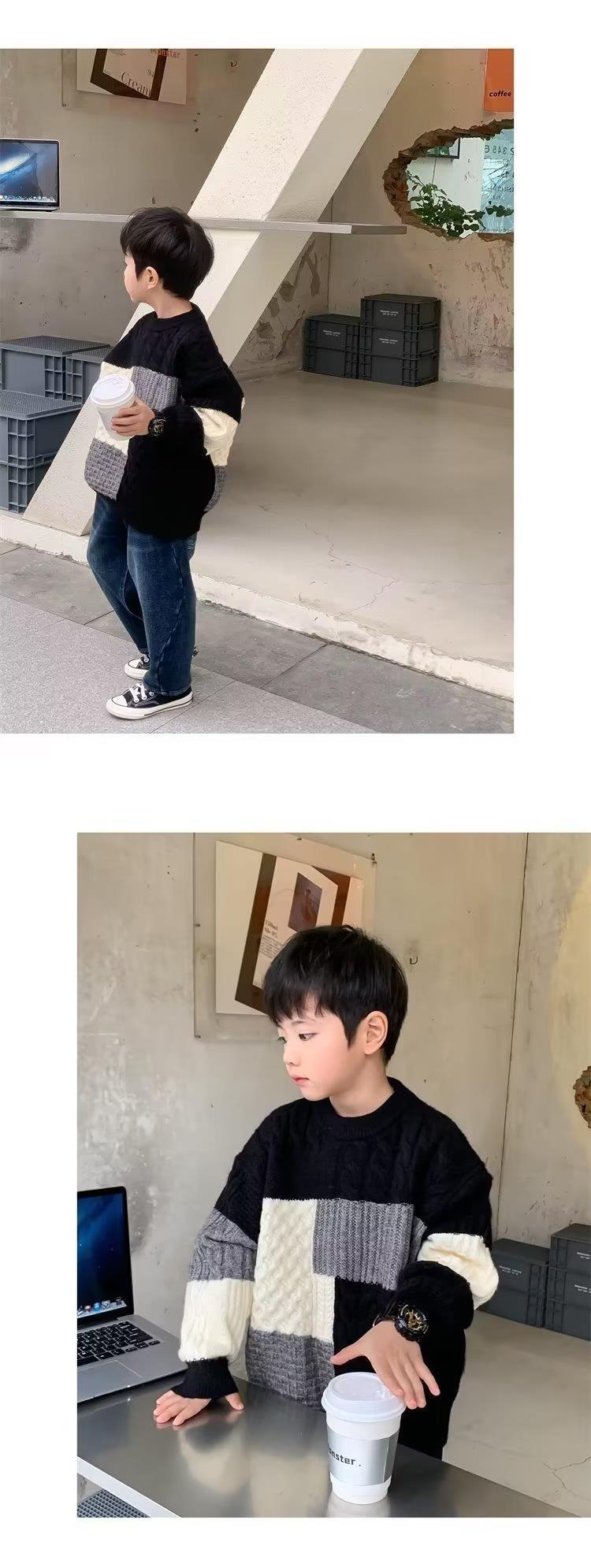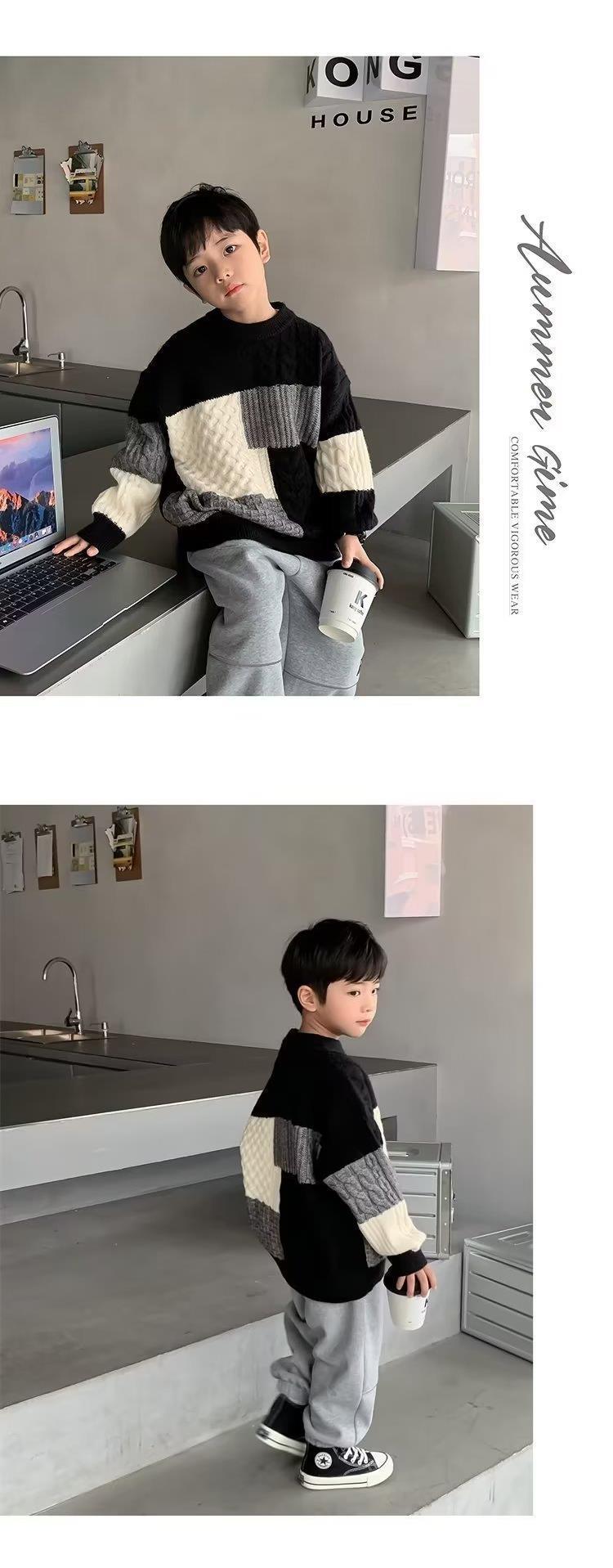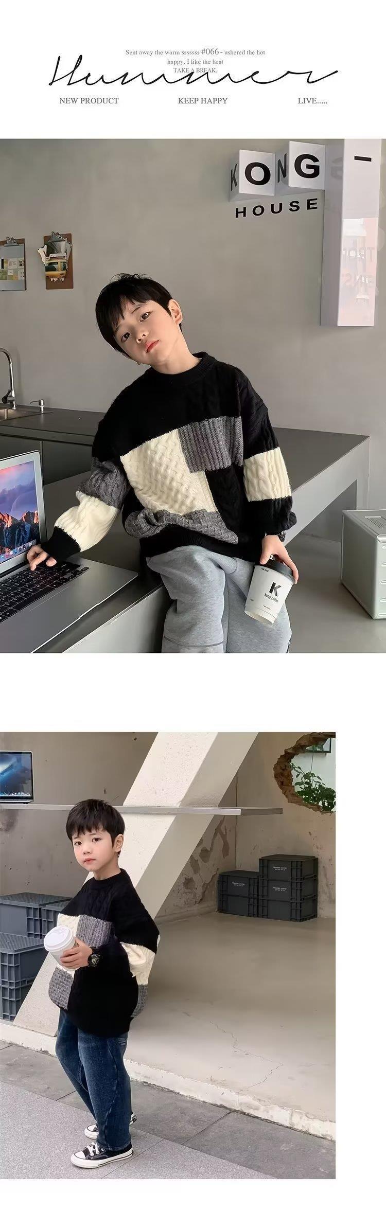 가을과 겨울 소년 스웨터 외국식 큰 어린이 니트 셔츠 풀오버 크루 넥 컬러 매칭 쿨 핸섬 스트리트 패션 탑스토어 가기