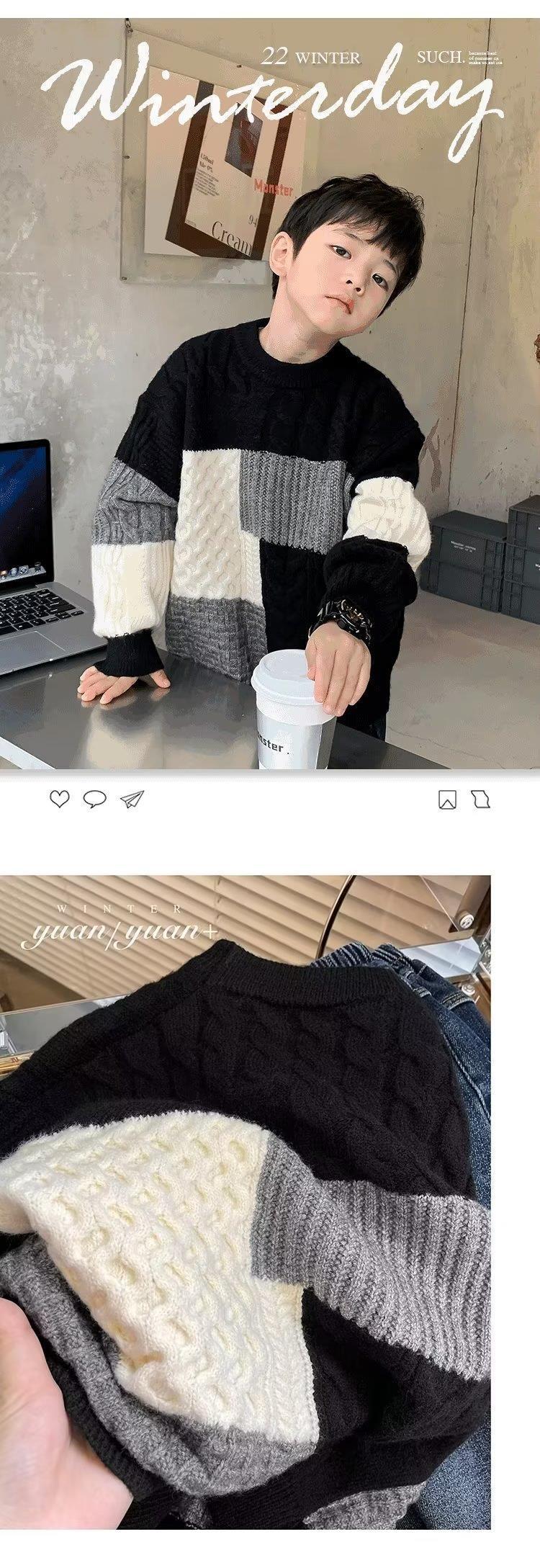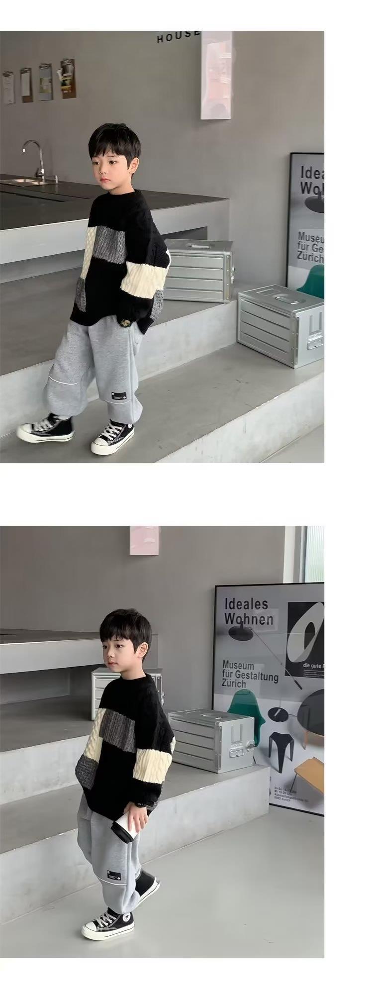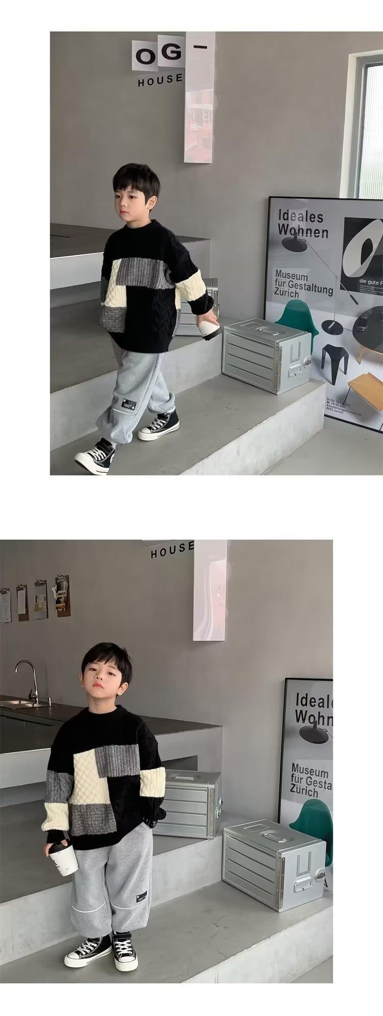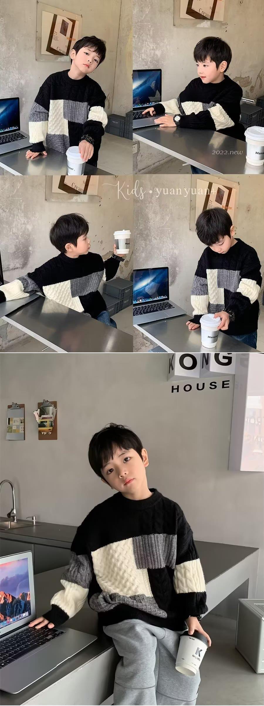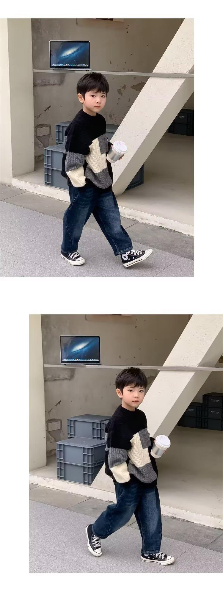 가을과 겨울 소년 스웨터 외국식 큰 어린이 니트 셔츠 풀오버 크루 넥 컬러 매칭 쿨 핸섬 스트리트 패션 탑스토어 가기