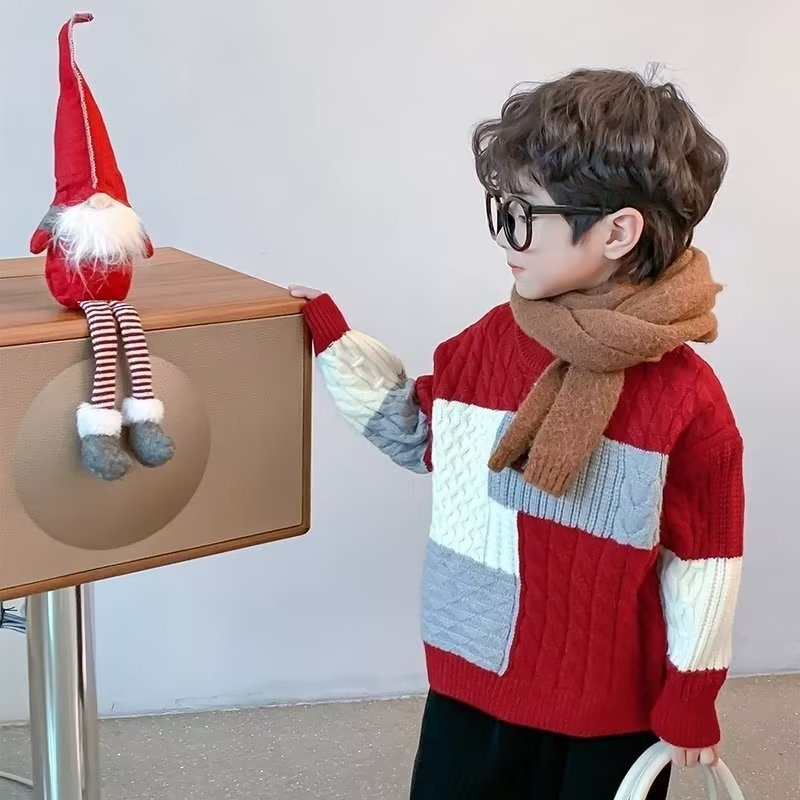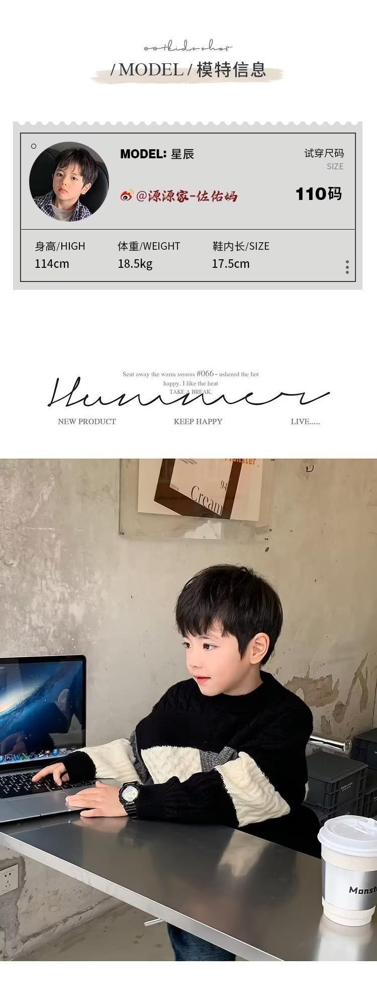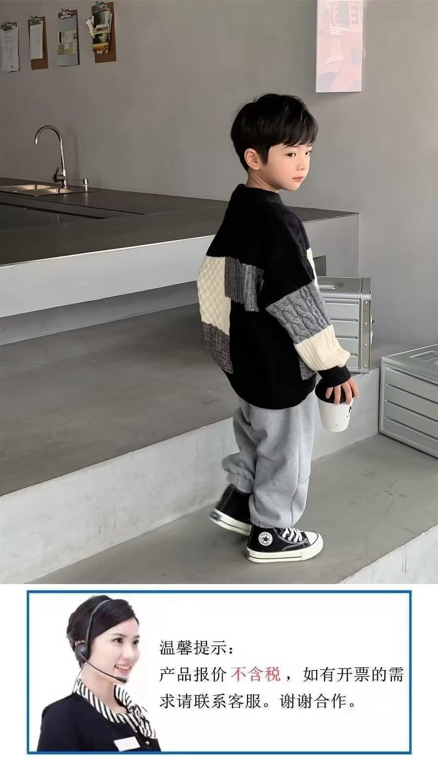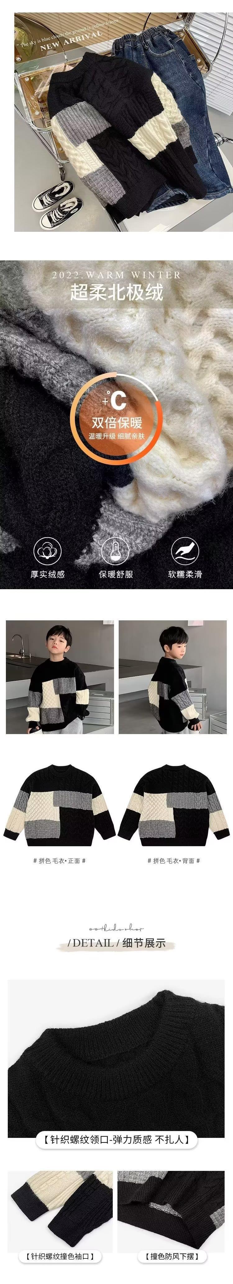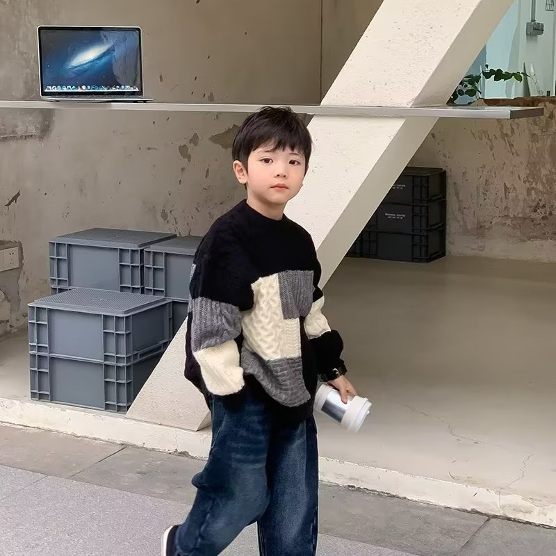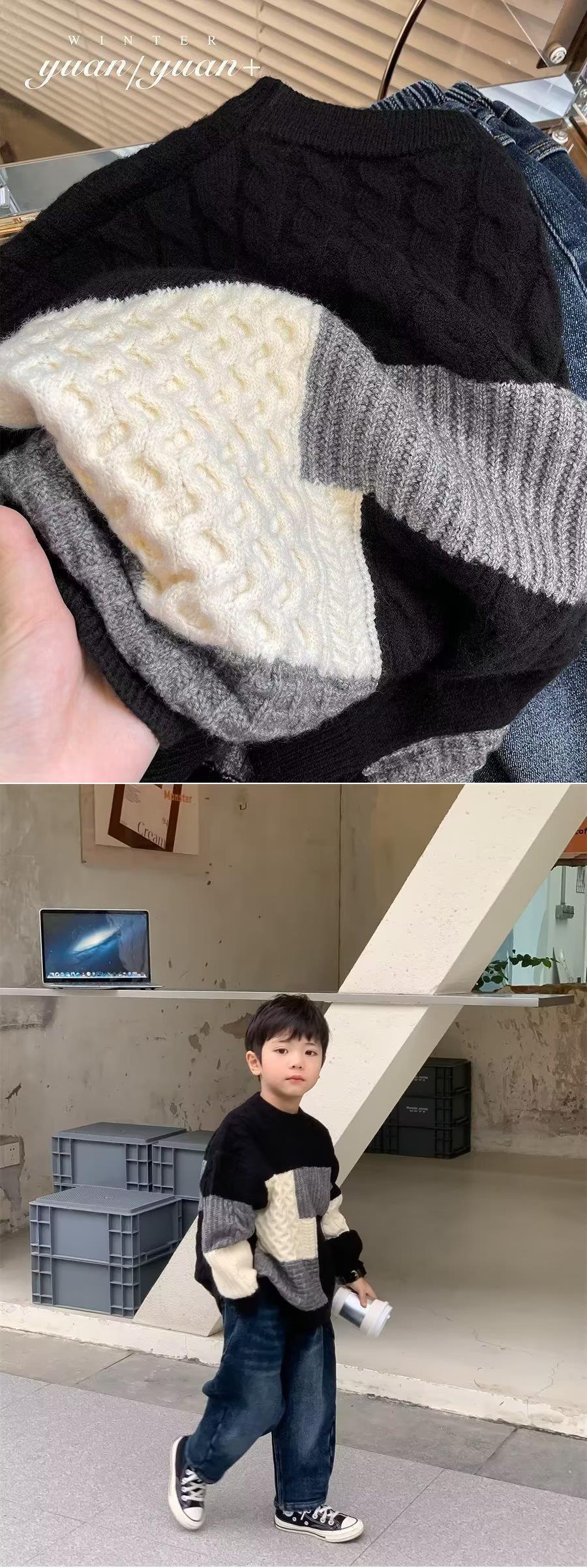 가을과 겨울 소년 스웨터 외국식 큰 어린이 니트 셔츠 풀오버 크루 넥 컬러 매칭 쿨 핸섬 스트리트 패션 탑스토어 가기