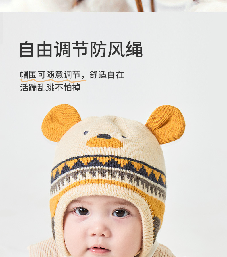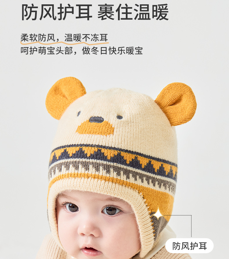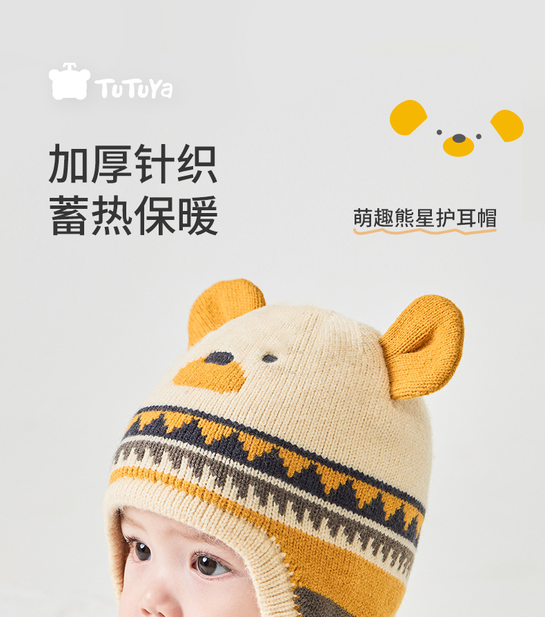 Tutuya 아기 모자 가을과 겨울 소년 소년의 보물 귀 보호 모자 아기 겨울 소녀 어린이 니트 양모 모자스토어 가기