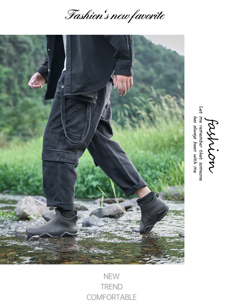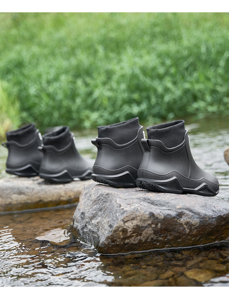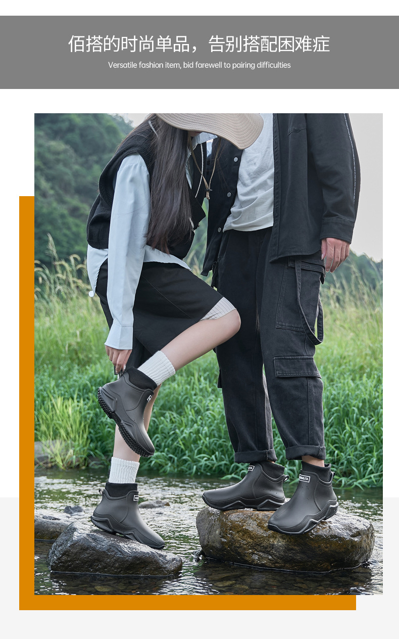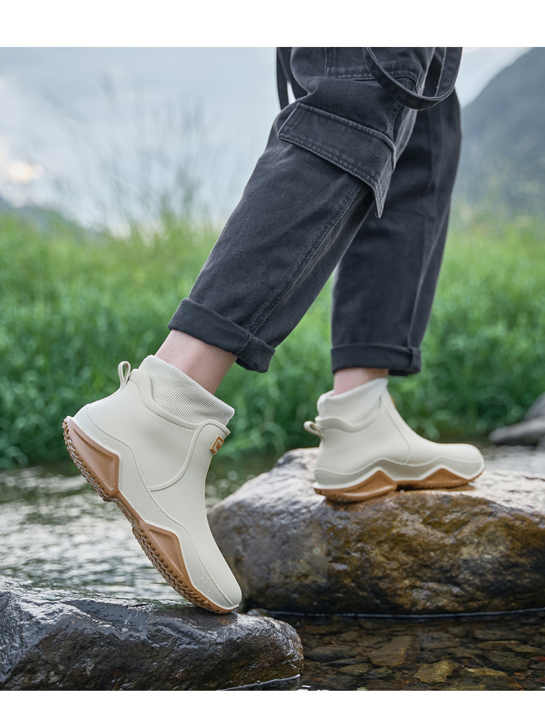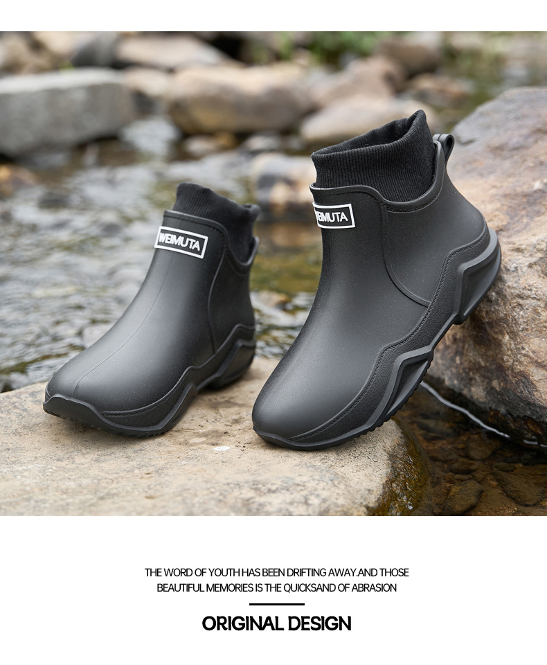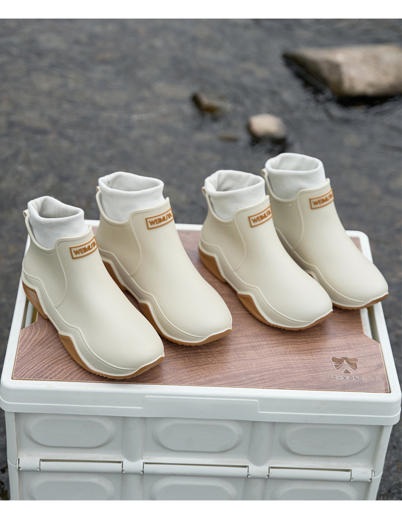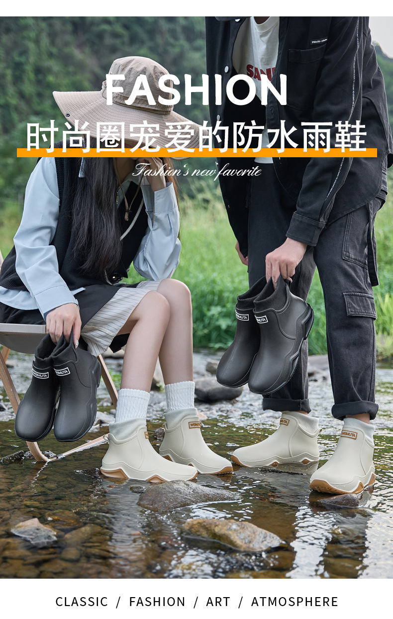 패션 쇼트 튜브 커플의 원피스 코튼 레인 부츠 가을 및 겨울 착용 장화 방수 신발 미끄럼 방지 낚시 작업 테이크 아웃 워터 부츠