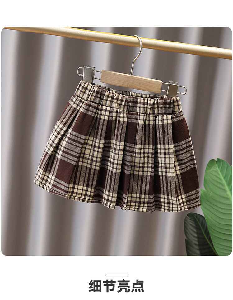 소녀의 치마 주름진 치마 2024 새로운 어린이 세련된 격자 무늬 올 매치 쇼트 스커트 소녀의 외침 스커트스토어 가기