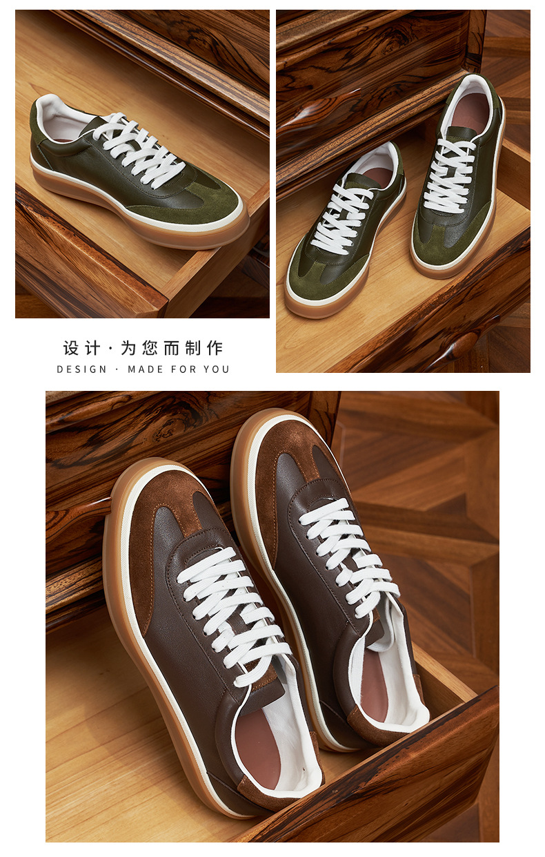 새로운 남성 독일 훈련 신발 가죽 레이스 업 컬러 매칭 플랫 화이트 신발 올매치 캐주얼 야외 스포츠 스니커즈 남성용