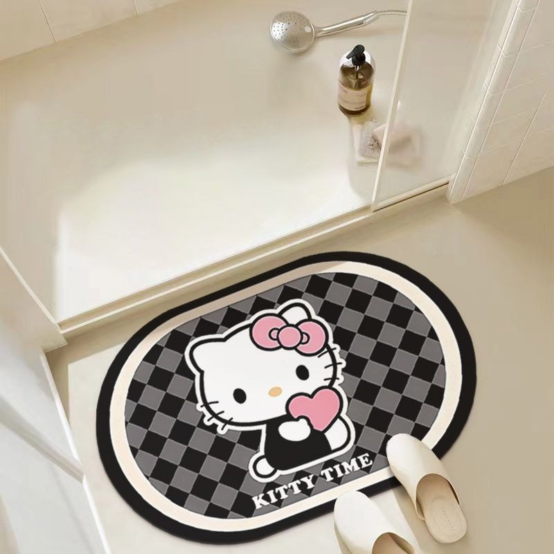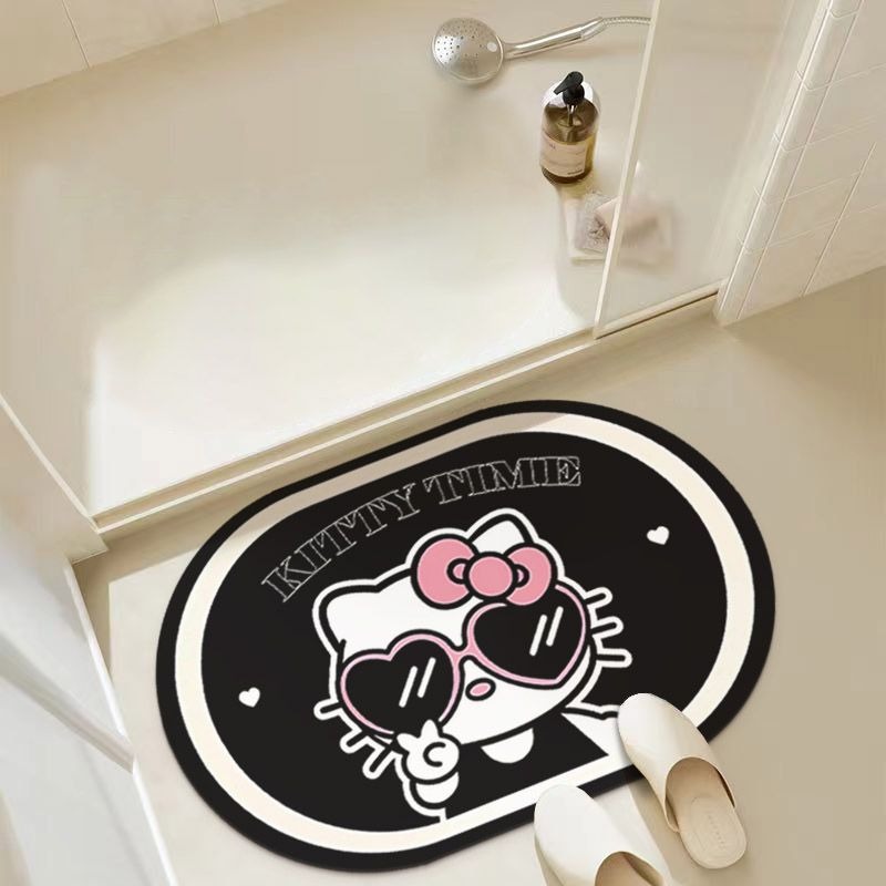 키티 고양이 디 아톰 머드 매트 욕실 안티 슬립 매트 솔리드 컬러 워시 분지 흡수 매트 욕실 격자 문 매트스토어 가기