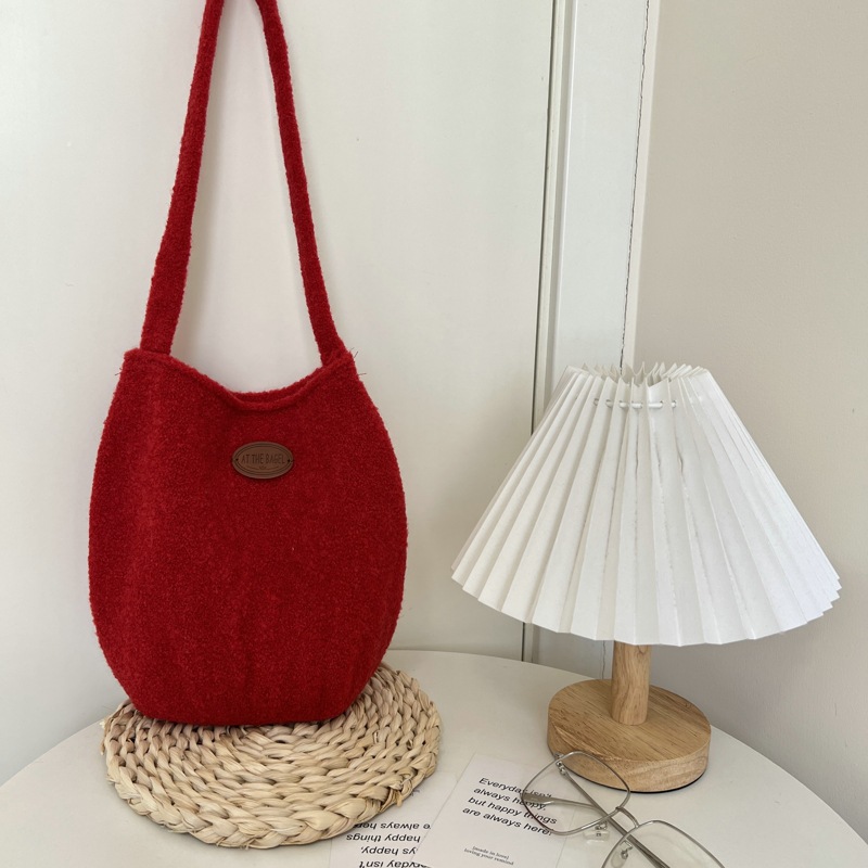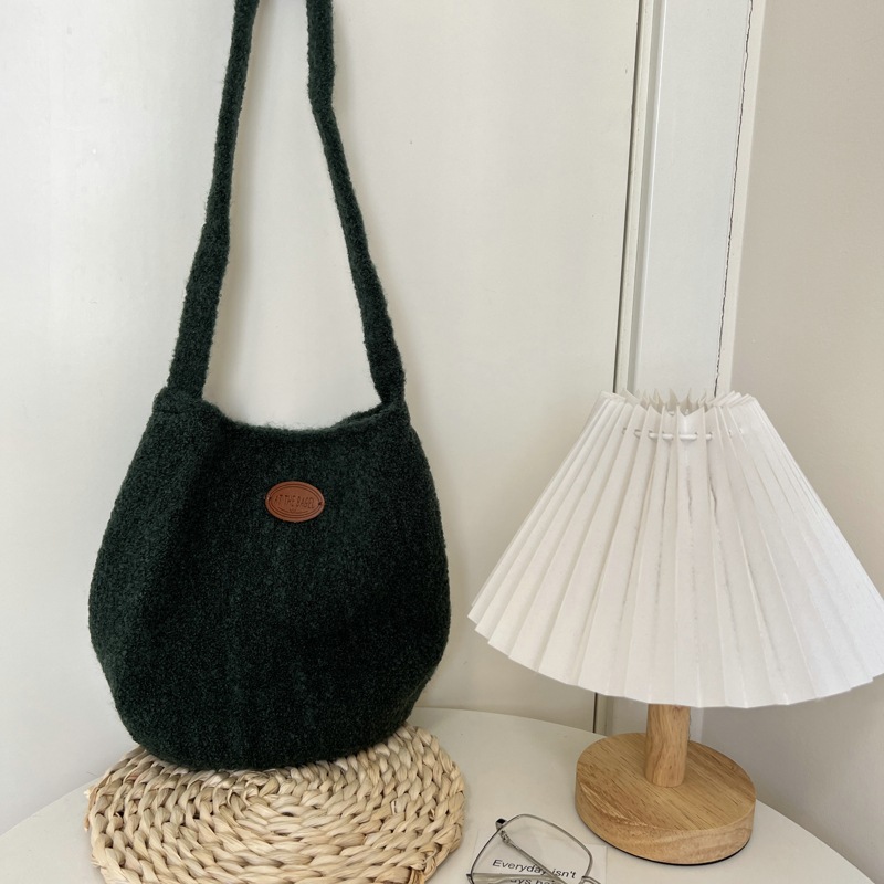 한국 소프트 왁스 스웨이드 버킷에는 양모 겨울 새로운 스타일의 푹신한 가방 빈티지 숄더 백 올 매치 백 Ins가 들어 있습니다.스토어 가기