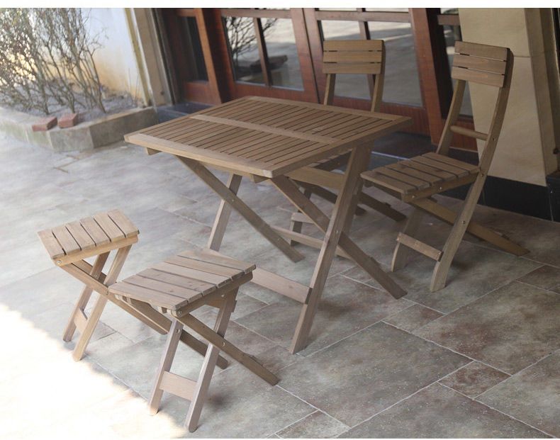 야외 안뜰 테이블과 의자 간단한 탈착식 목재 휴대용 야외 식탁 및 의자 조합 복고풍 접이식 테이블과 의자 캐주얼 테이블 및 의자스토어 가기