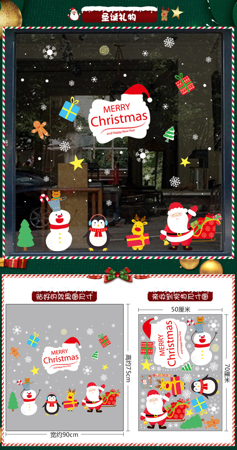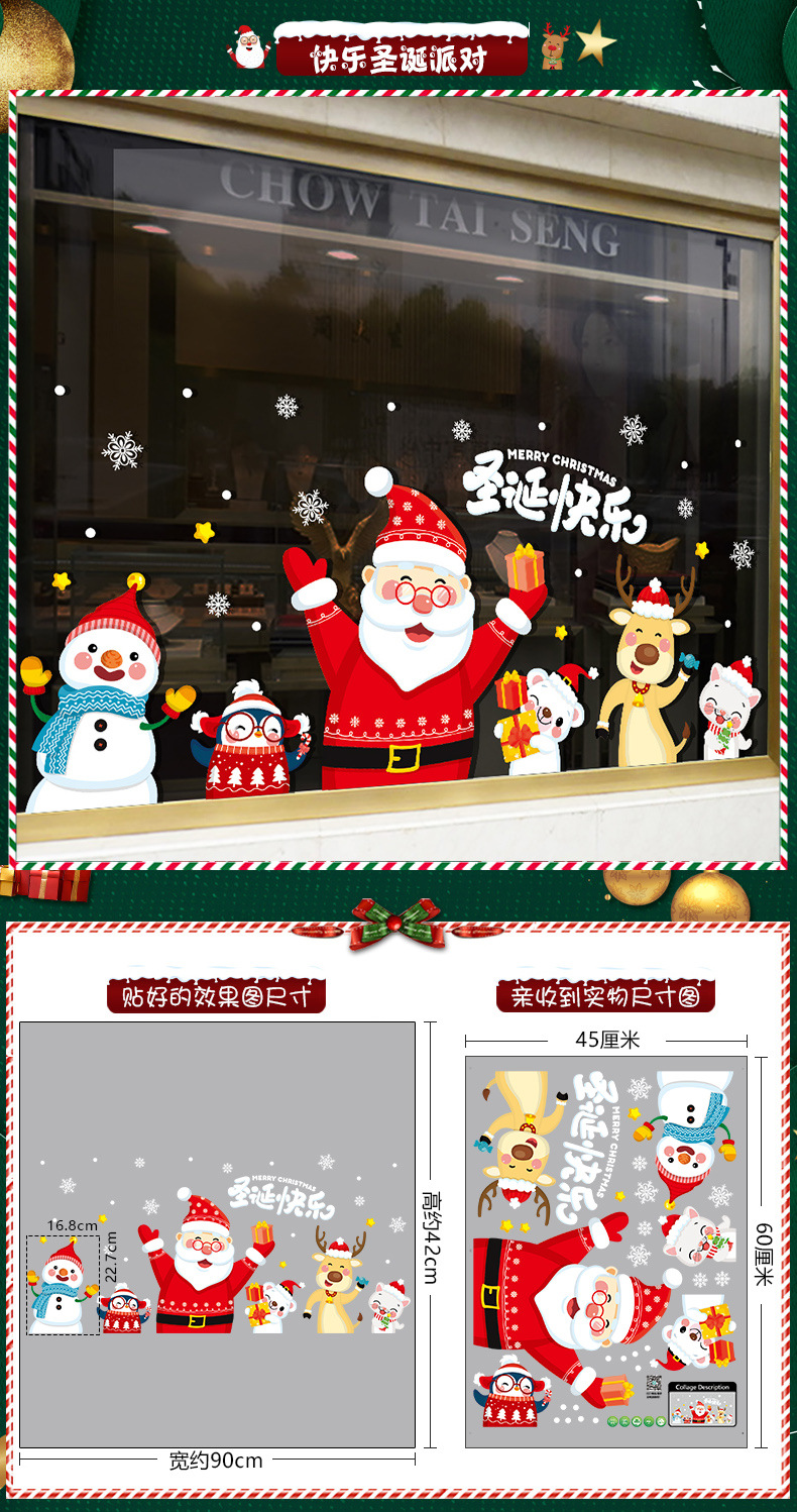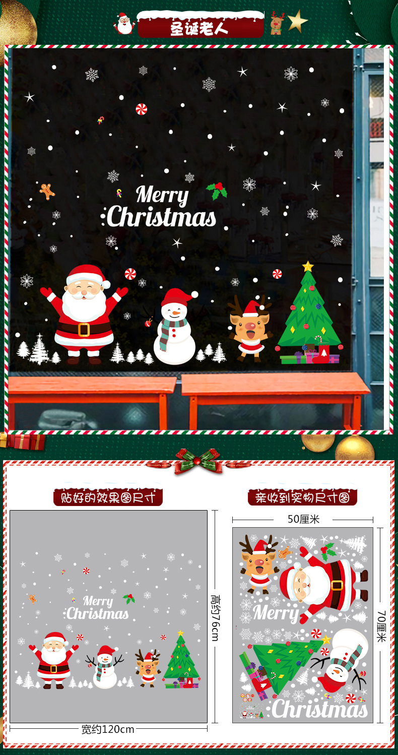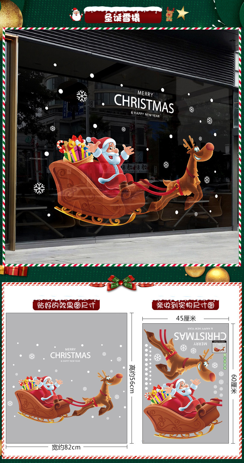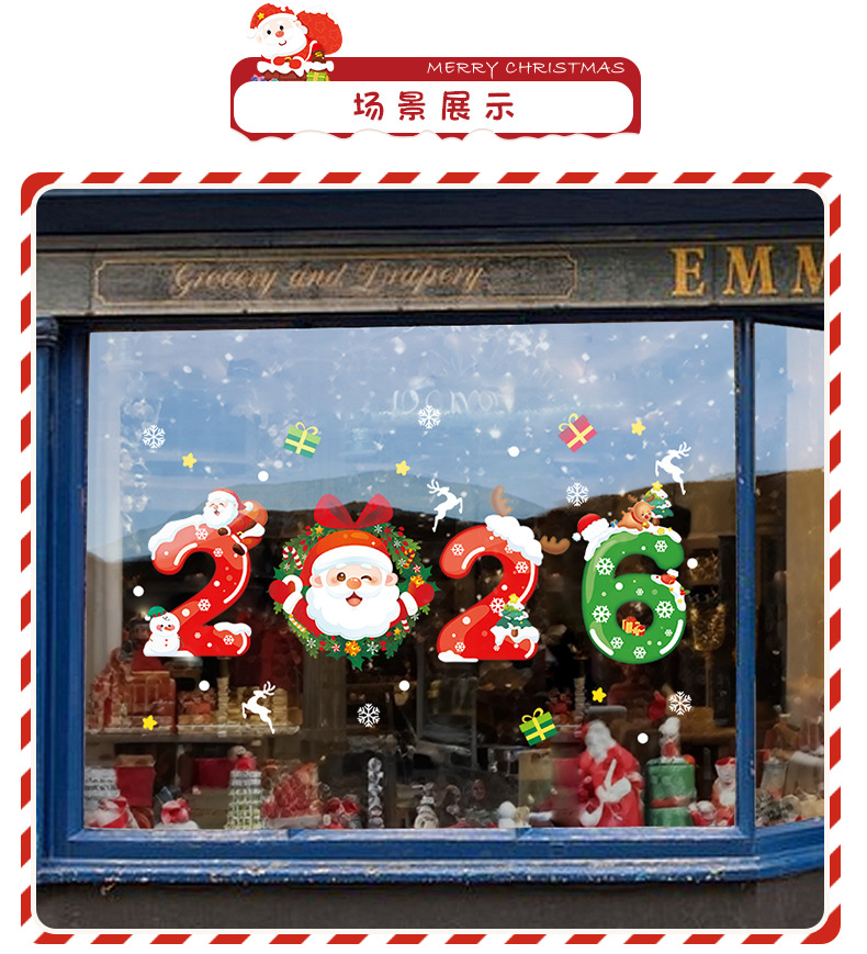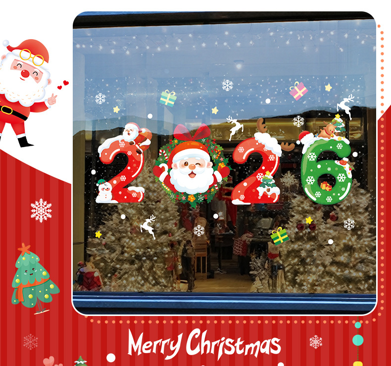 2026년 크리스마스 장식 정전기 스티커 창문 스티커 유리문 스티커 산타클로스 창문 스티커 장면 장식스토어 가기