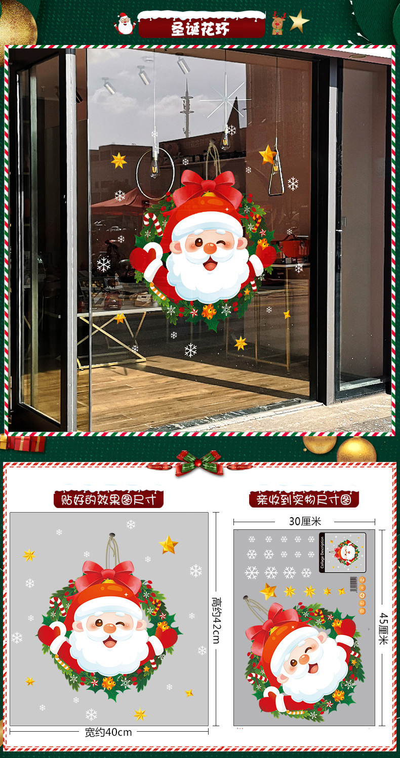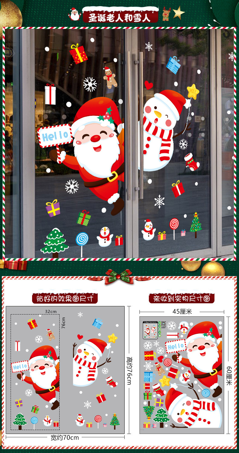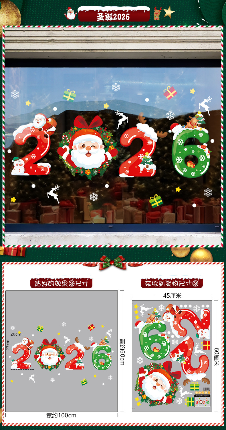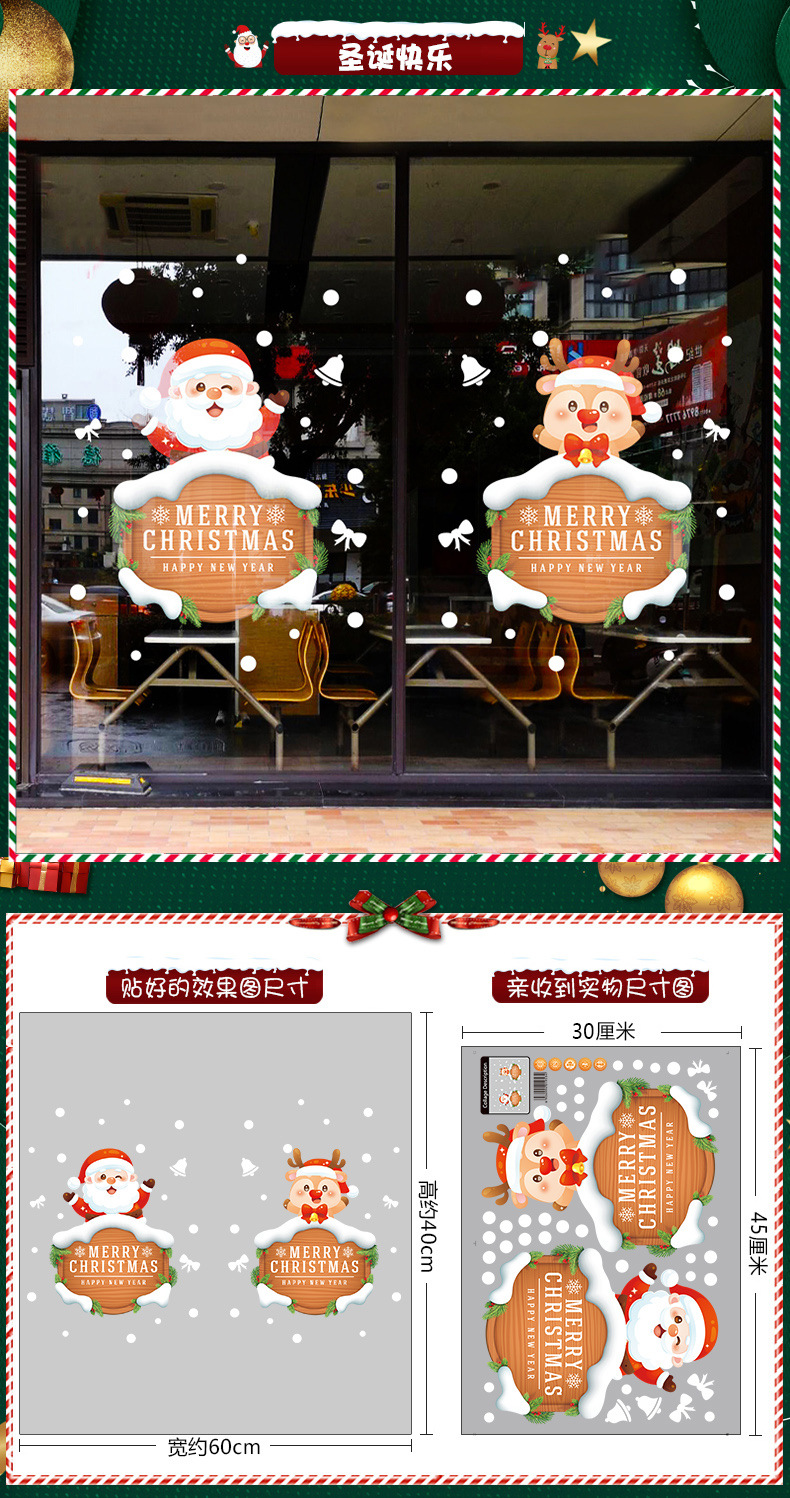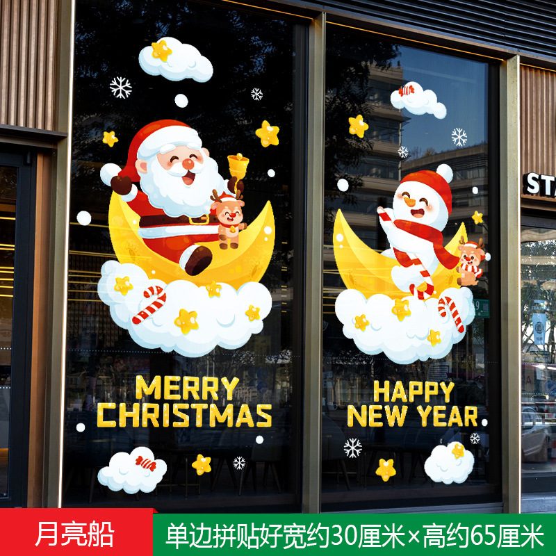 2026년 크리스마스 장식 정전기 스티커 창문 스티커 유리문 스티커 산타클로스 창문 스티커 장면 장식스토어 가기