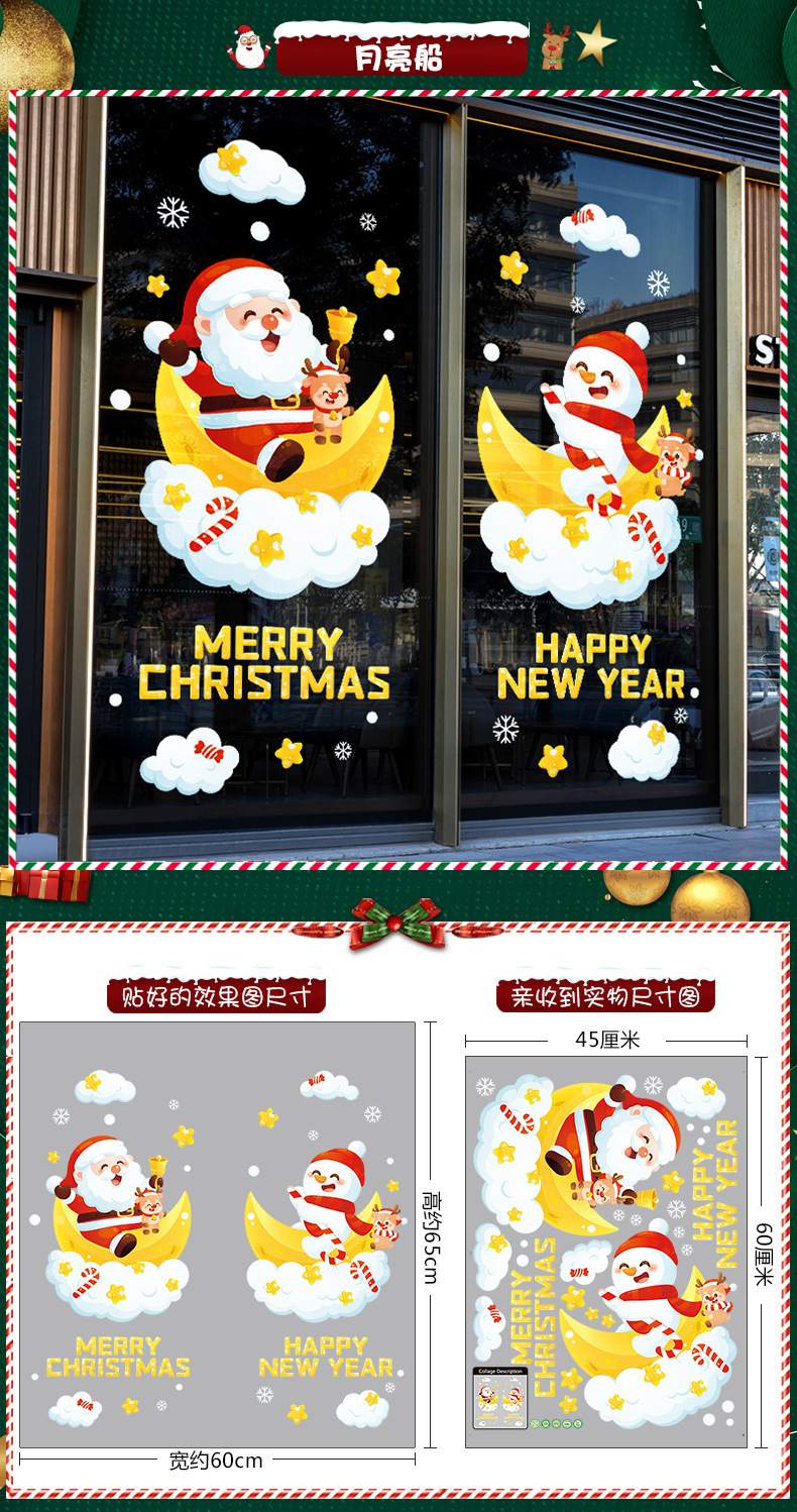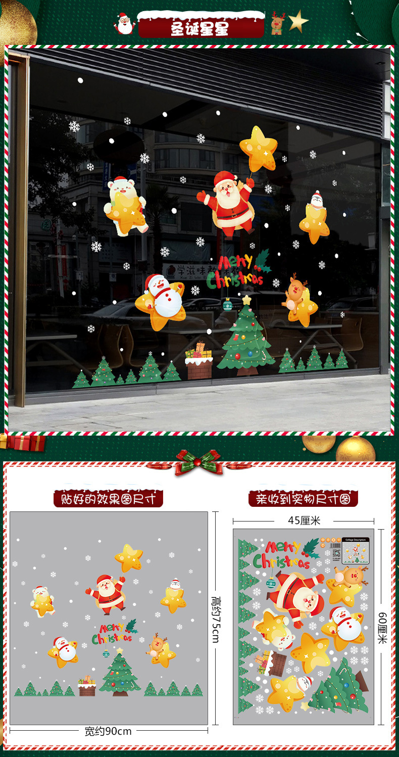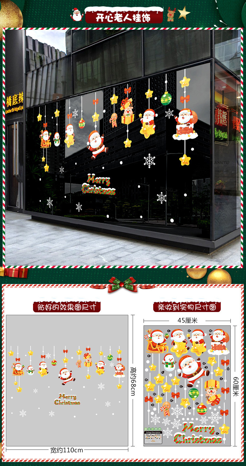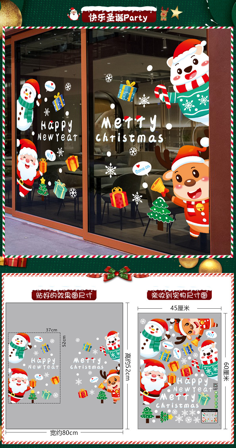 2026년 크리스마스 장식 정전기 스티커 창문 스티커 유리문 스티커 산타클로스 창문 스티커 장면 장식스토어 가기