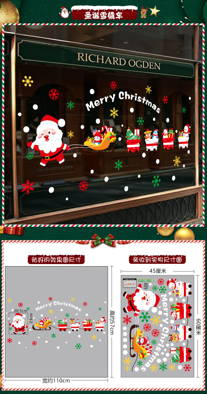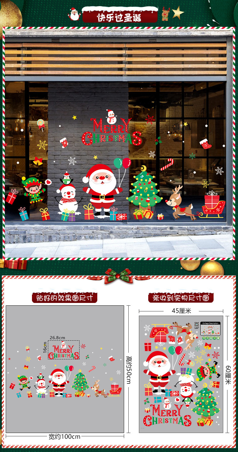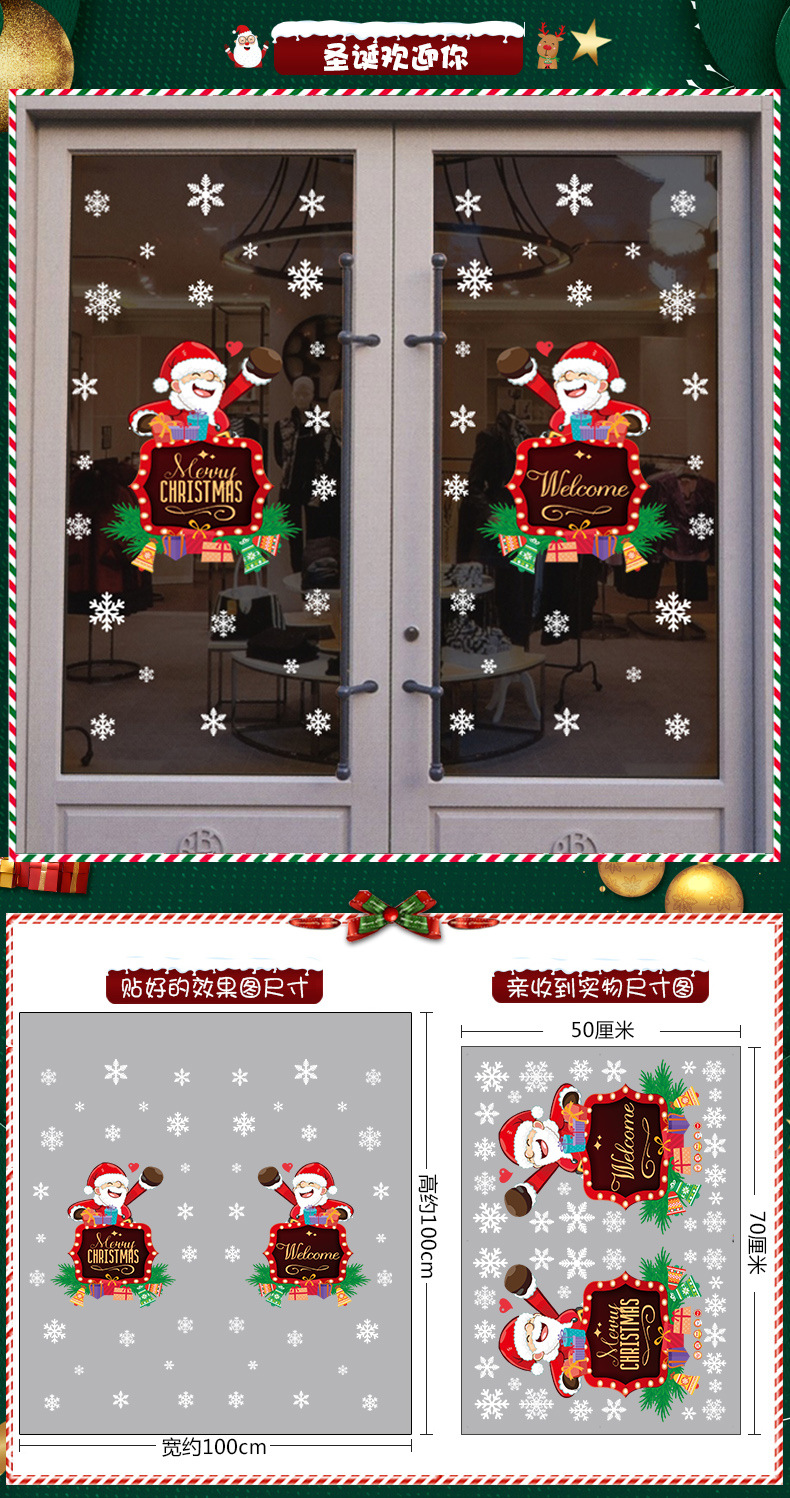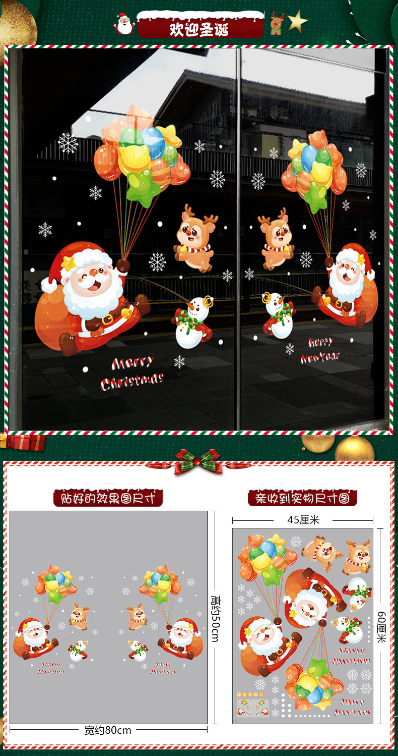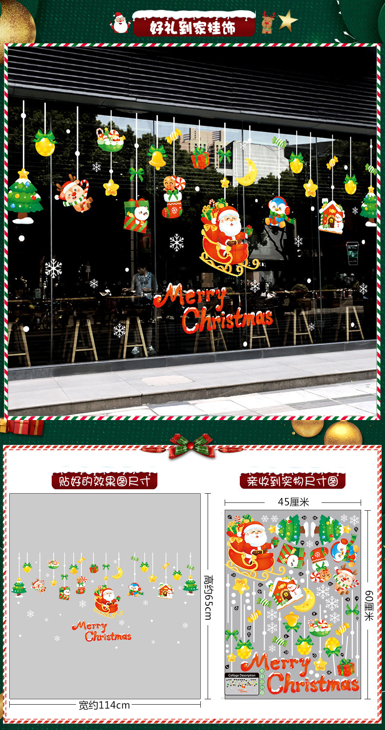 2026년 크리스마스 장식 정전기 스티커 창문 스티커 유리문 스티커 산타클로스 창문 스티커 장면 장식스토어 가기