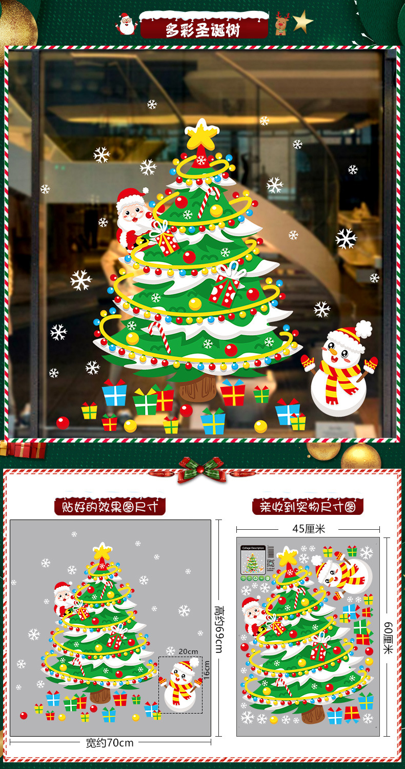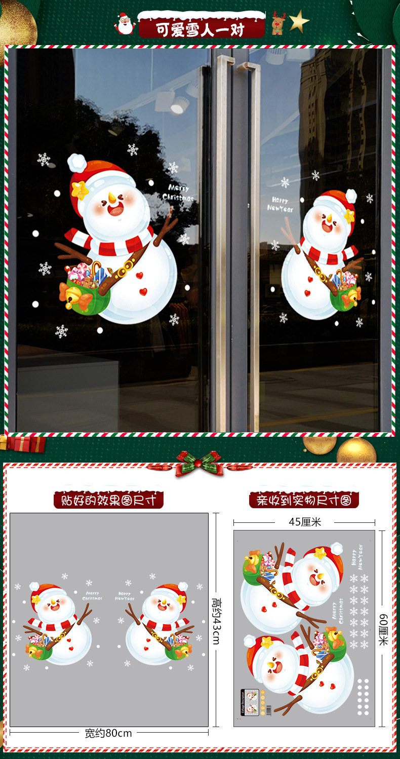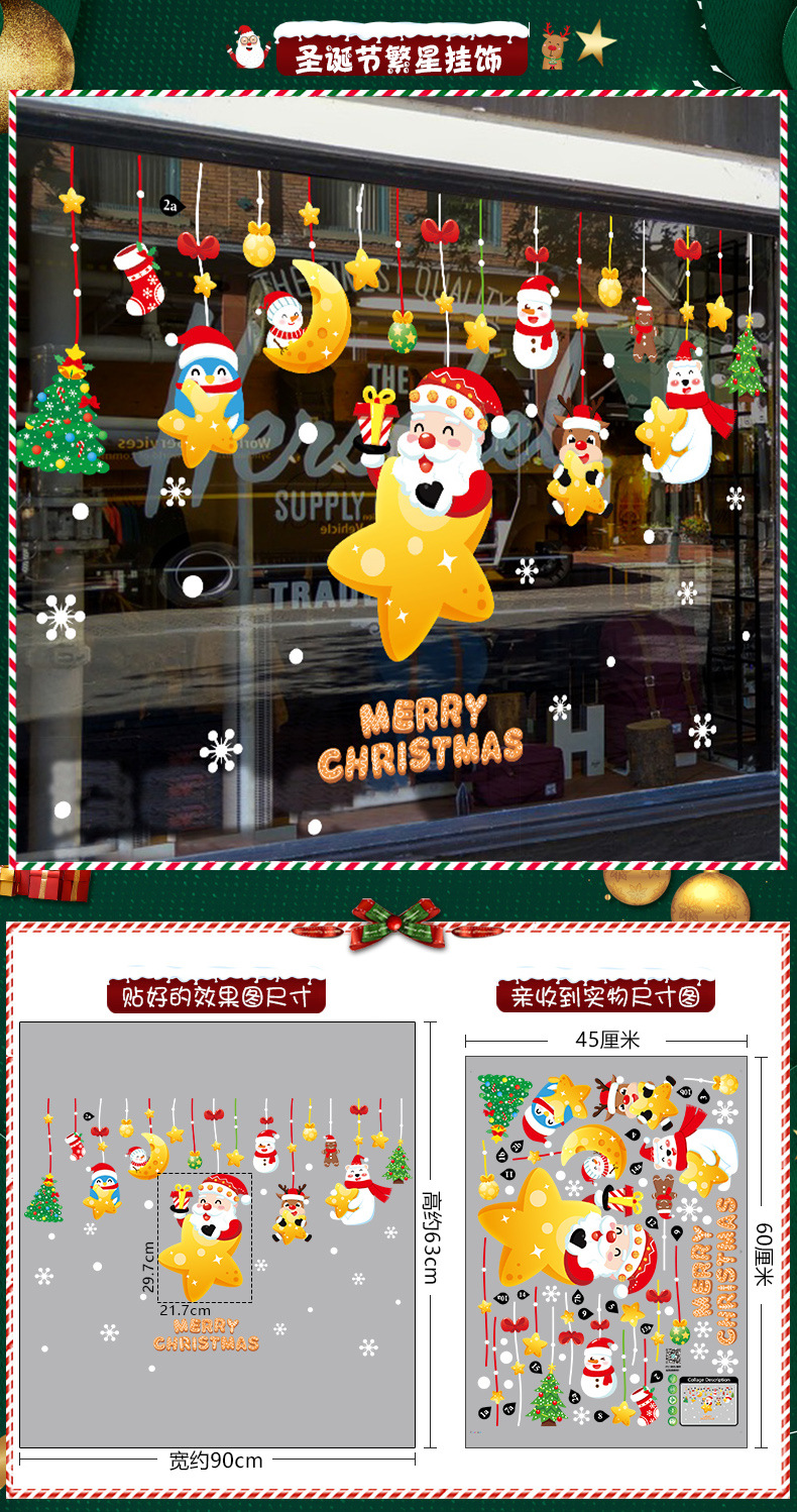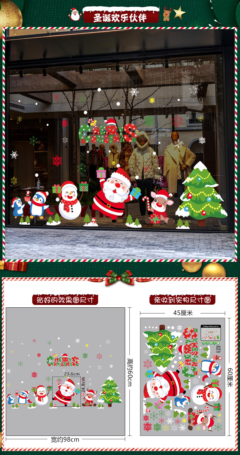 2026년 크리스마스 장식 정전기 스티커 창문 스티커 유리문 스티커 산타클로스 창문 스티커 장면 장식스토어 가기
