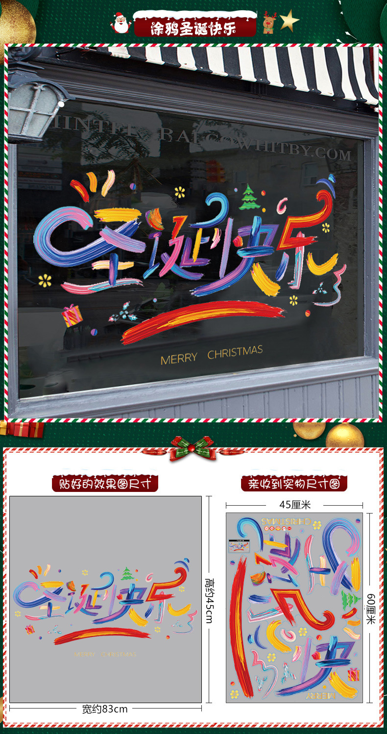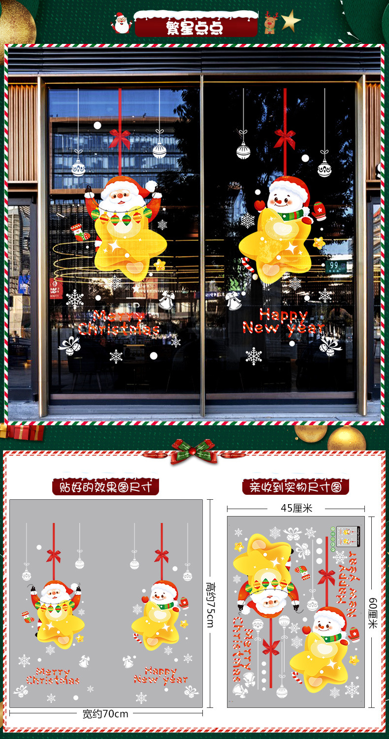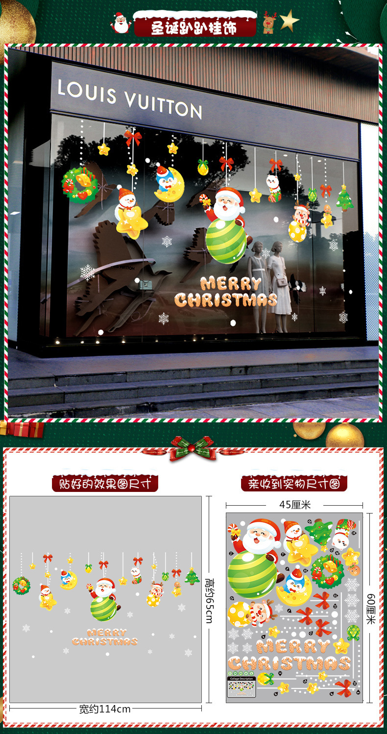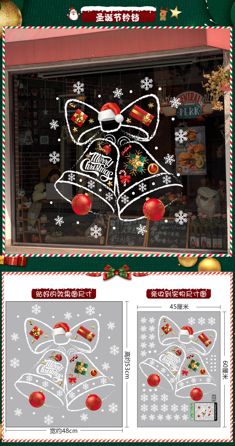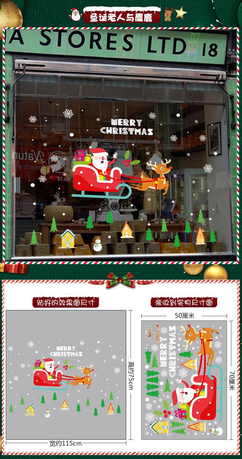 2026년 크리스마스 장식 정전기 스티커 창문 스티커 유리문 스티커 산타클로스 창문 스티커 장면 장식스토어 가기