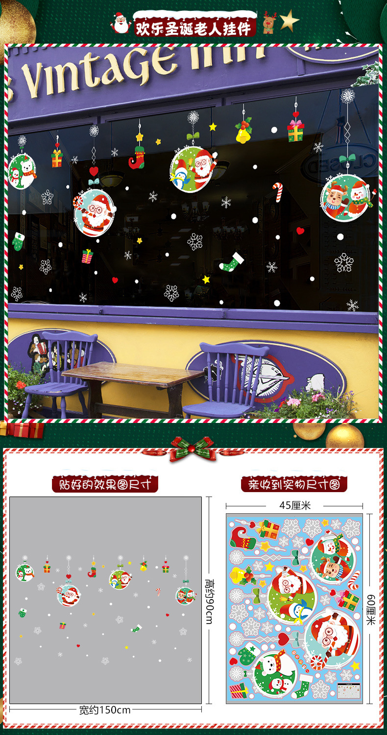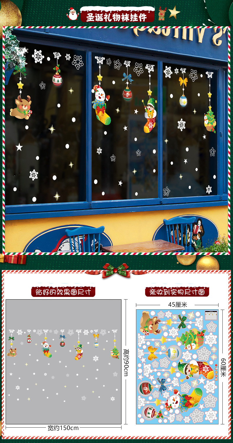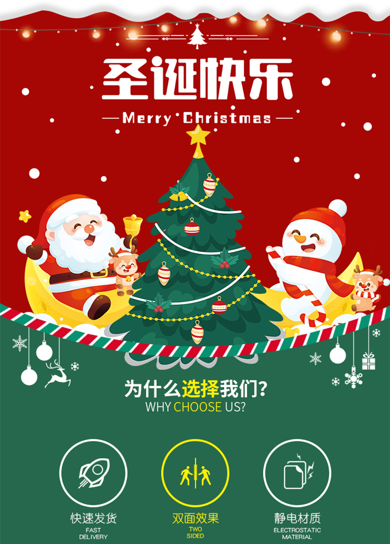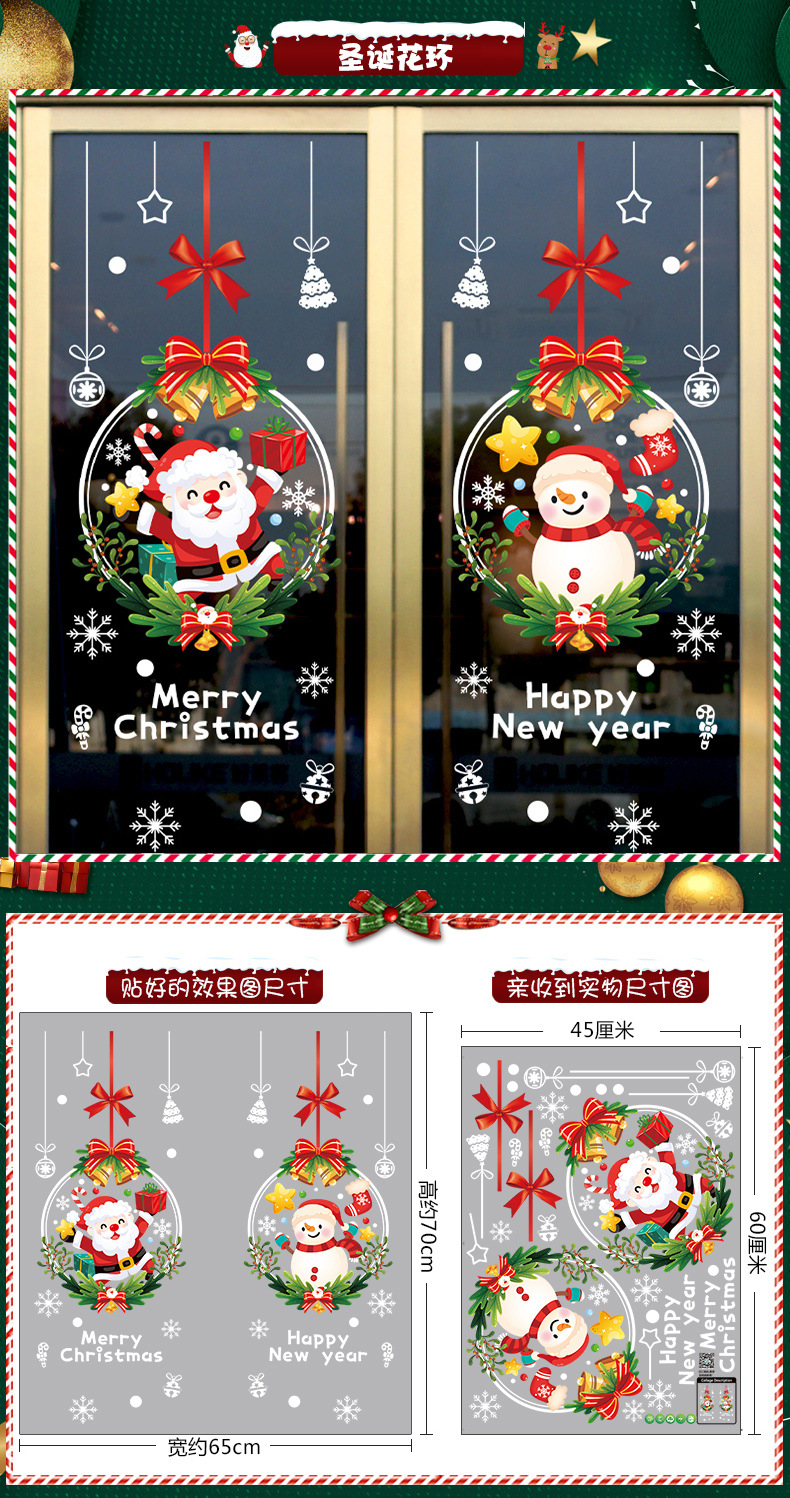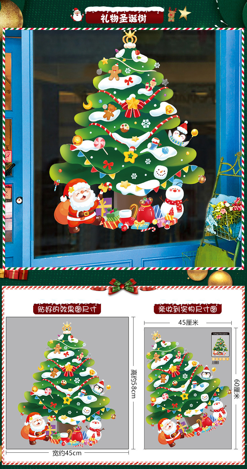 2026년 크리스마스 장식 정전기 스티커 창문 스티커 유리문 스티커 산타클로스 창문 스티커 장면 장식