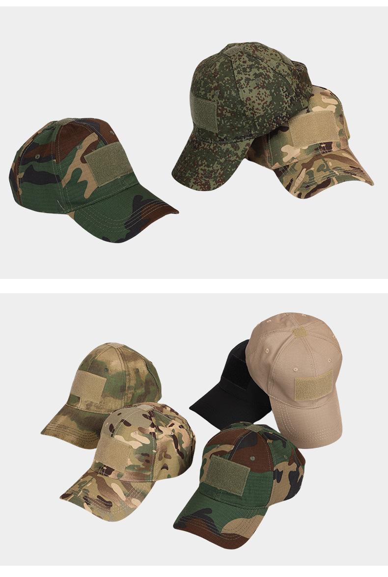 공장 스트레이트 헤어 야외 위장 야구 모자 남자와 여자의 전술 모자 벨크로 모자 조정 가능