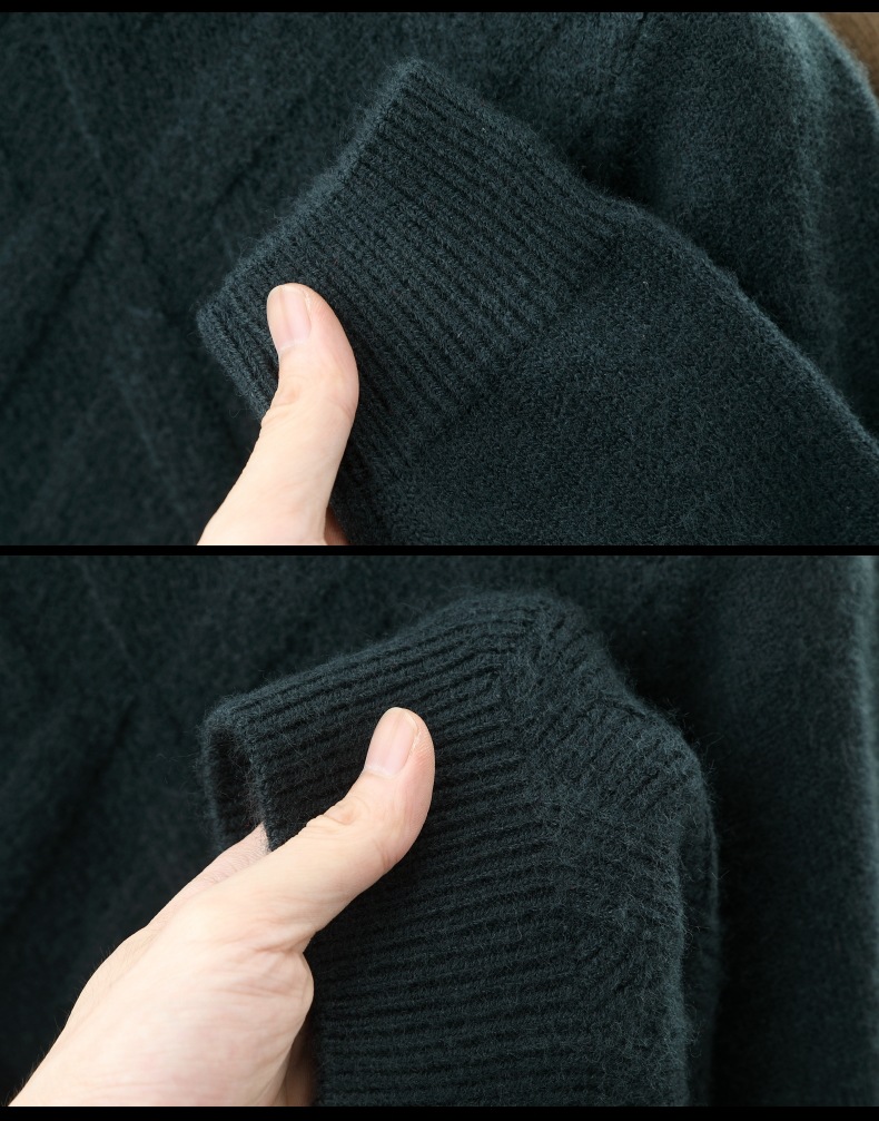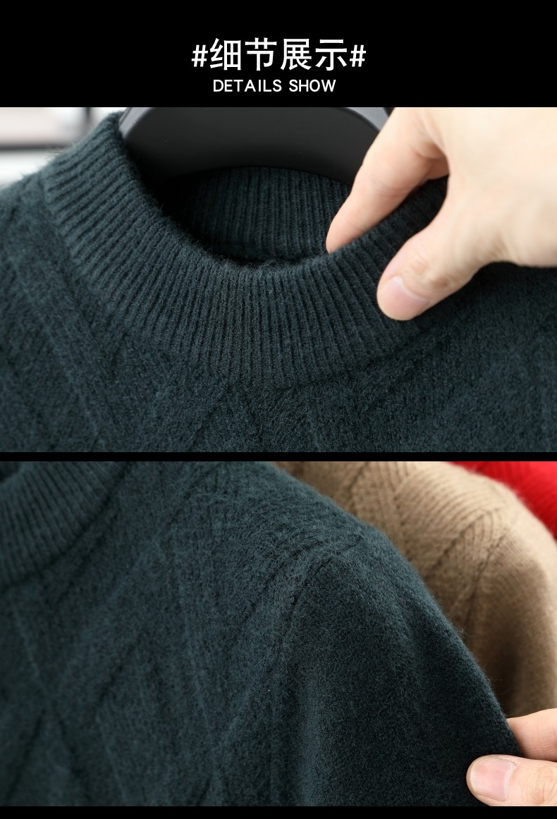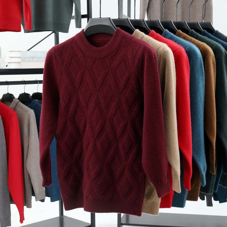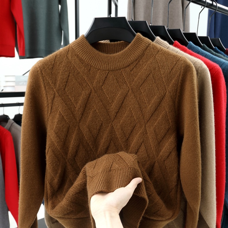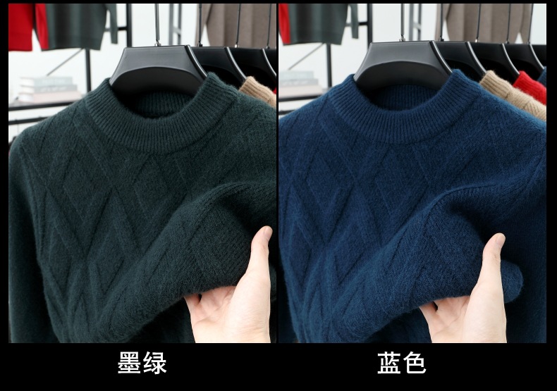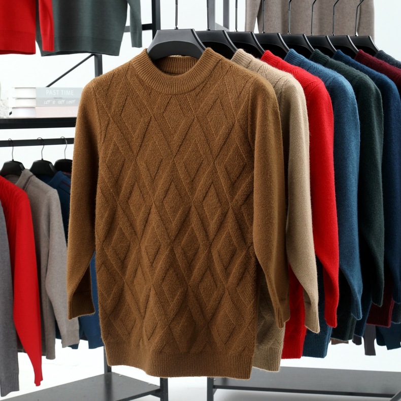 남자 가을과 겨울 하이 엔드 하프 터틀넥 울 다이아몬드 격자 자카드 니트 스웨터 젊은 중년 두꺼운 올 매치 스웨터스토어 가기