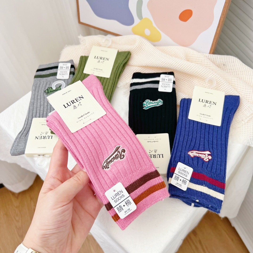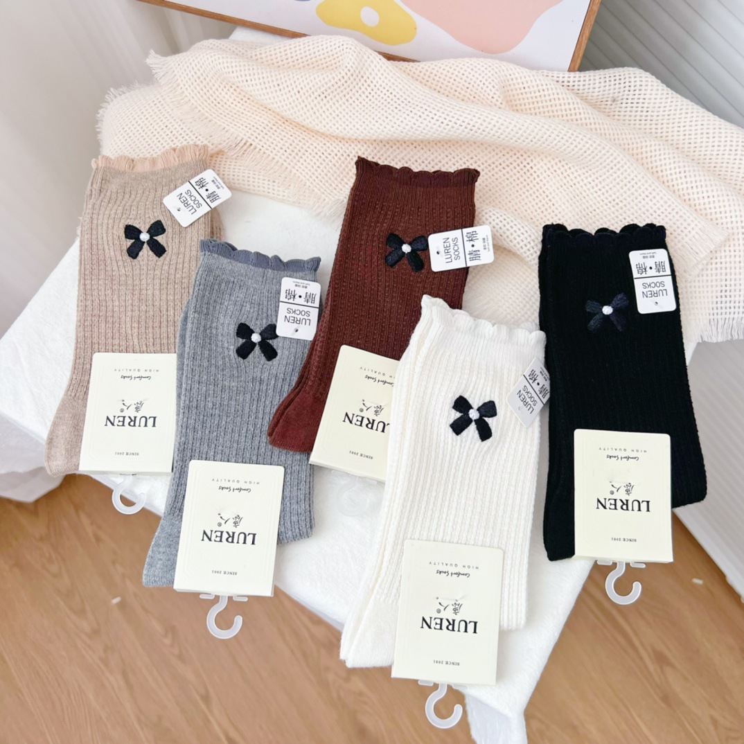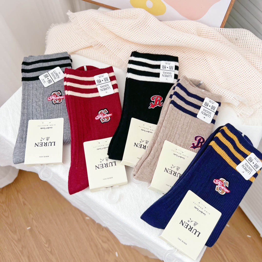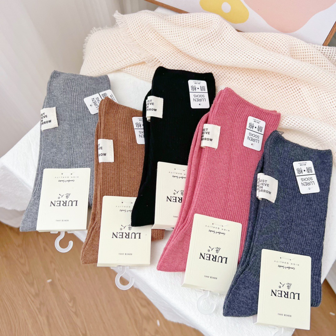 Deerslayer 6527 여자 양말 가을과 겨울 새로운 한국 스태킹 양말 미드 튜브 면 양말 조인트 뼈없는 땀 흡수 조수