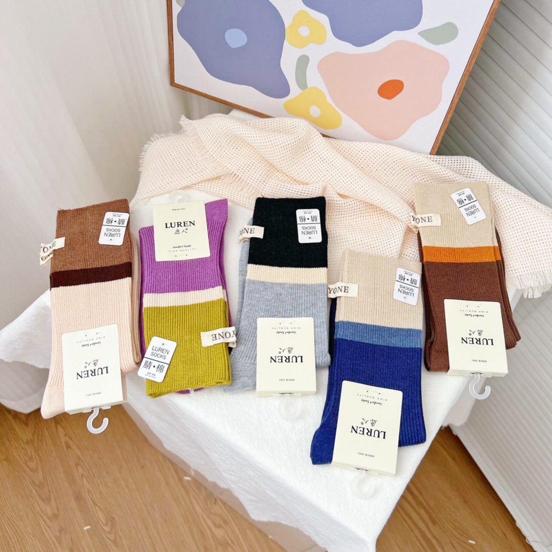 Deerslayer 6527 여자 양말 가을과 겨울 새로운 한국 스태킹 양말 미드 튜브 면 양말 조인트 뼈없는 땀 흡수 조수스토어 가기