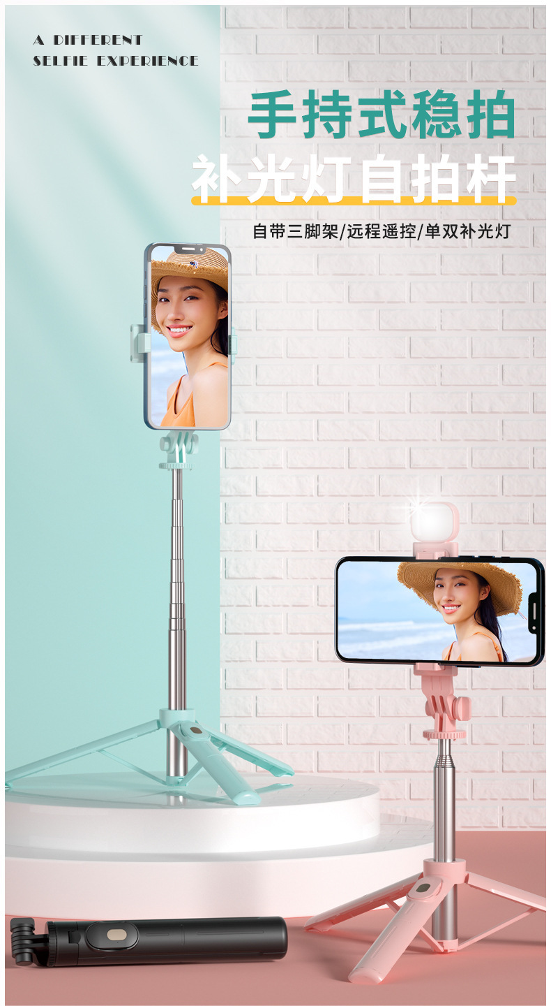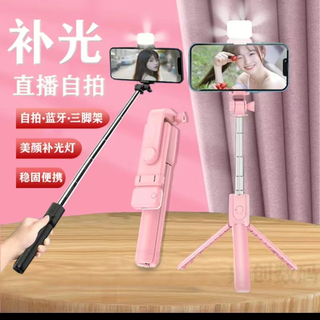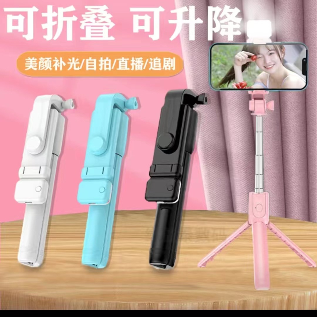 공장 직접 휴대 전화 블루투스 셀카 스틱 삼각대 빛 채우기 라이트 셀카 스틱 미니 휴대용 휴대용 카메라 아티팩트스토어 가기