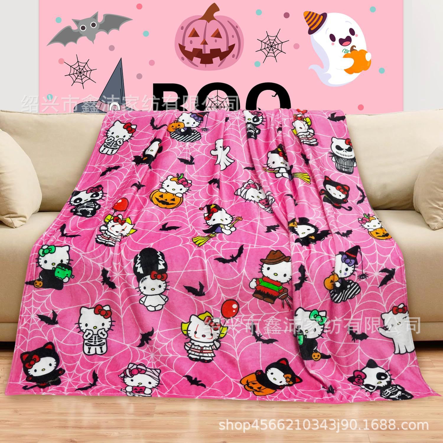 국경 간 뜨거운 판매 플란넬 디지털 인쇄 만화 담요 에어컨 점심 식사 담요 KT 고양이 산리오 할로윈 담요
