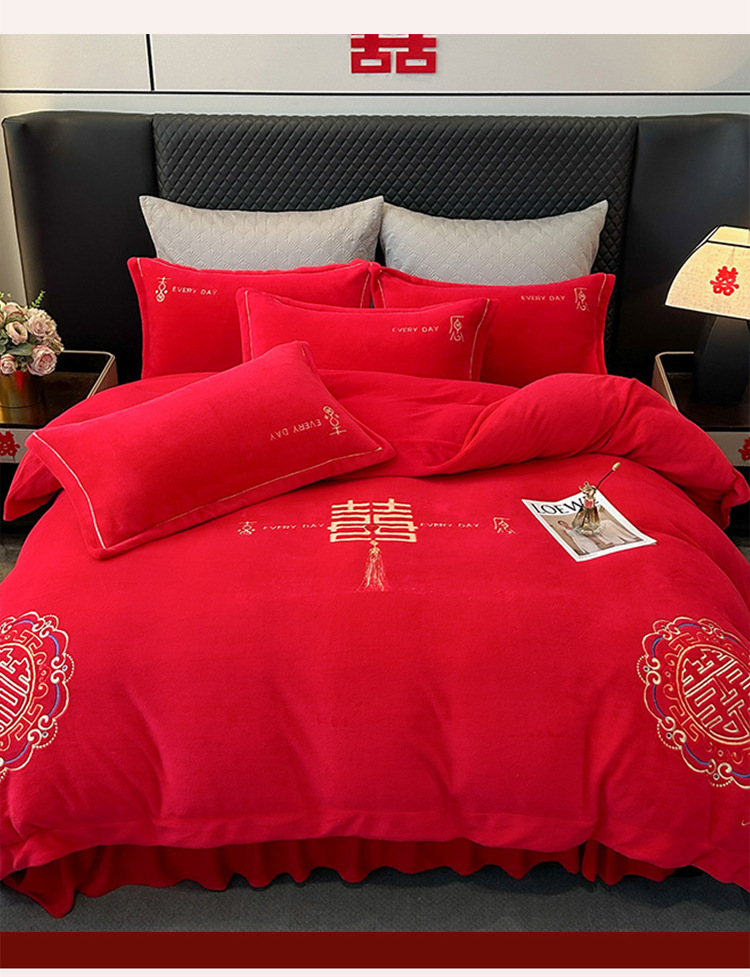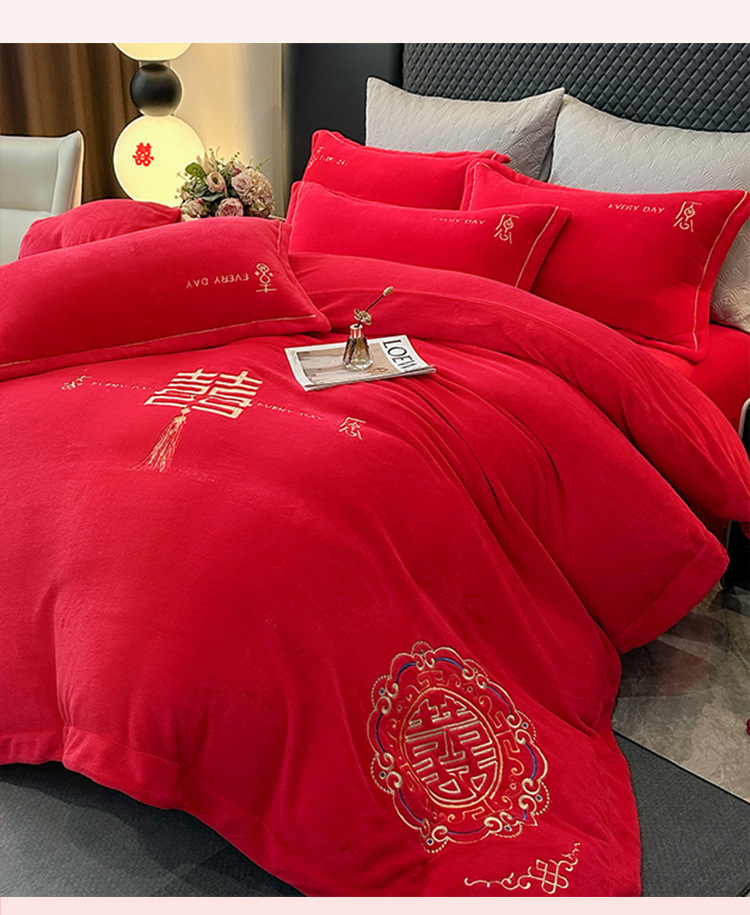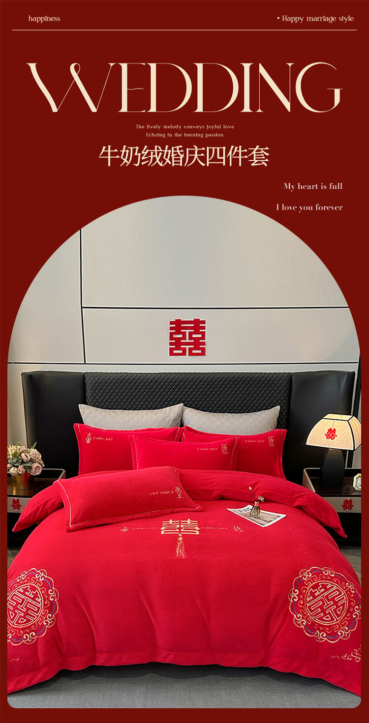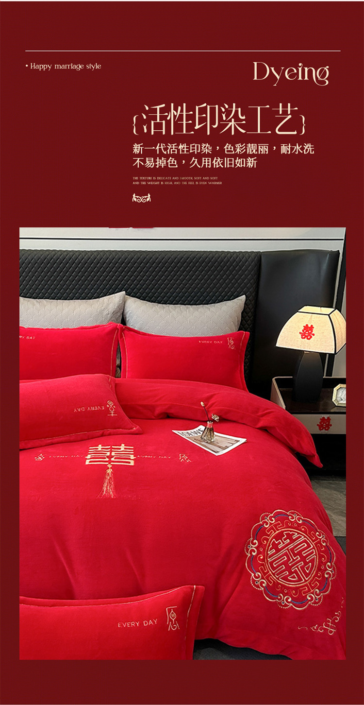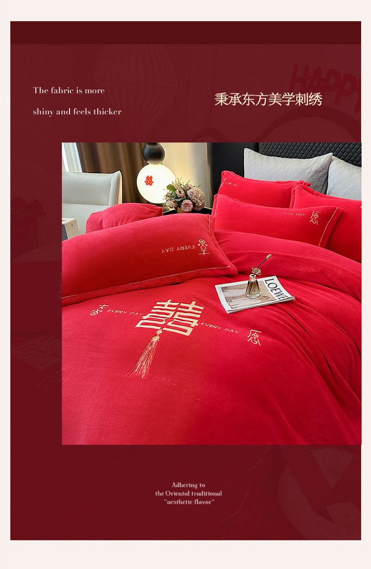 2024 가을과 겨울 새로운 높은 무게 9kg 완전 멸종 우유 벨벳 레드 웨딩 세트