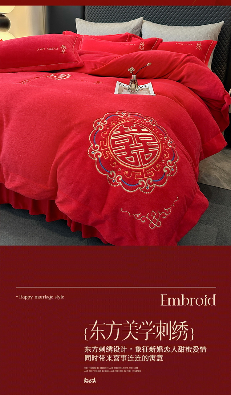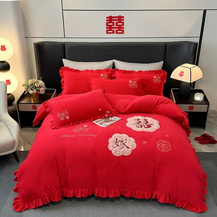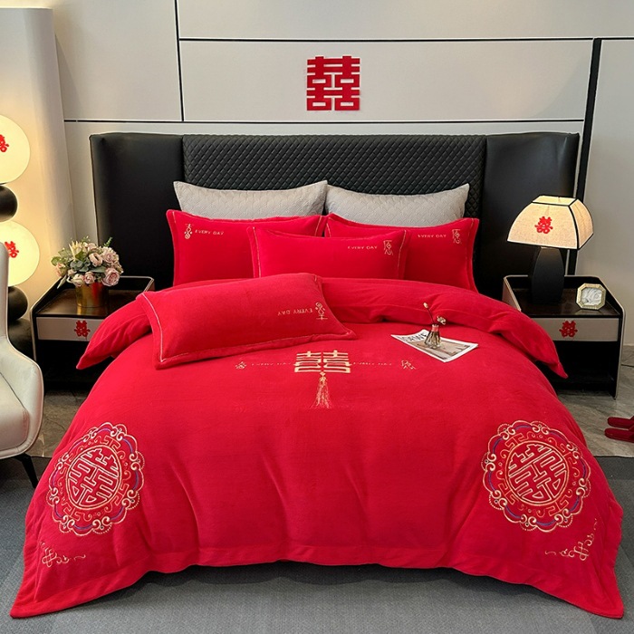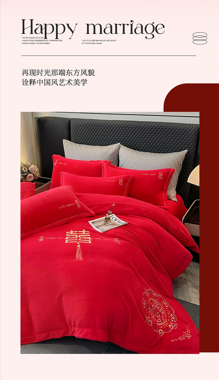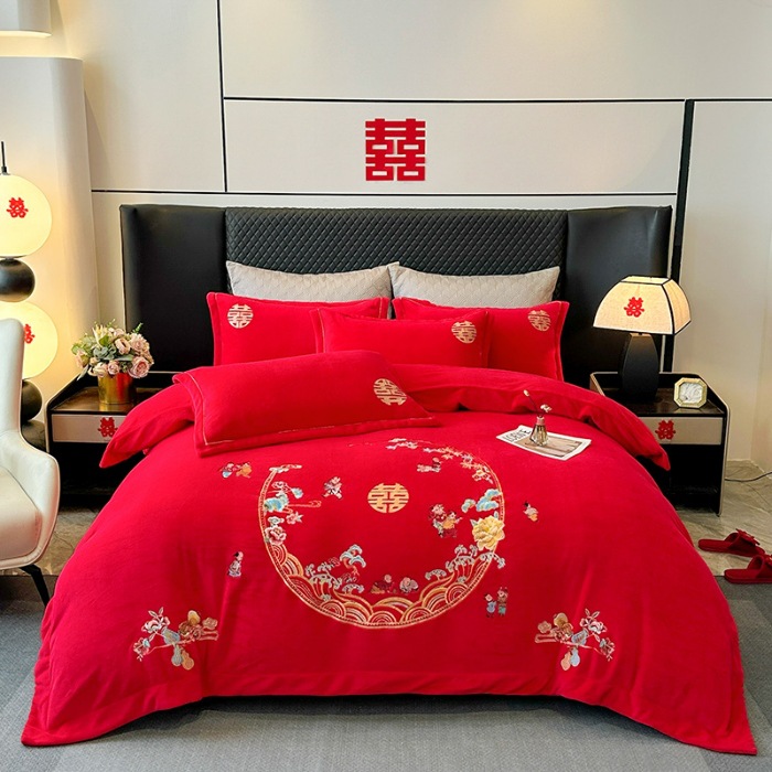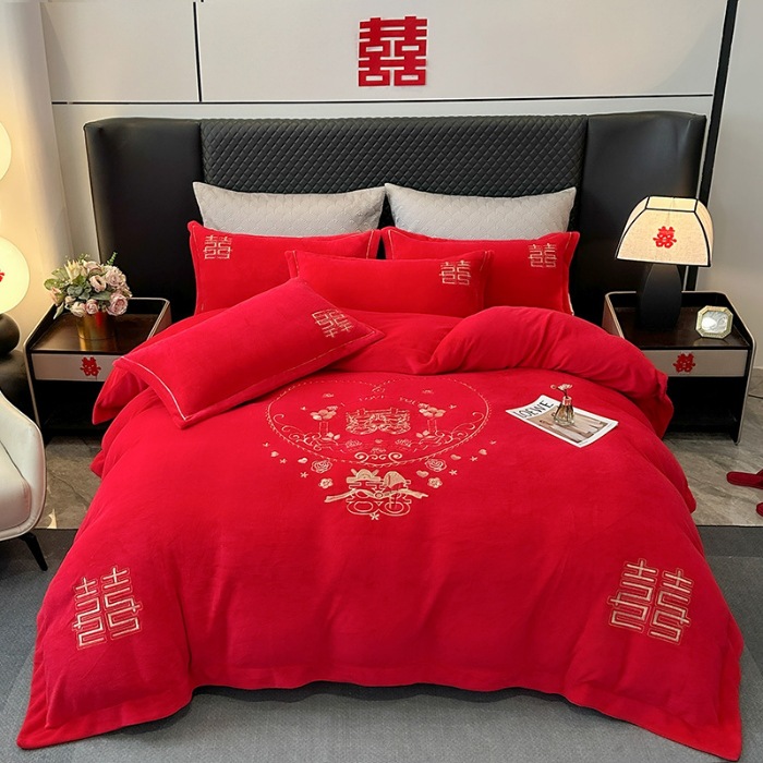 2024 가을과 겨울 새로운 높은 무게 9kg 완전 멸종 우유 벨벳 레드 웨딩 세트
