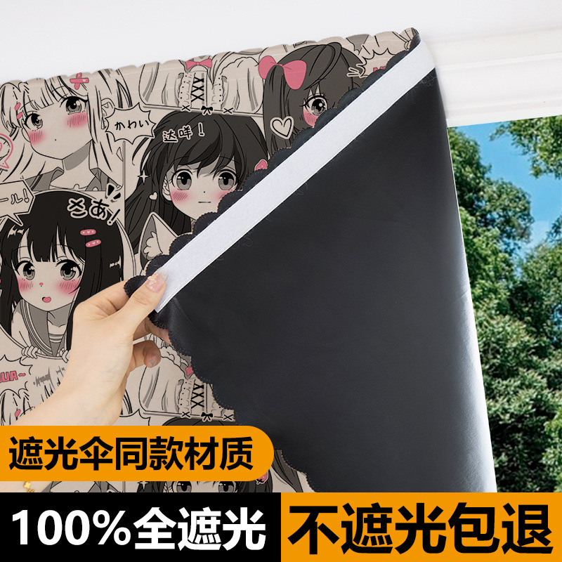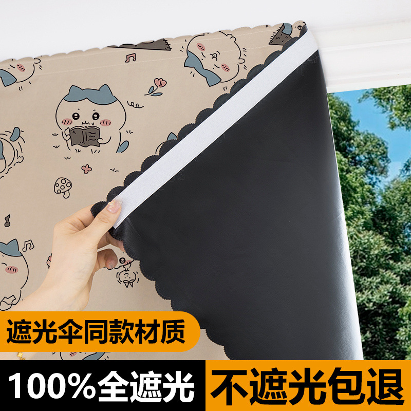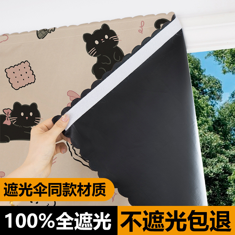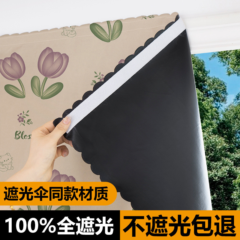 렌탈 하우스 커튼 100% 전체 음영 침실 베이 창 펀치 무료 설치 벨크로 접착 간단한 음영 커튼