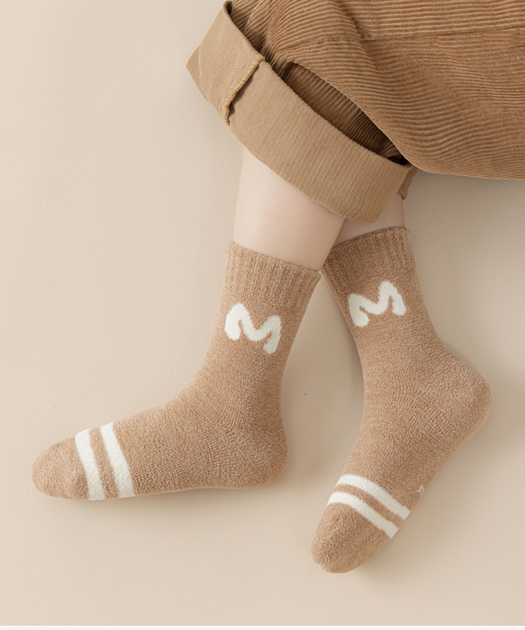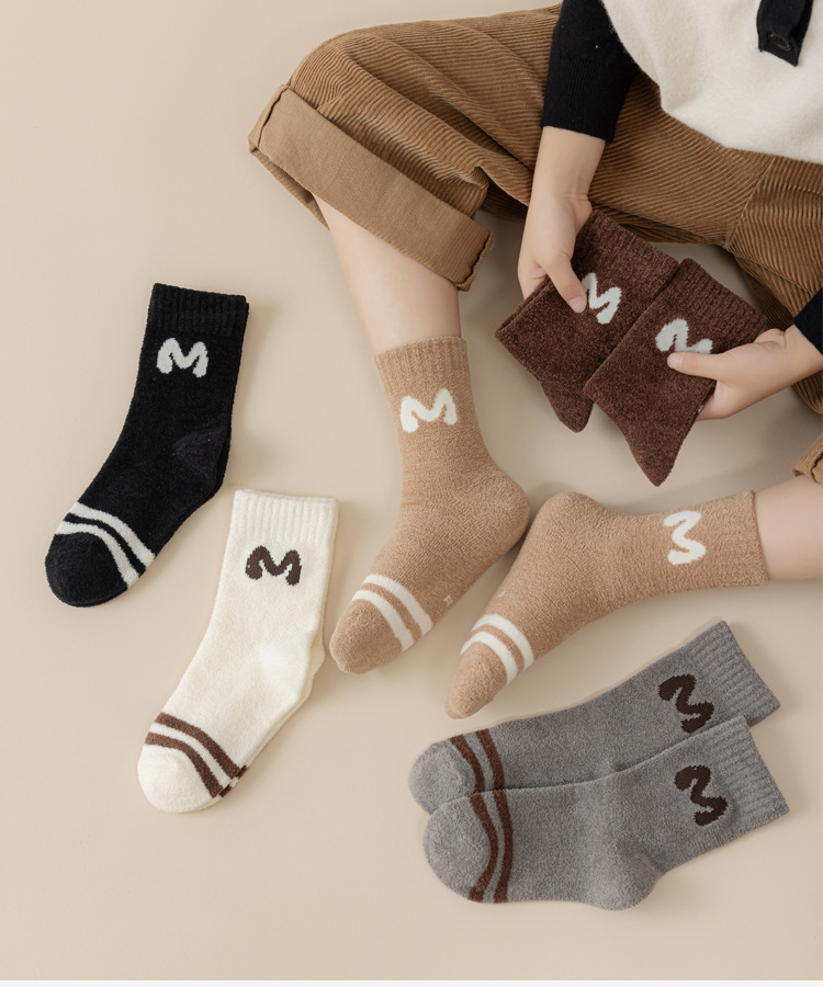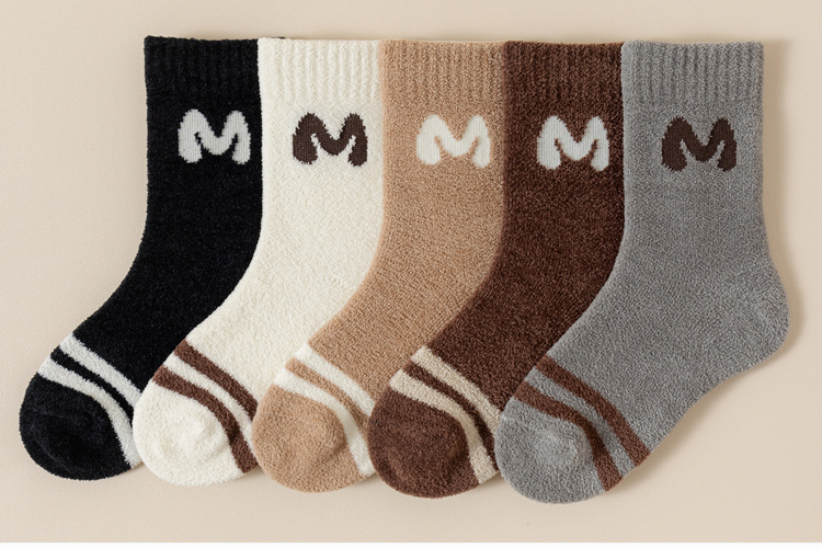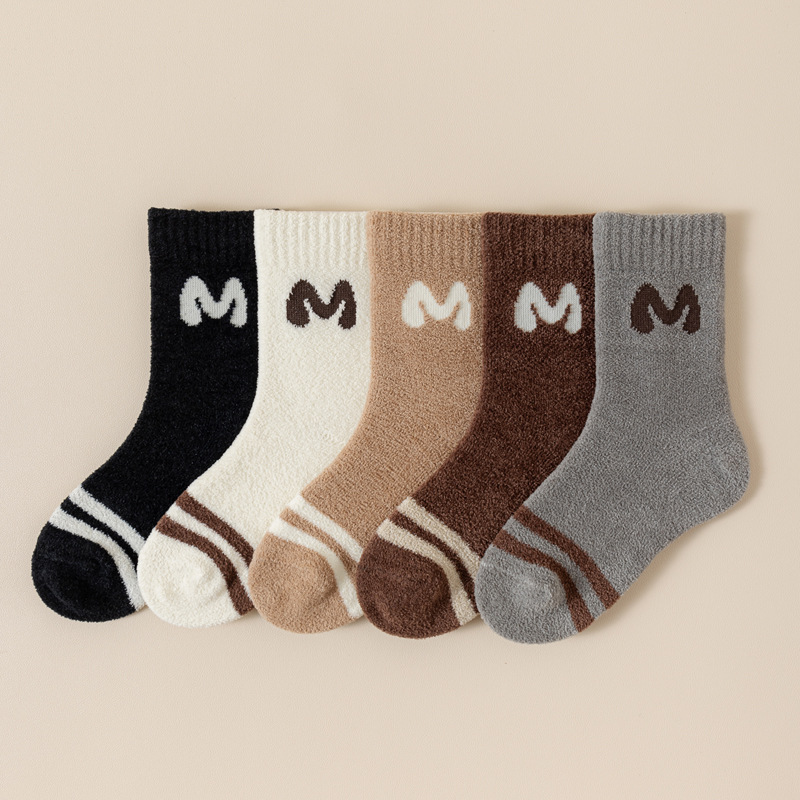 두꺼운 아동용 양말, 벨벳 안감, 남아용 산호색 겨울 보온 중목 양말, 유아 수면 양말, 초등학생용 테리 양말, 남아용스토어 가기