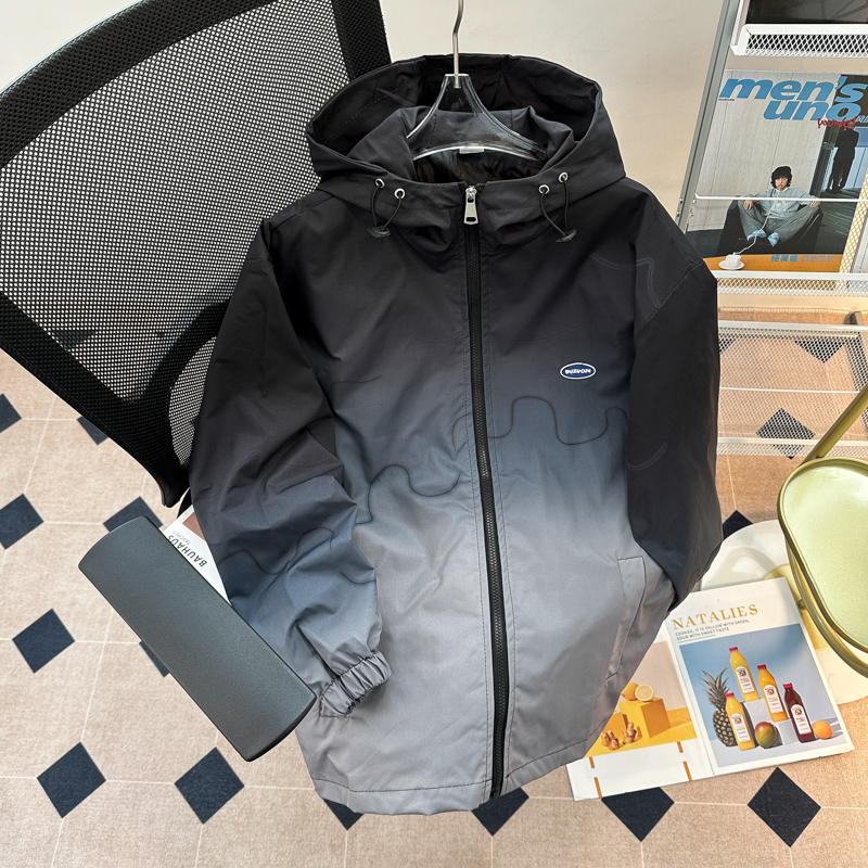 그라디언트 컬러 블록 재킷 남자의 느슨한 후드 마운틴 재킷 봄과 가을 유행 미국 캐주얼 커플 재킷스토어 가기